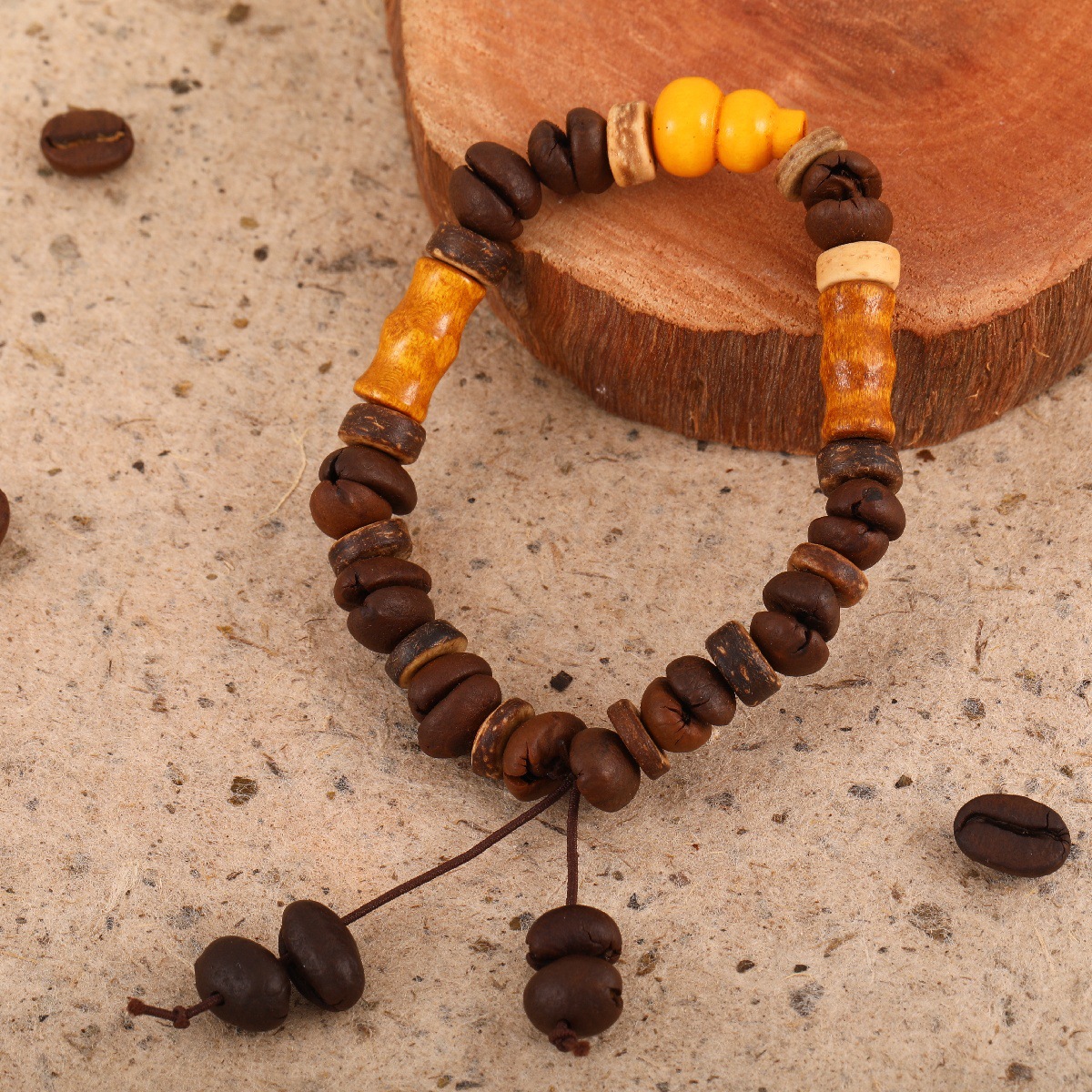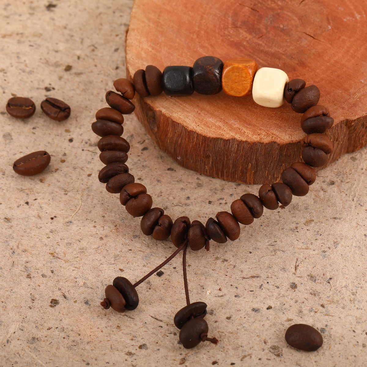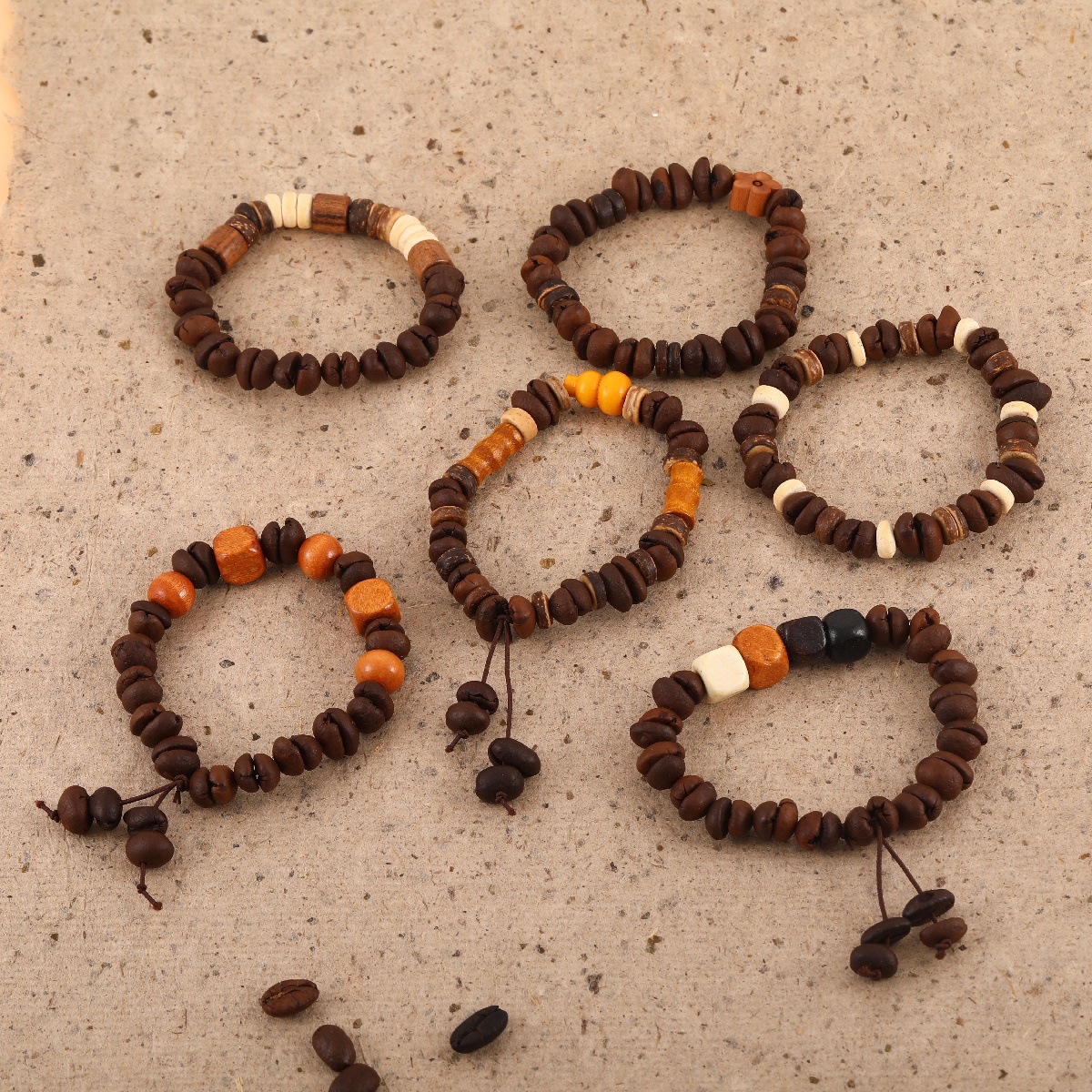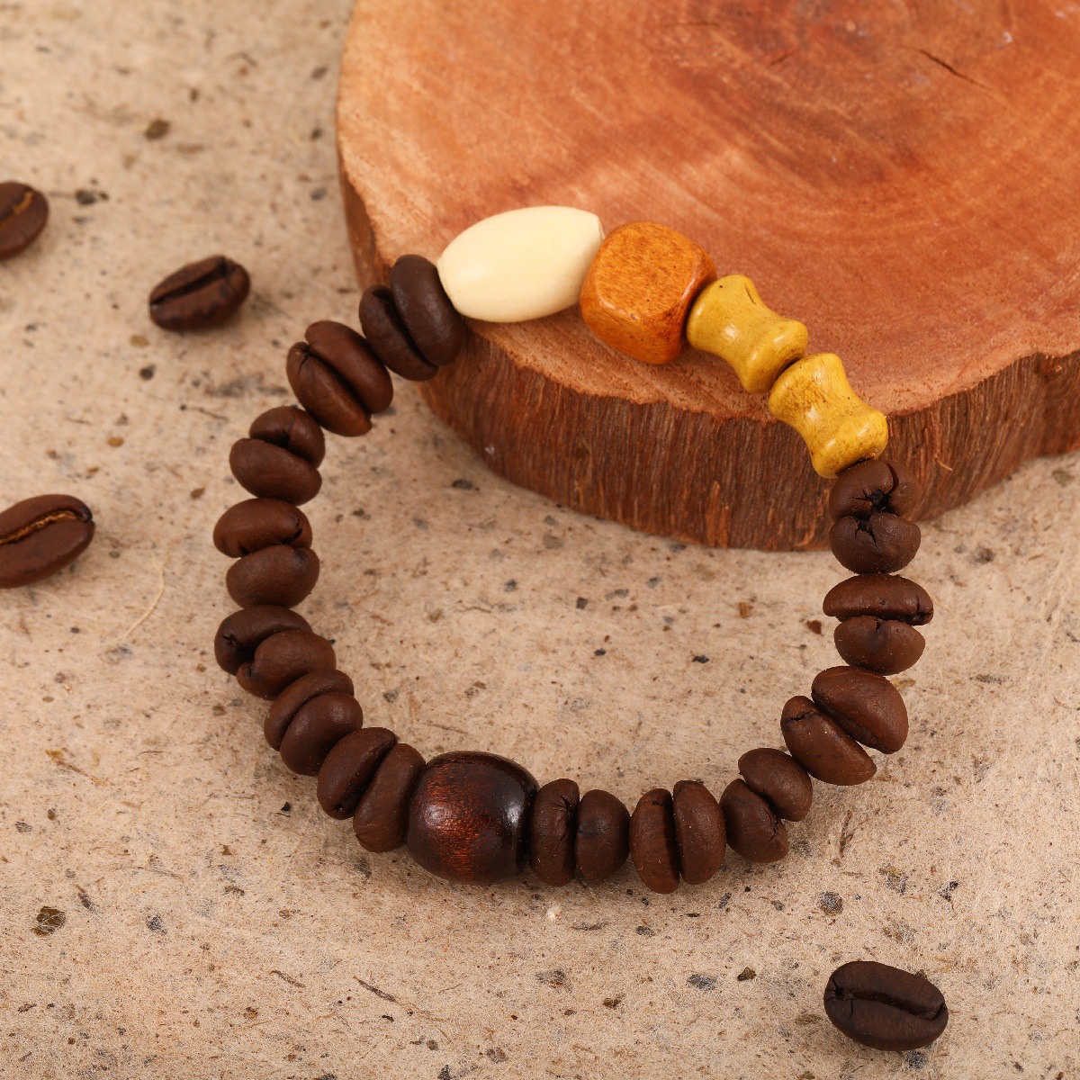 天然真咖啡豆手串手工新中式木珠檀木配件原创设计手链女摆摊创业