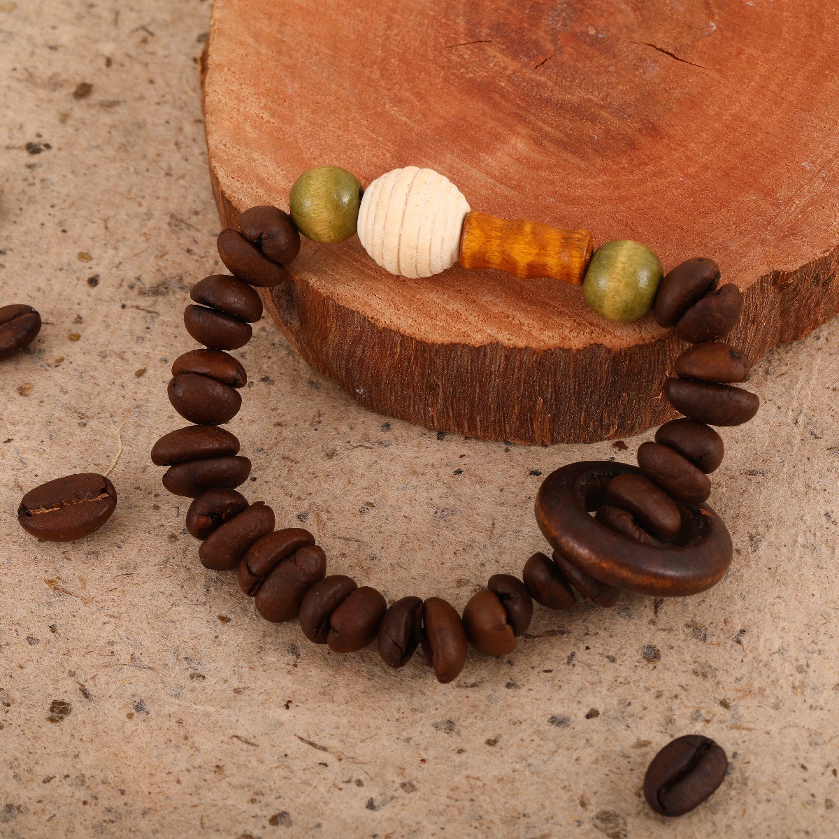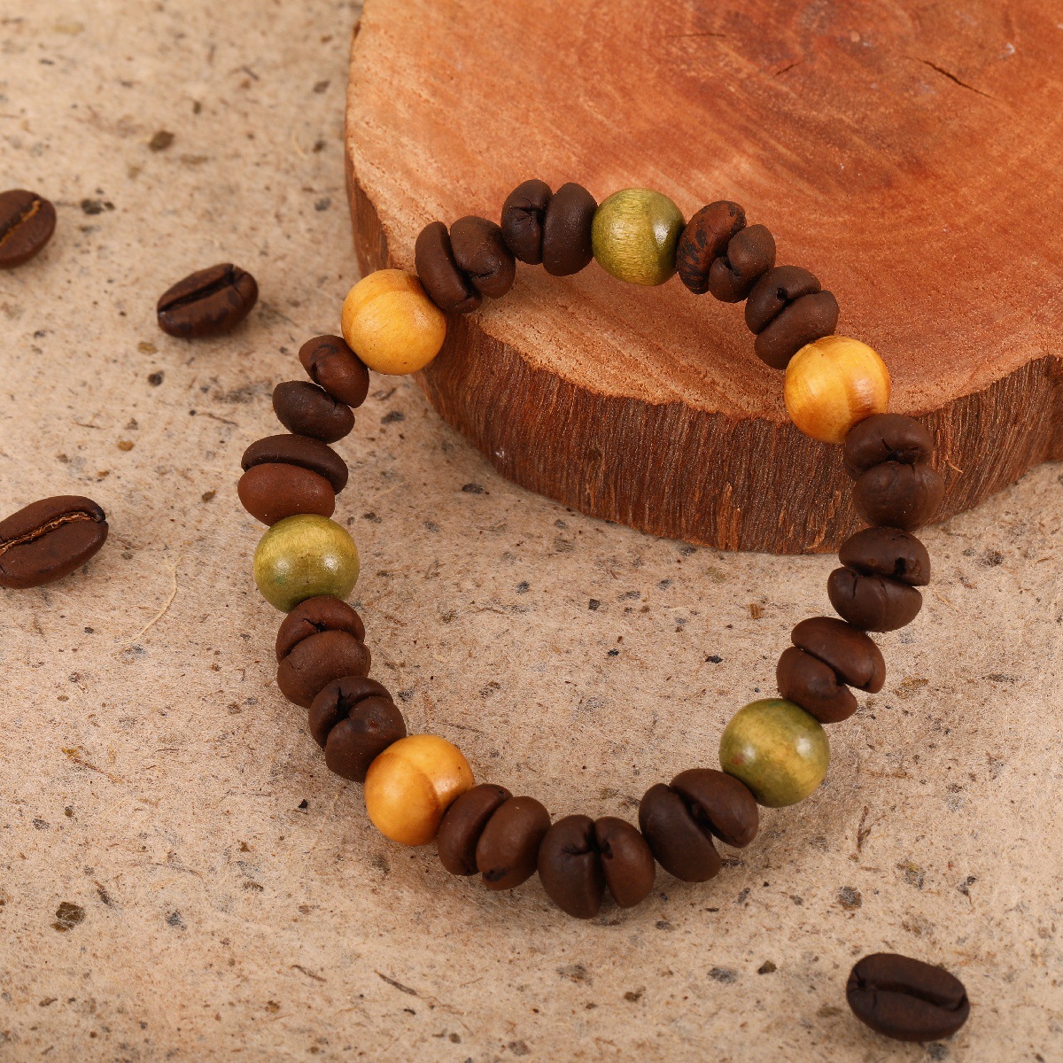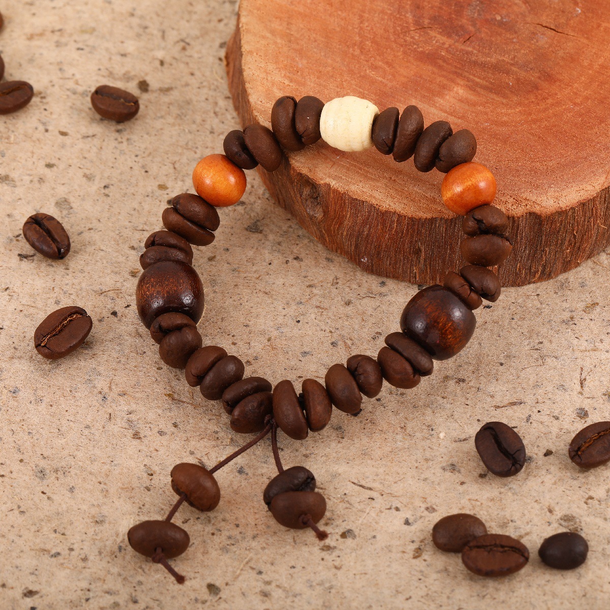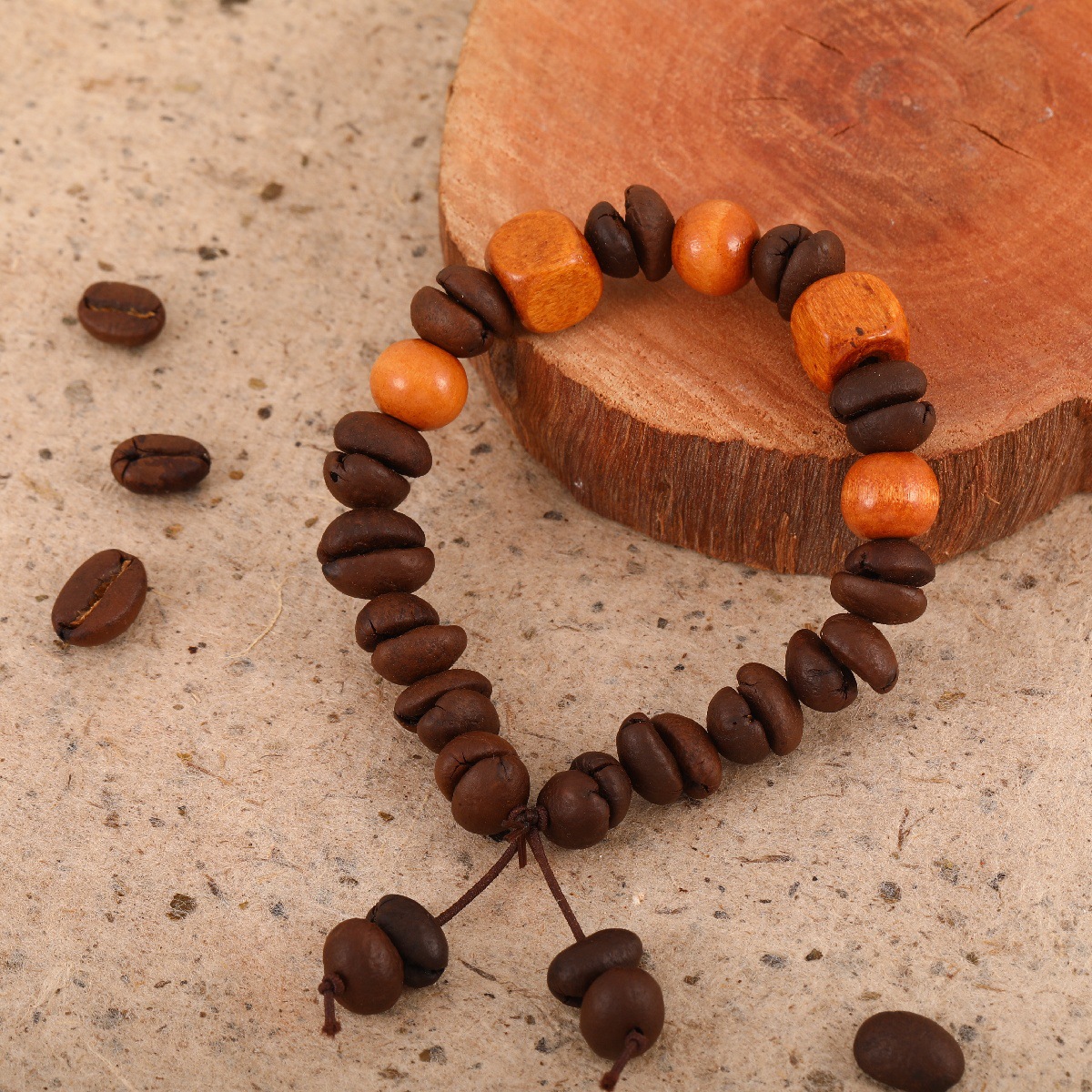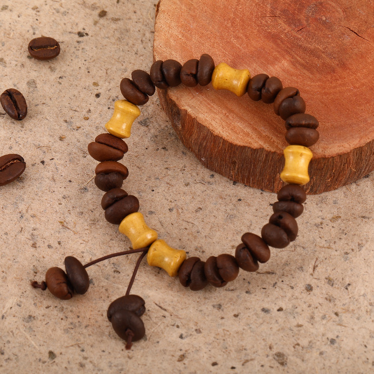 天然真咖啡豆手串手工新中式木珠檀木配件原创设计手链女摆摊创业