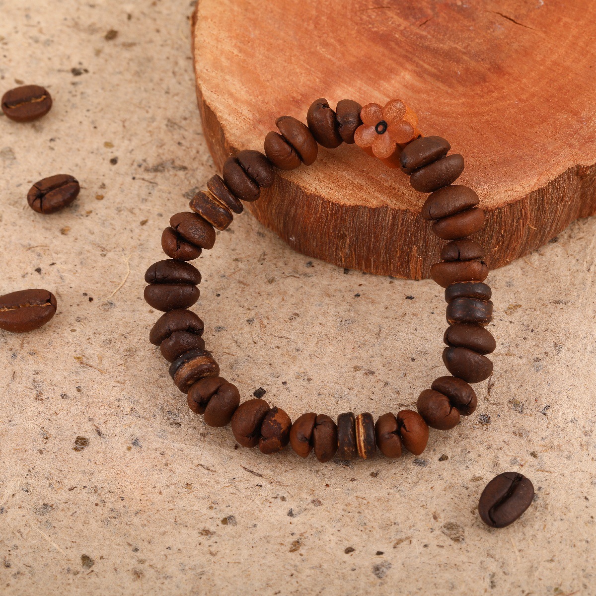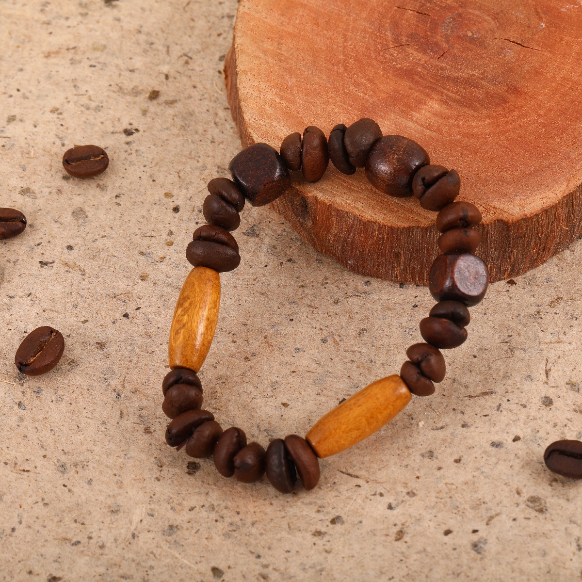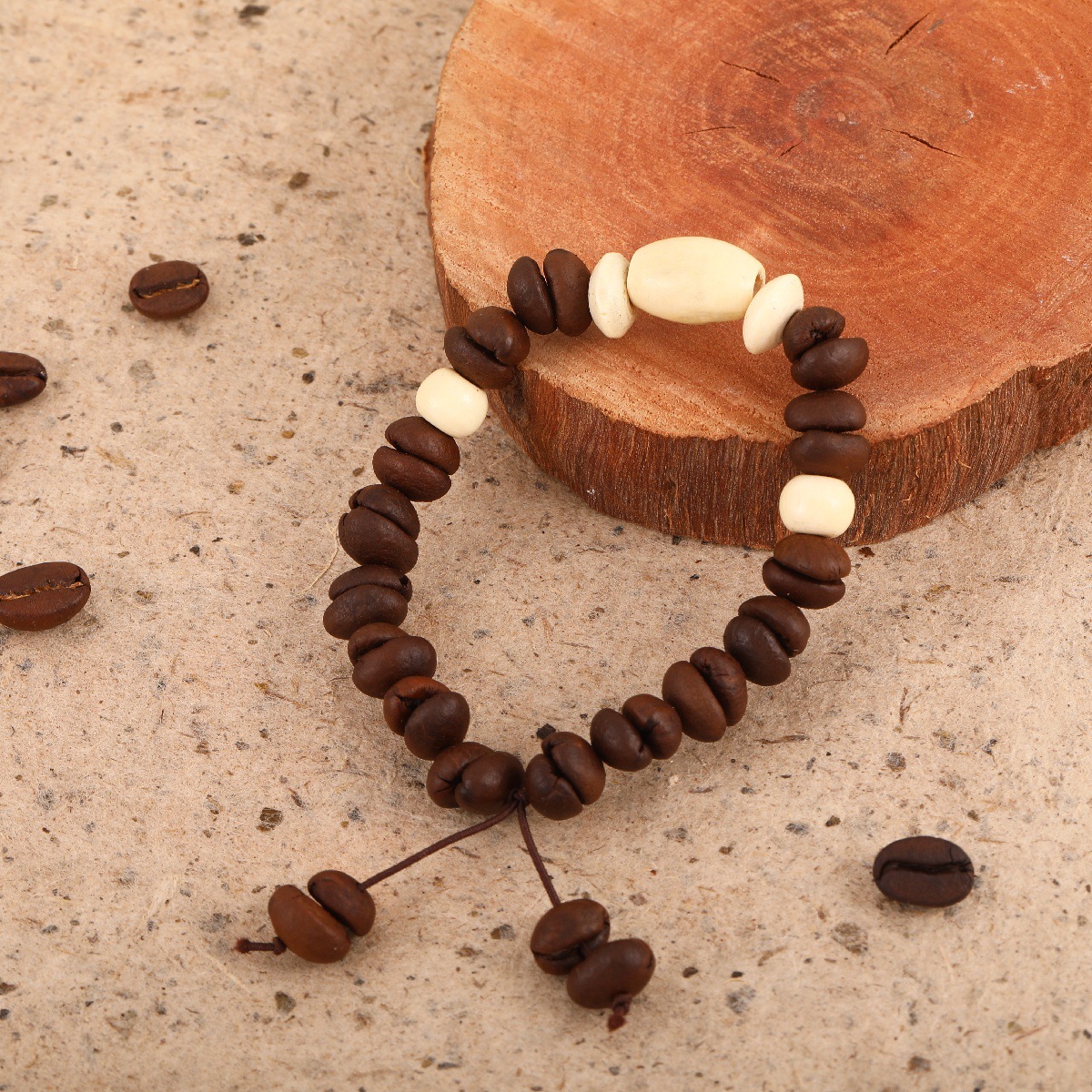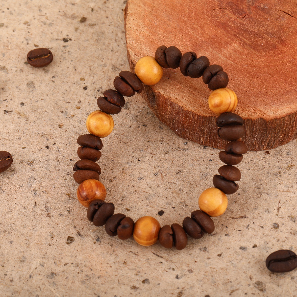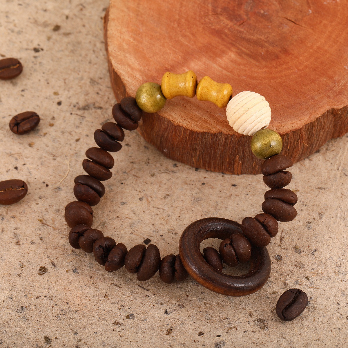 天然真咖啡豆手串手工新中式木珠檀木配件原创设计手链女摆摊创业