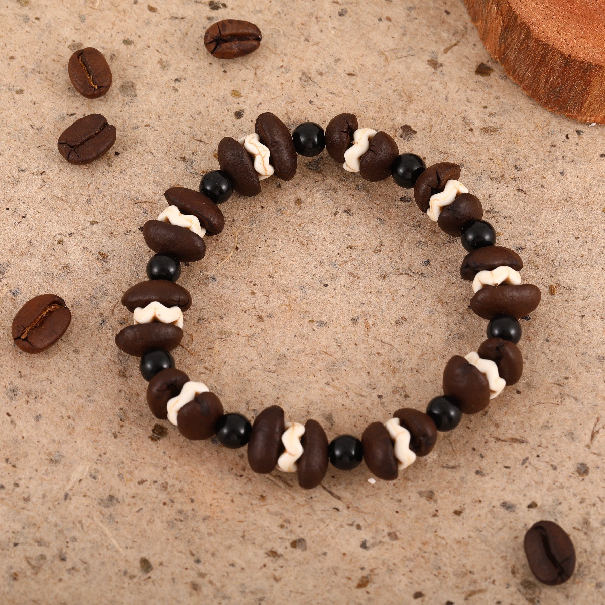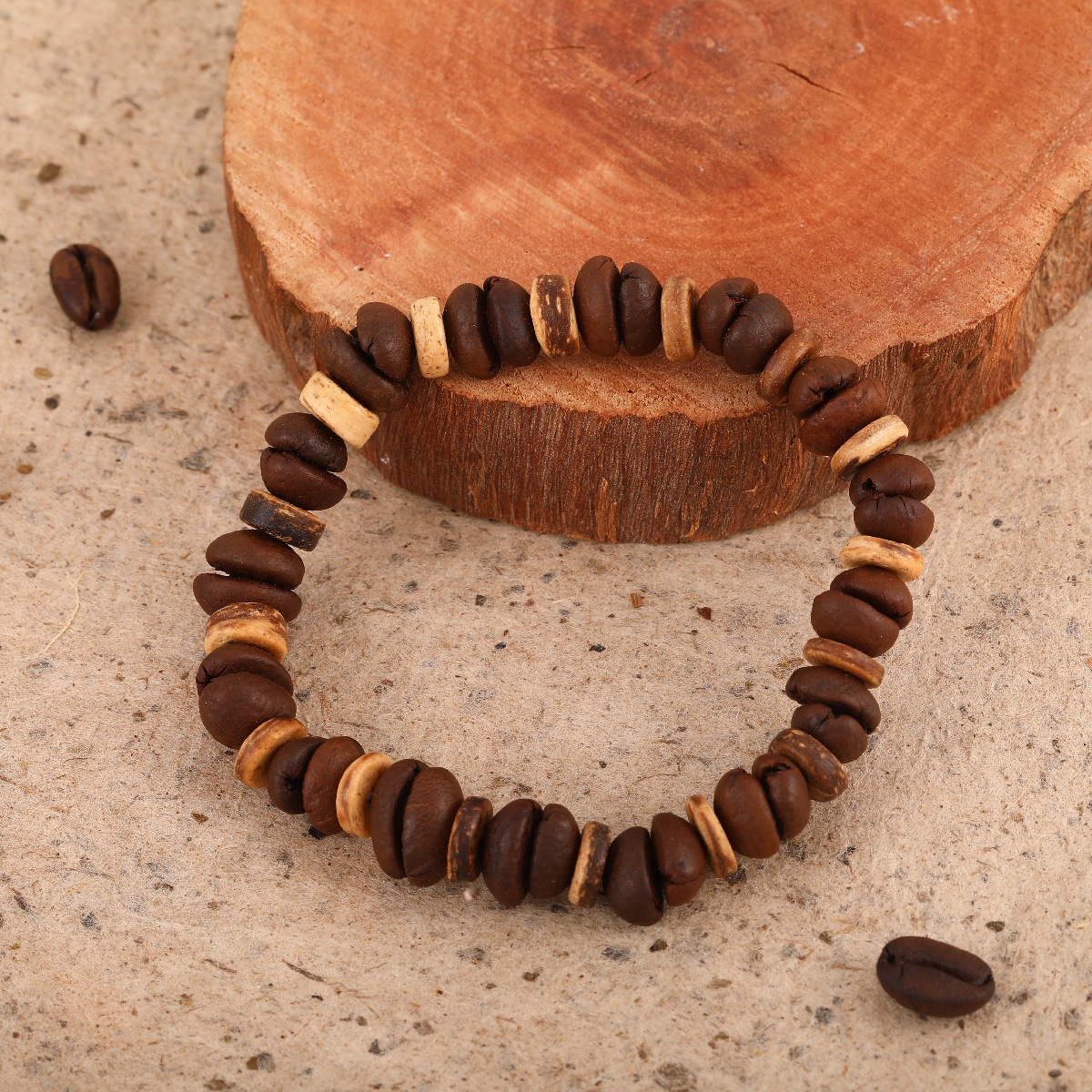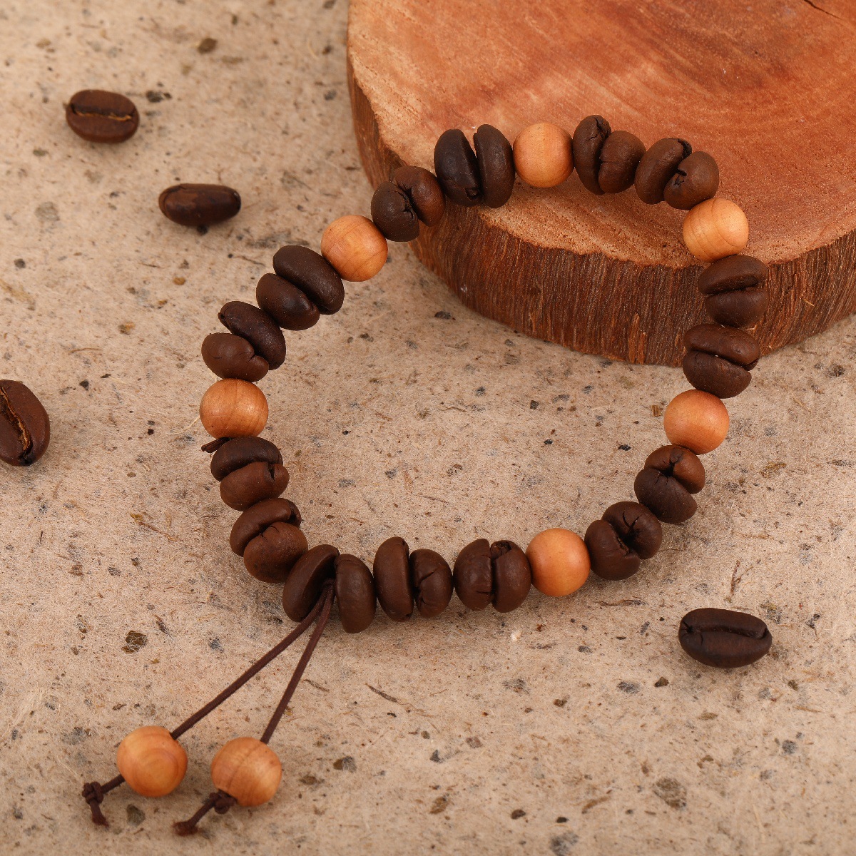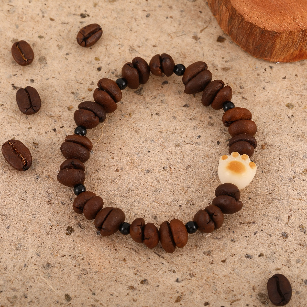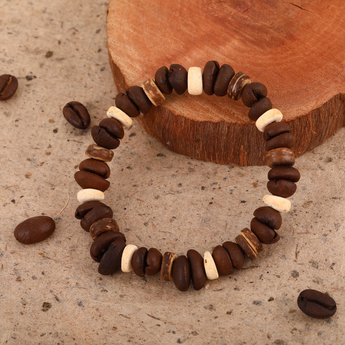 天然真咖啡豆手串手工新中式木珠檀木配件原创设计手链女摆摊创业