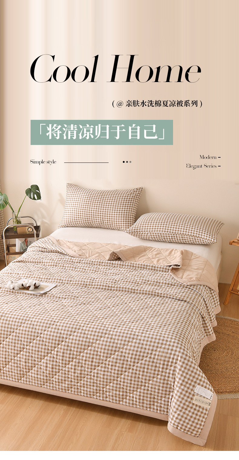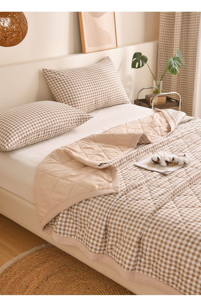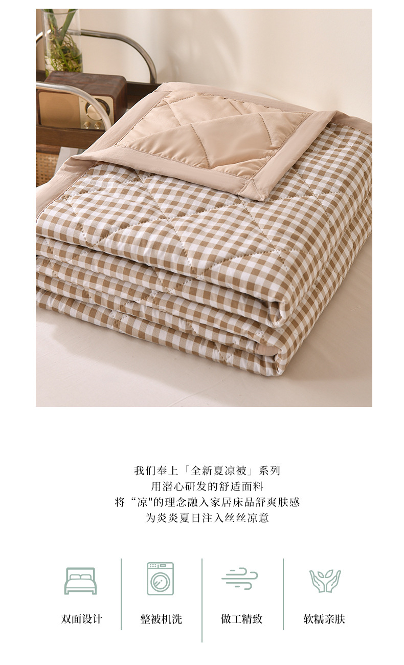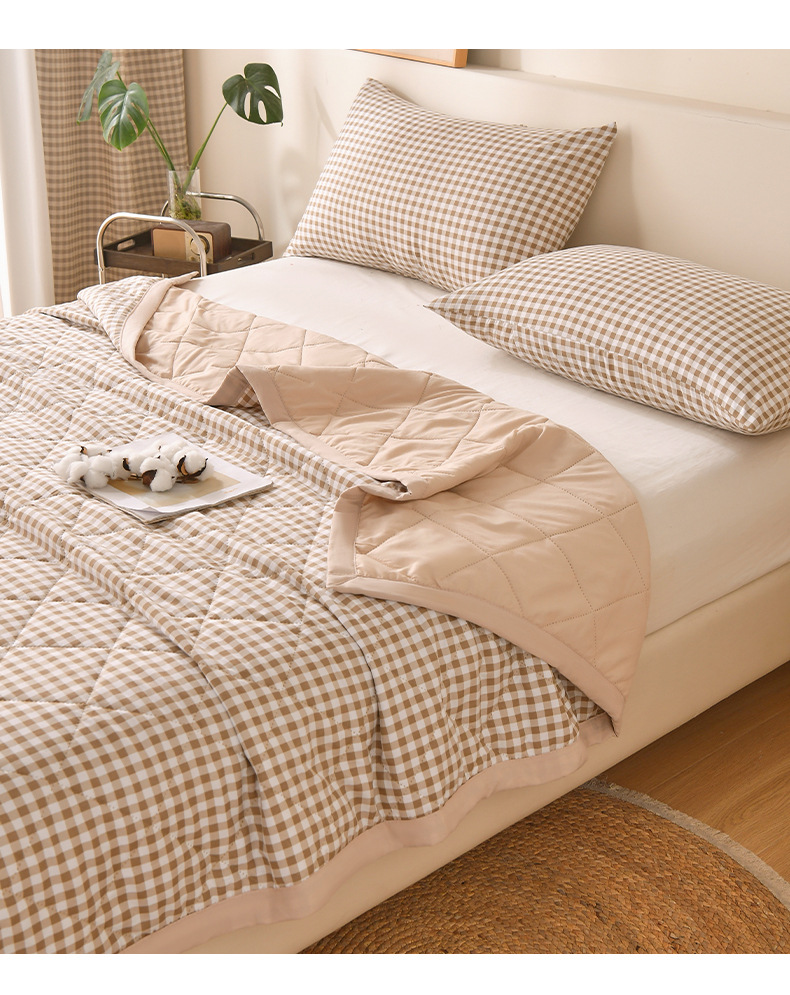 无印风 水洗棉夏被夏凉被简约格子空调被学生宿舍单人夏季