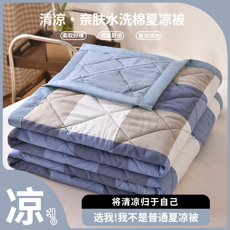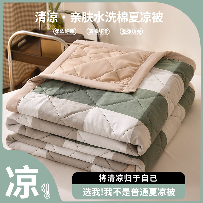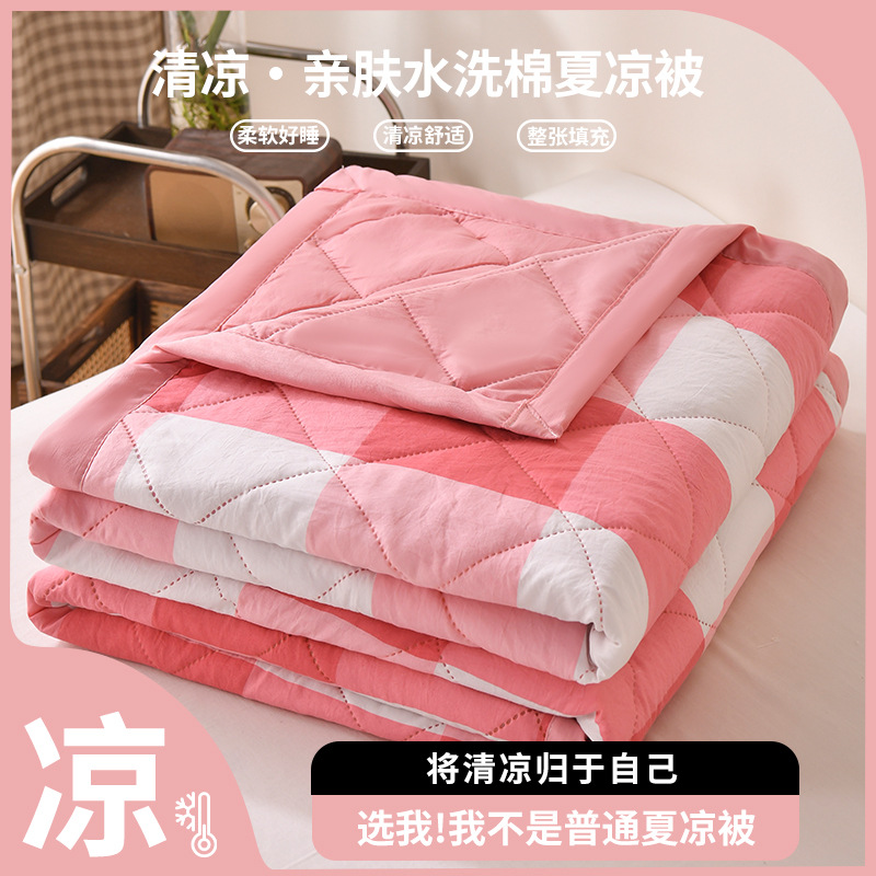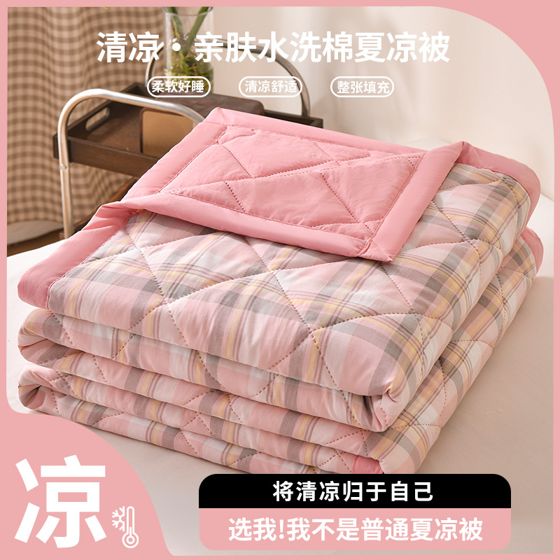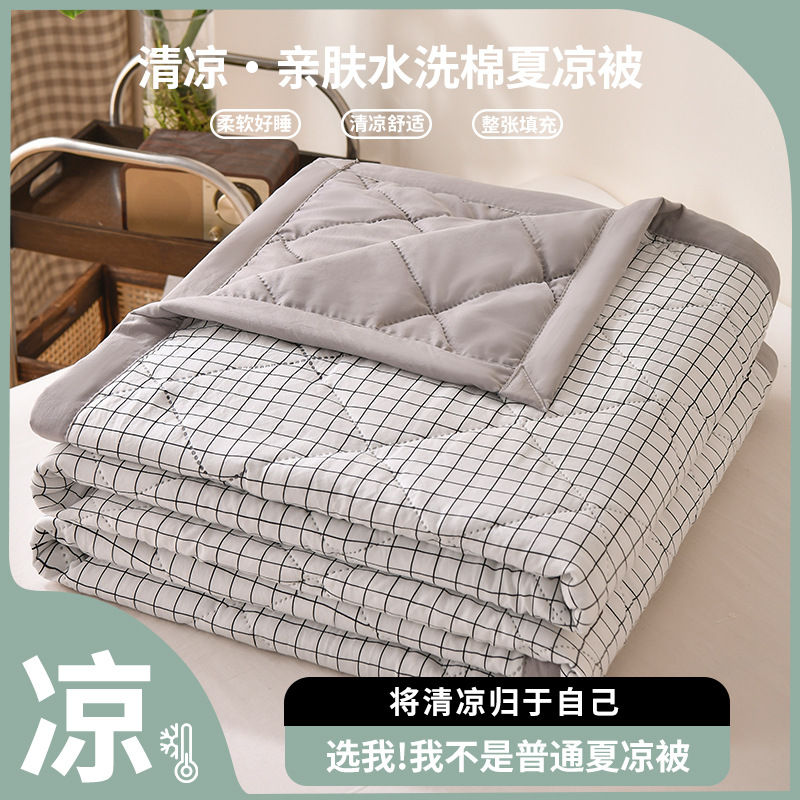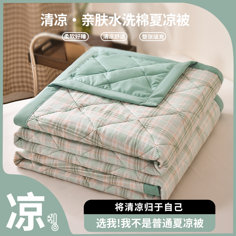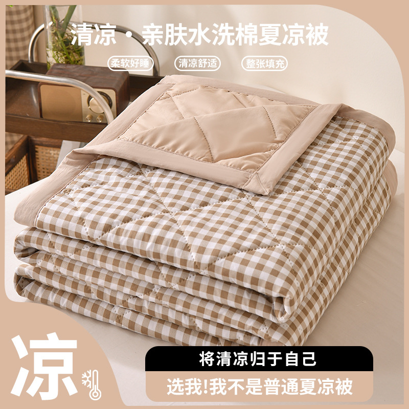 无印风 水洗棉夏被夏凉被简约格子空调被学生宿舍单人夏季