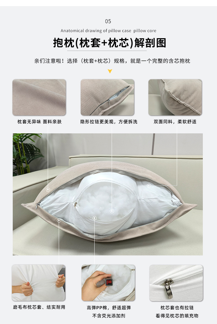 抱枕长方形轻奢高级感靠枕沙发大靠垫客厅床头罩软包靠背套不含芯
