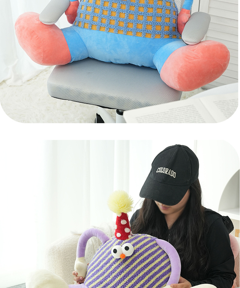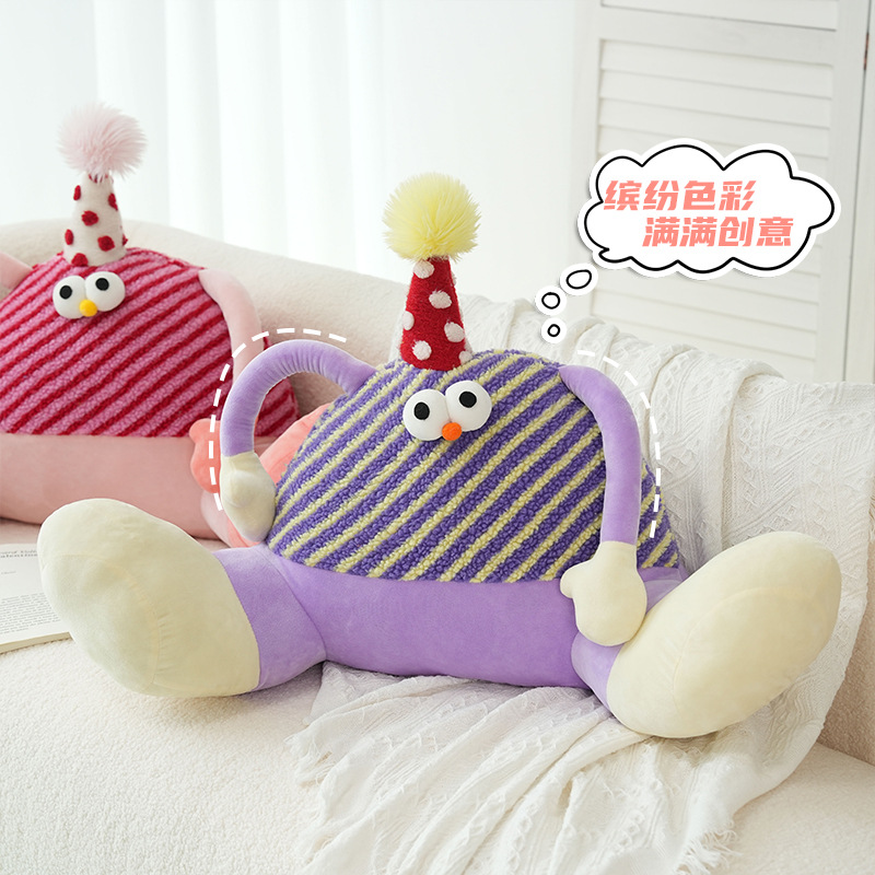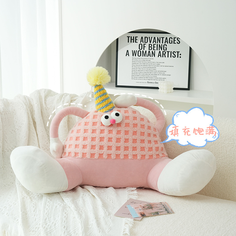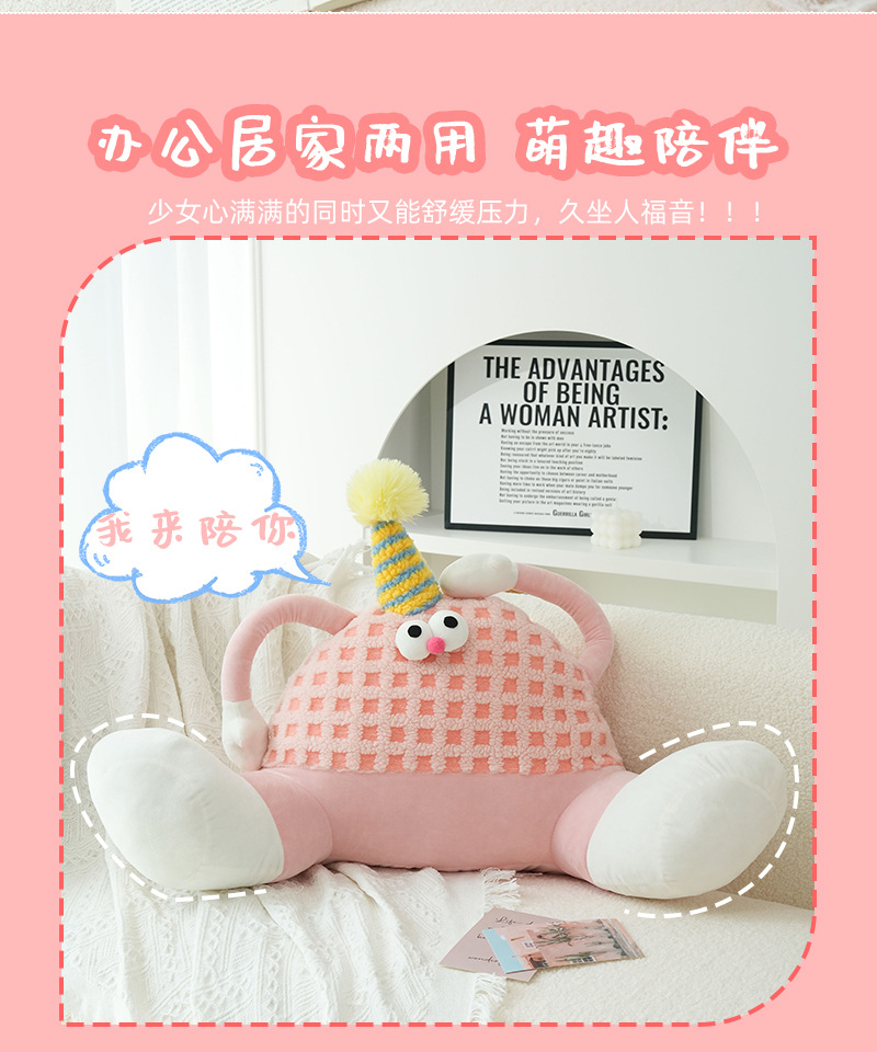 多巴胺大脚怪兽靠枕创意卡通羊羔绒抱枕女生卧室床头沙发护腰靠垫