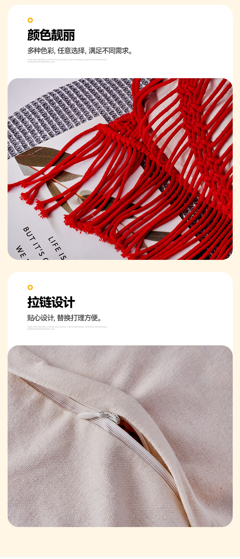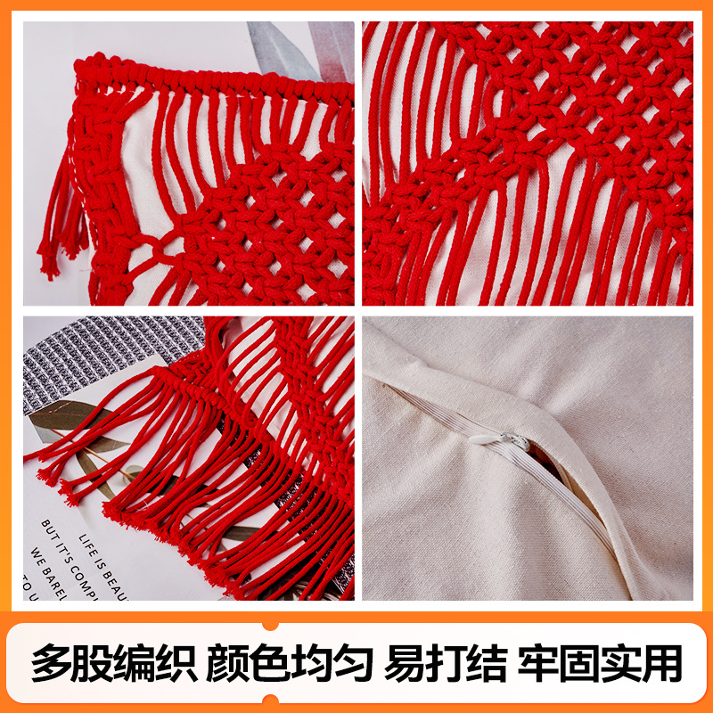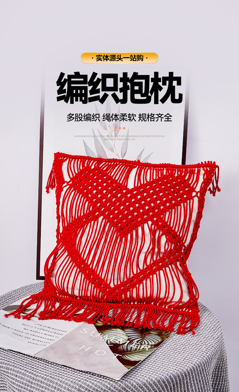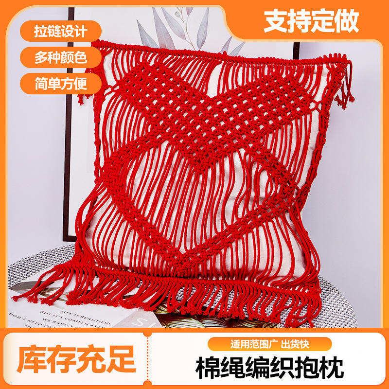 手工棉线编织抱枕客厅沙发抱枕 床头办公室靠垫卧室装饰流苏靠枕