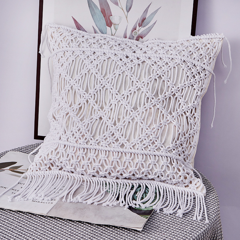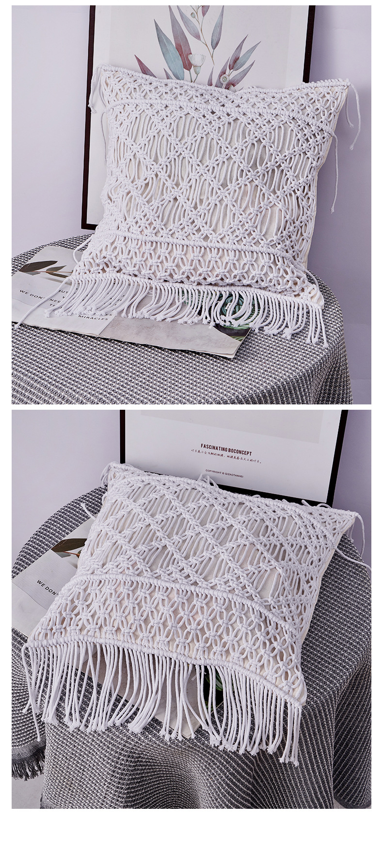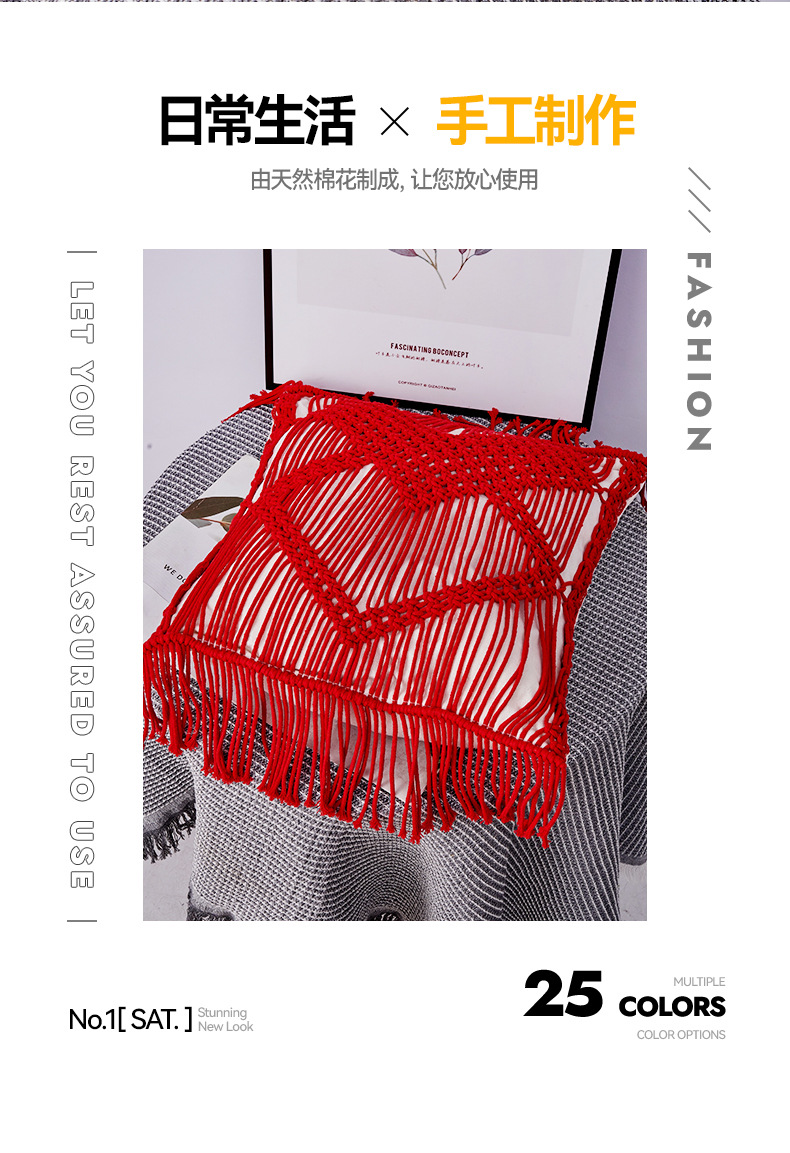 手工棉线编织抱枕客厅沙发抱枕 床头办公室靠垫卧室装饰流苏靠枕