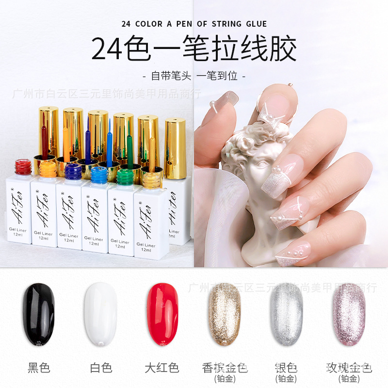 2026年新款美甲拉线胶24色套装彩绘胶美甲店勾花画花美甲店甲油胶
