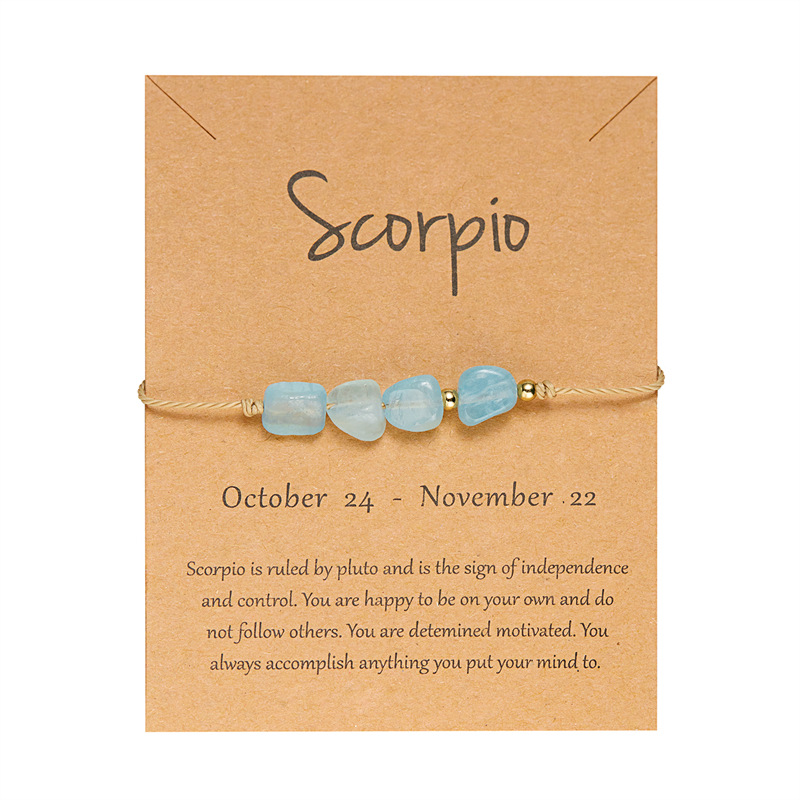 跨境热销十二星座天然石串珠手链不规则石头手工可调编织星座手链