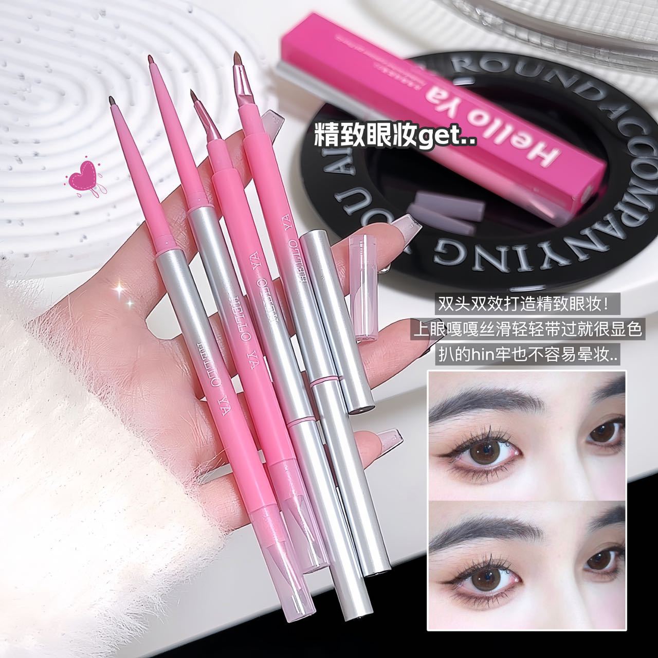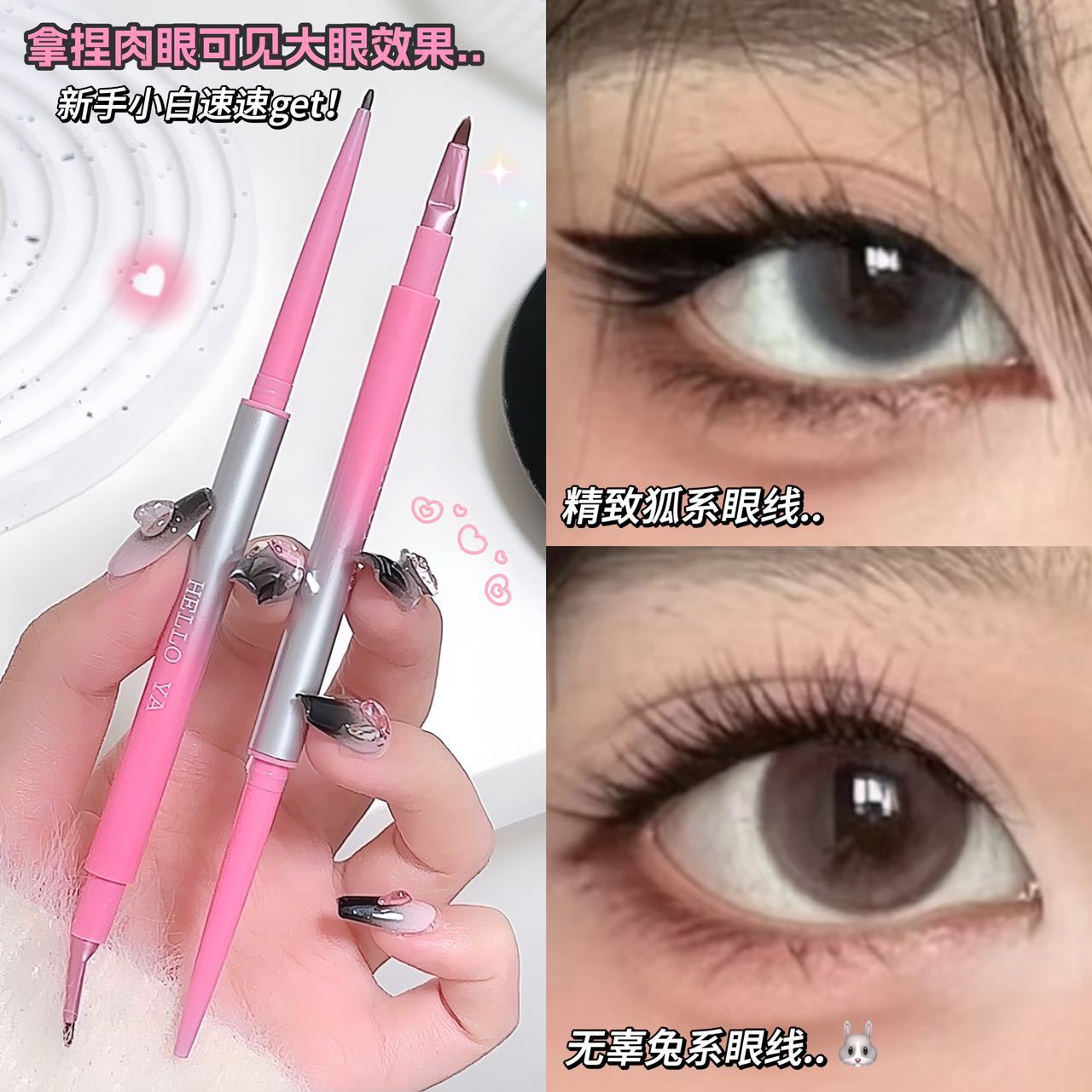 Hello ya折角眼线胶笔刀锋折角双头眼线笔立体卧蚕下至显色自然