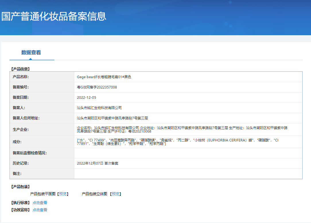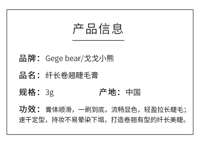Gege bear戈戈小熊纤长卷翘睫毛膏小刷头浓密持久定型防水不晕染