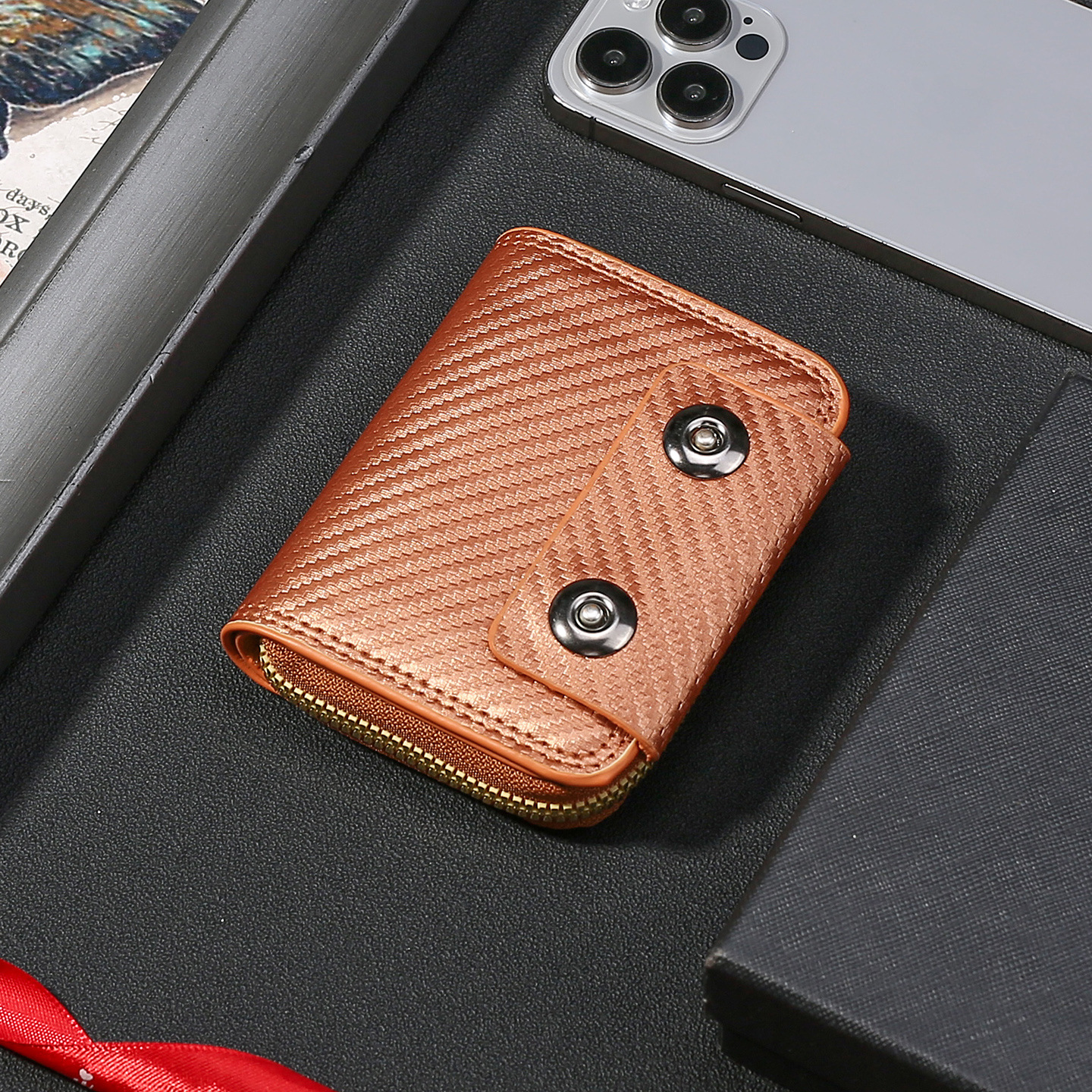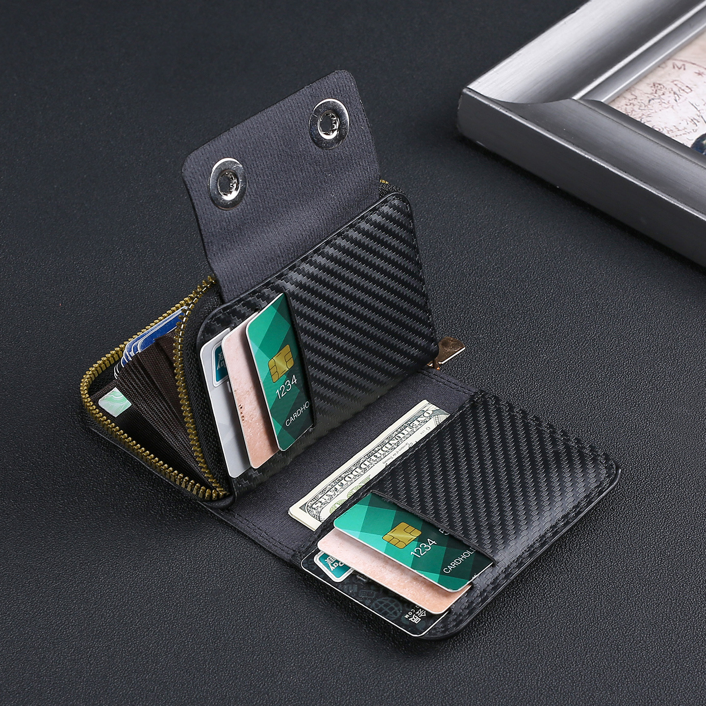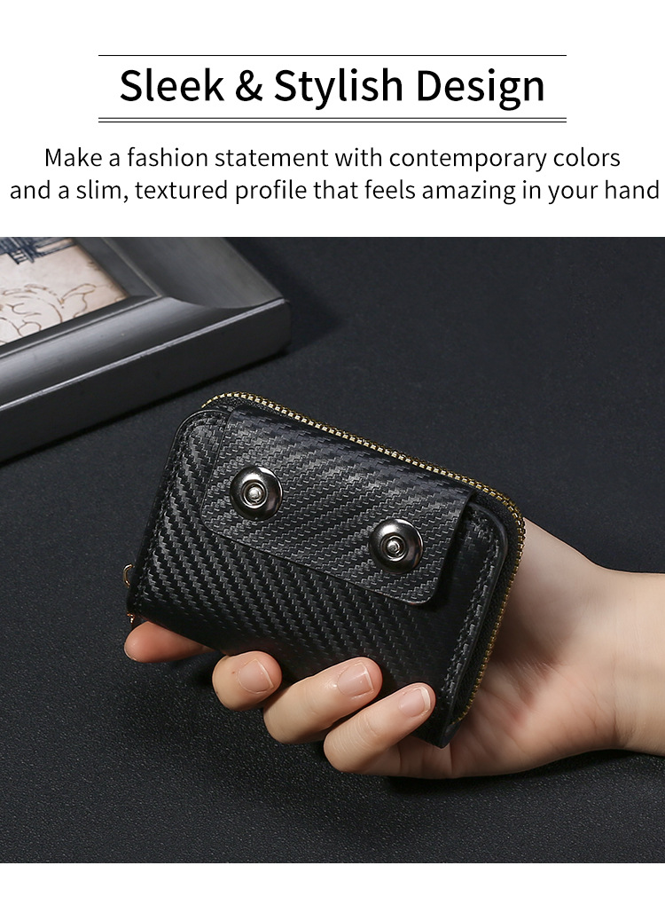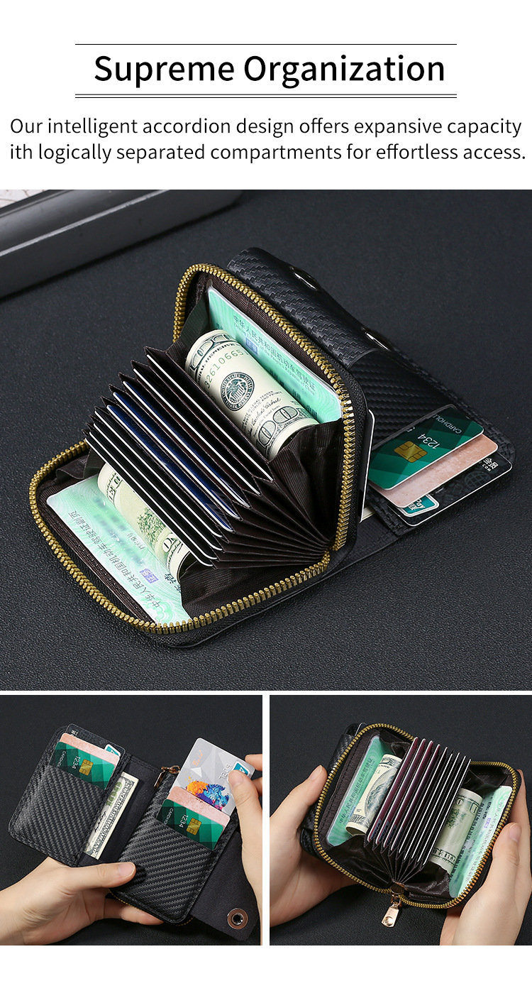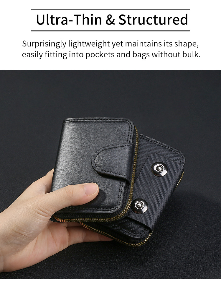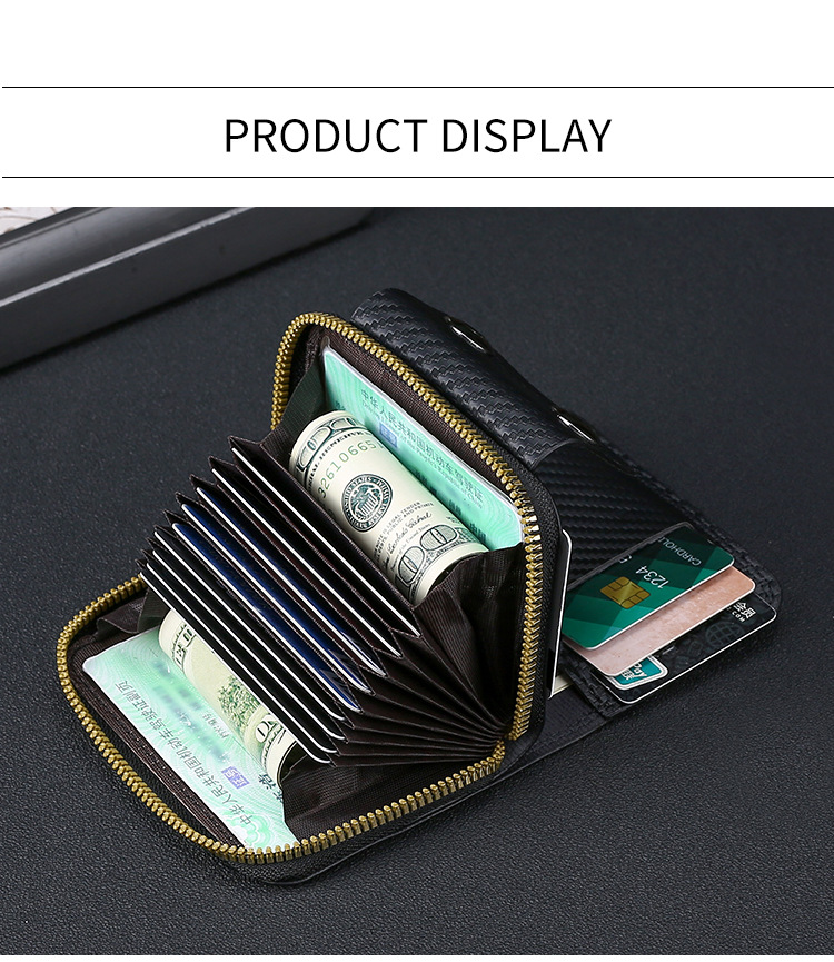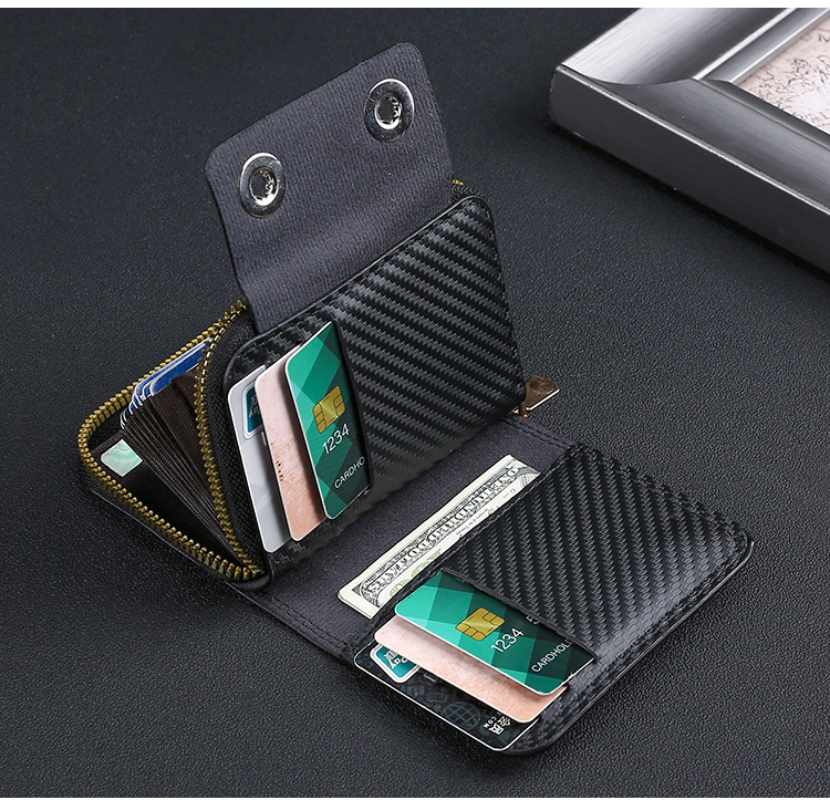 跨境热销碳纤维纹双磁扣男士风琴包大容量卡包卡套零钱包跨境货源