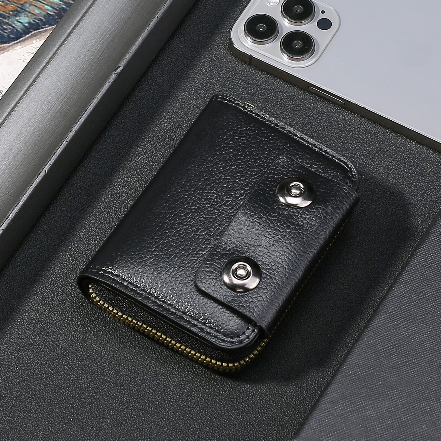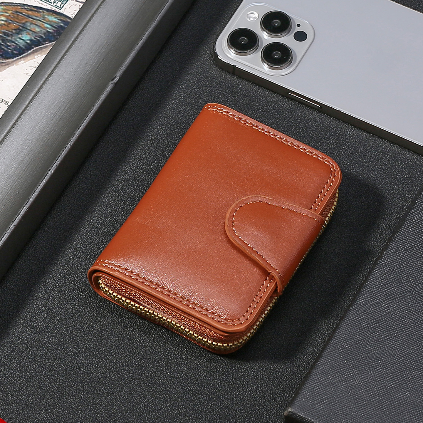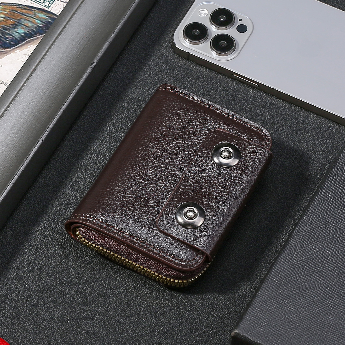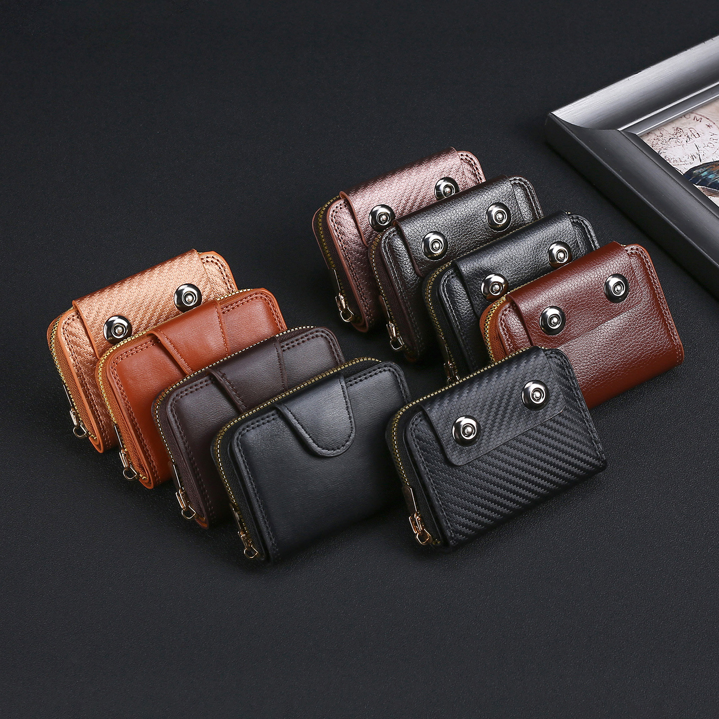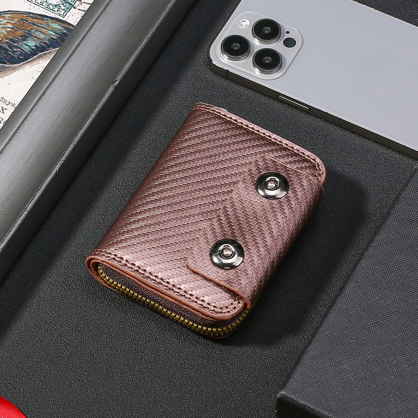 跨境热销碳纤维纹双磁扣男士风琴包大容量卡包卡套零钱包跨境货源