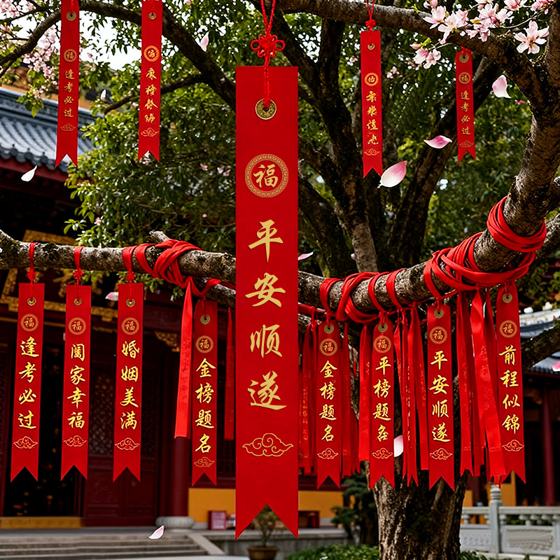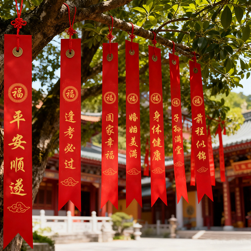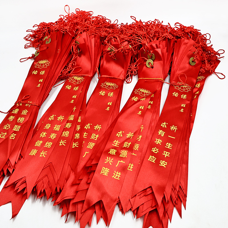 现货批发祈福丝带寺庙求学婚姻事业许愿带福字带红绸庙会源头厂家