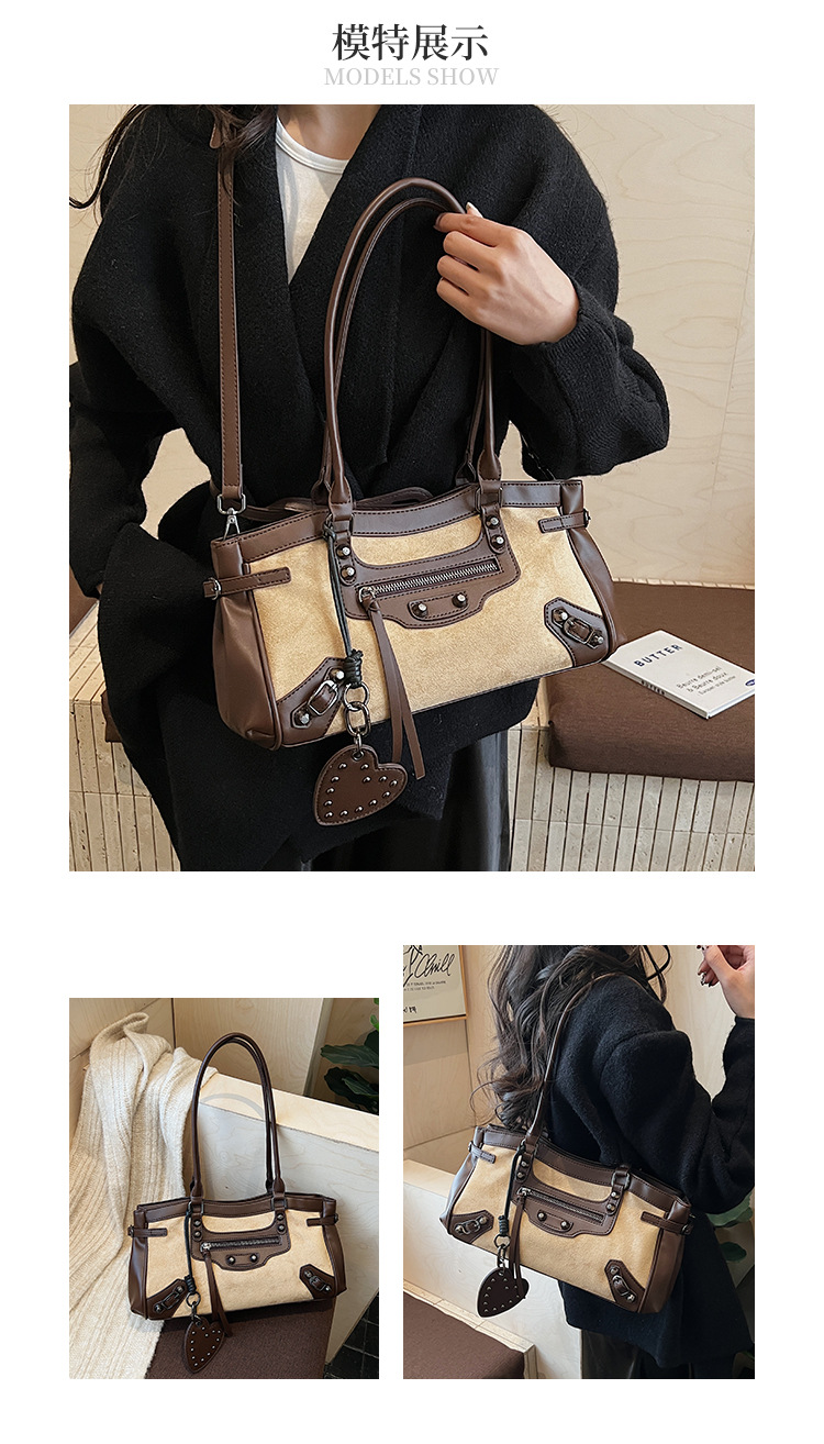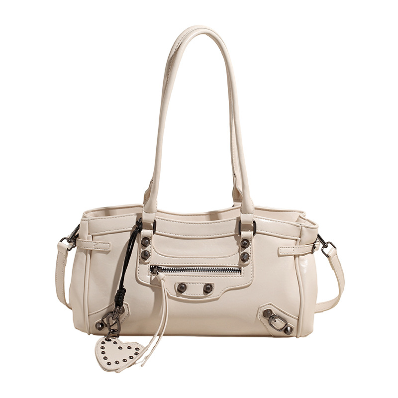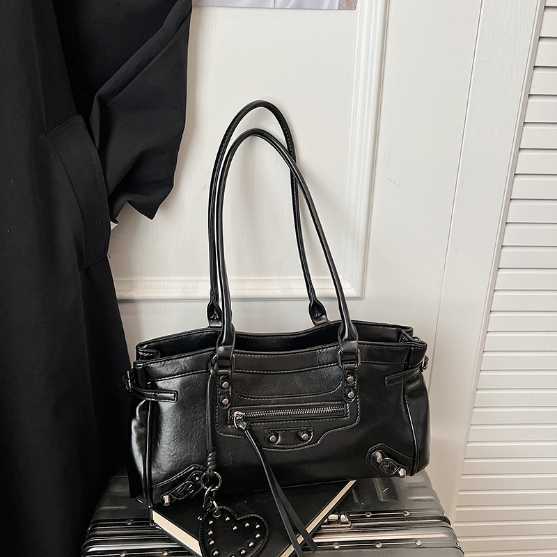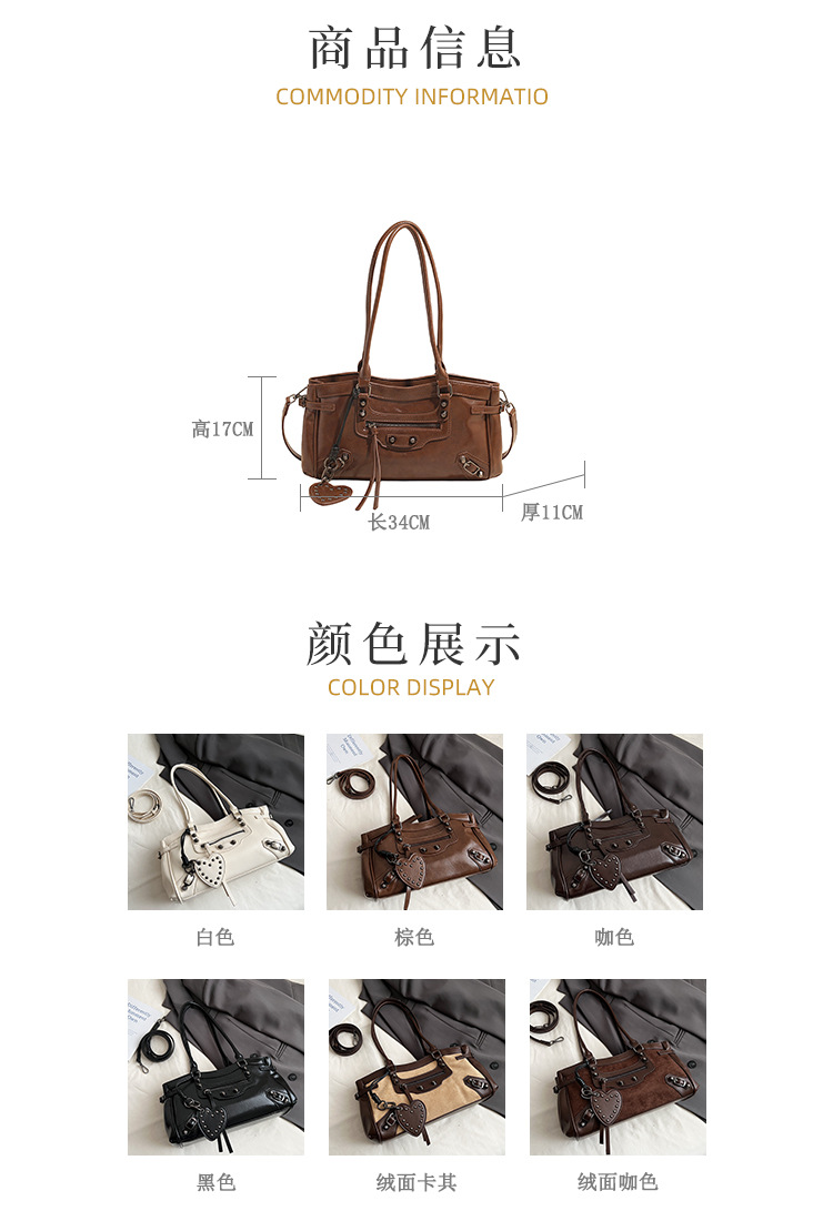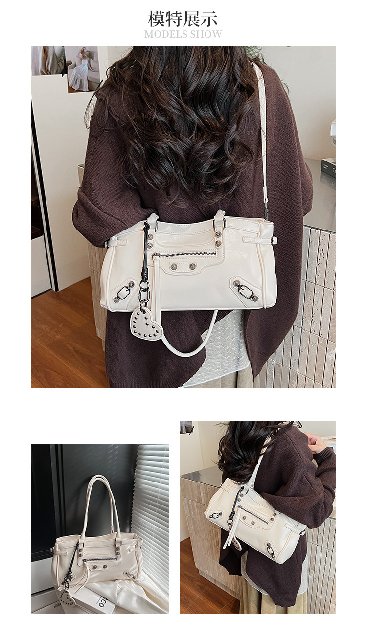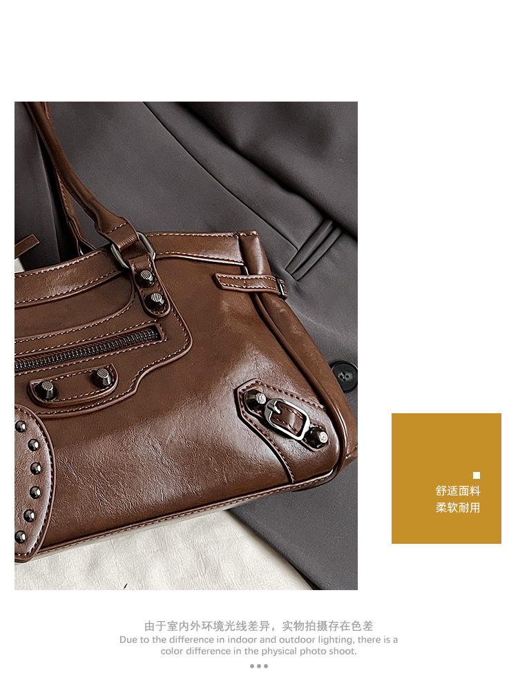 单肩包女士包包 轻奢质感拼接铆钉镶嵌单肩腋下包 潮酷辣妹机车包