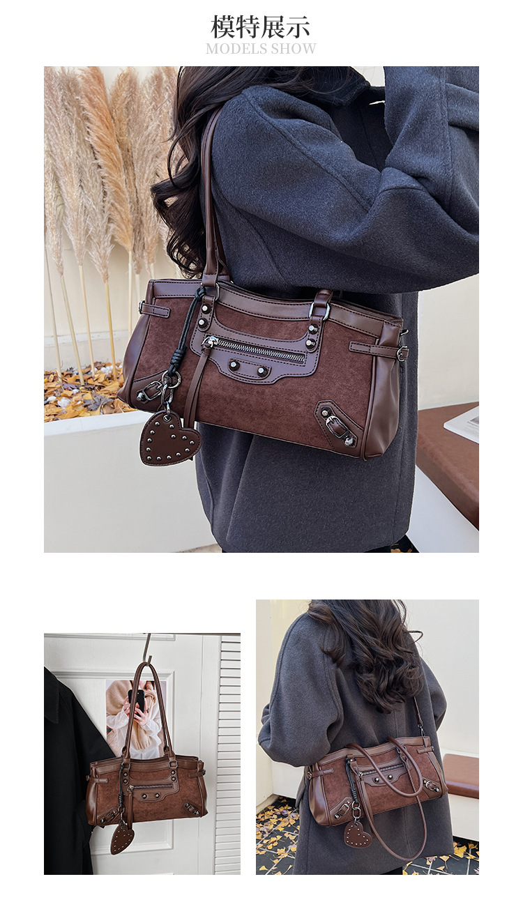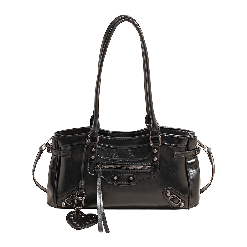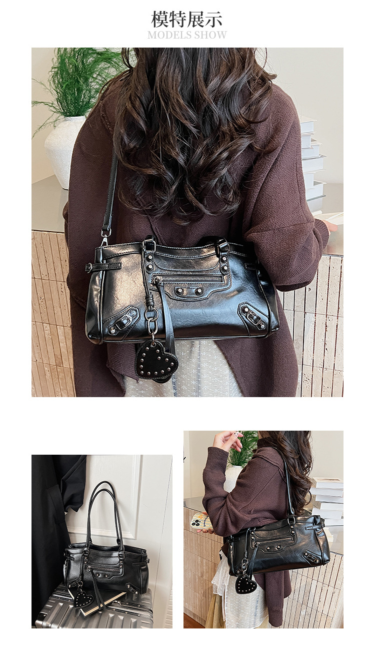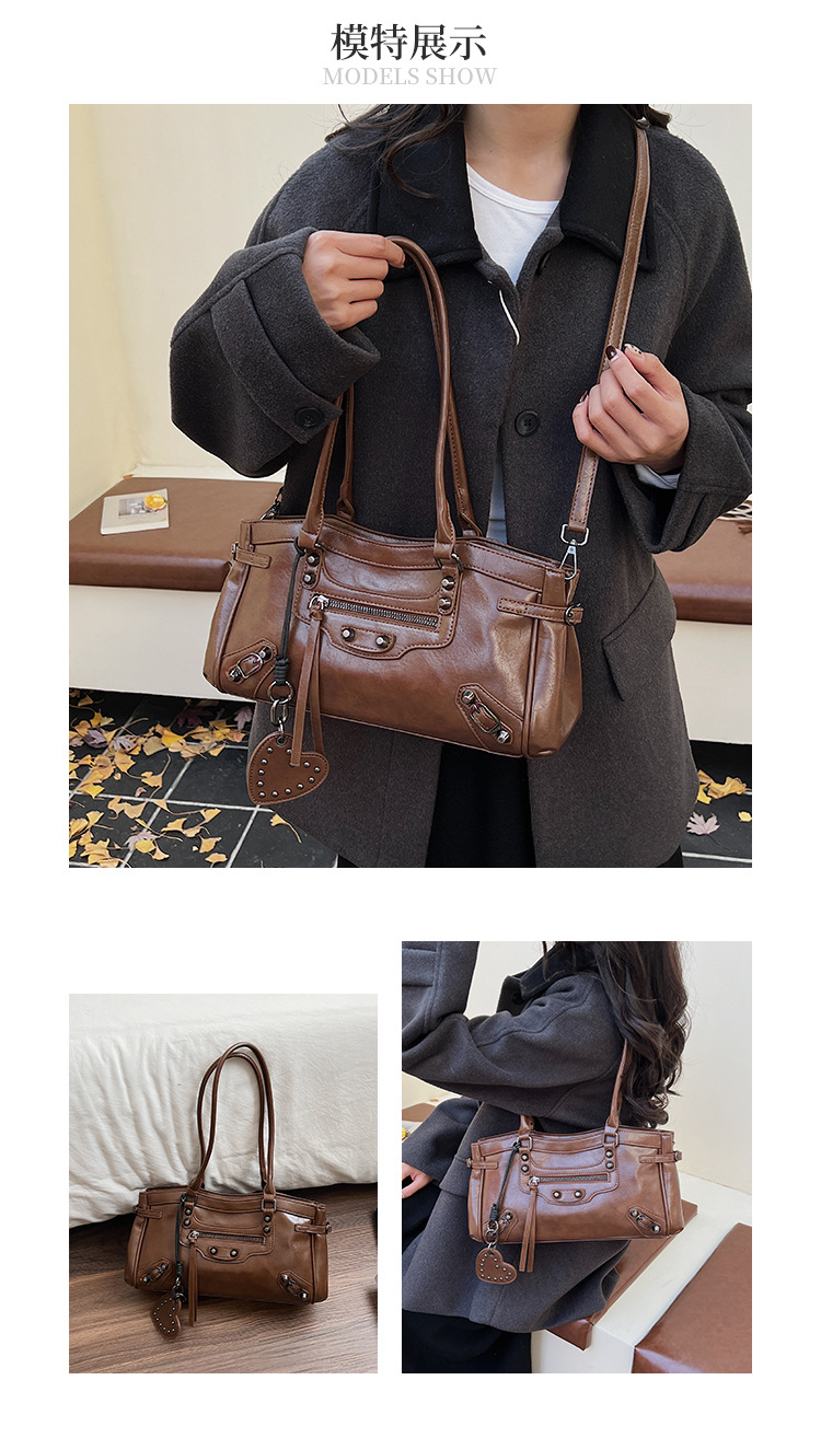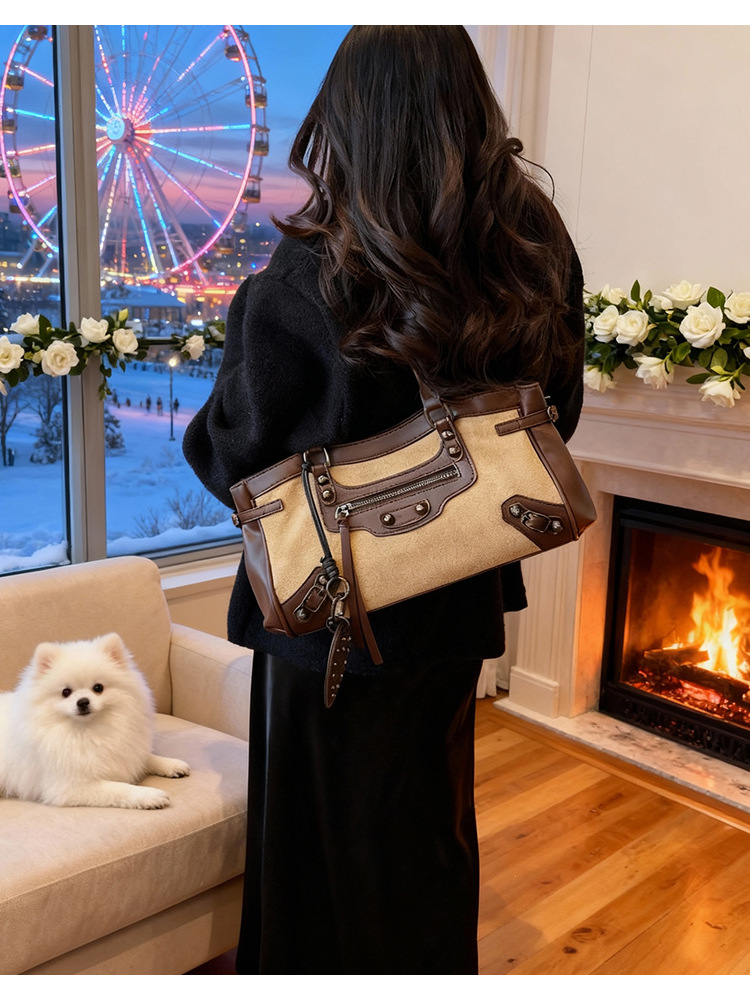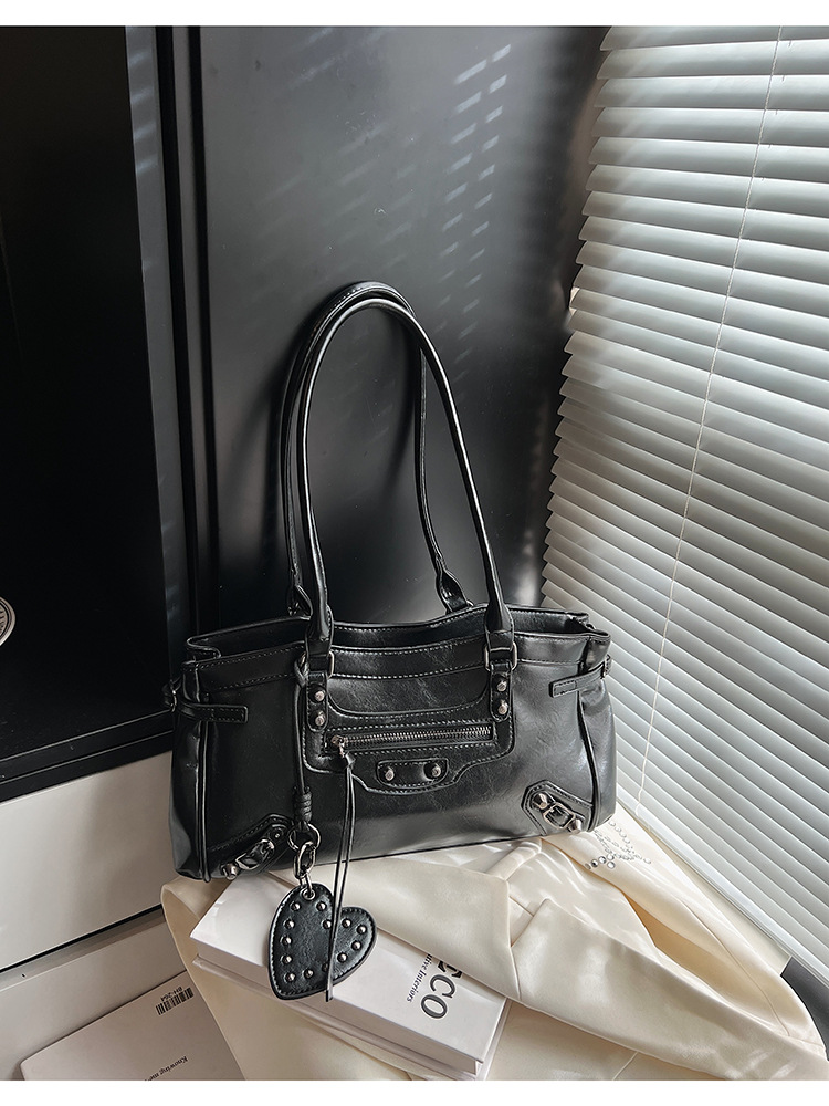 单肩包女士包包 轻奢质感拼接铆钉镶嵌单肩腋下包 潮酷辣妹机车包