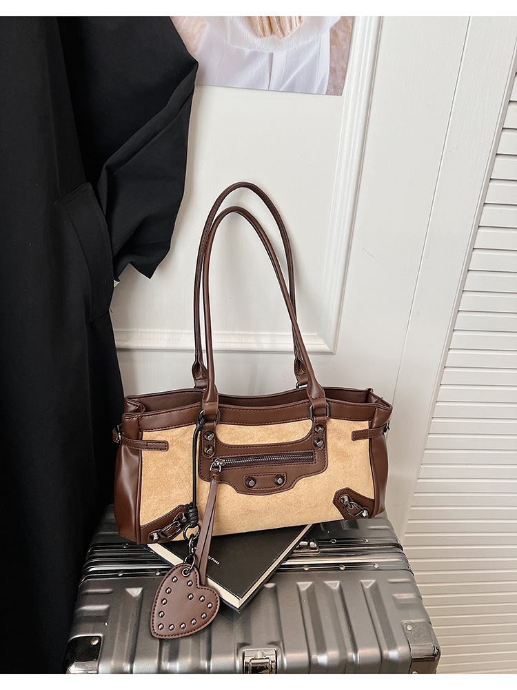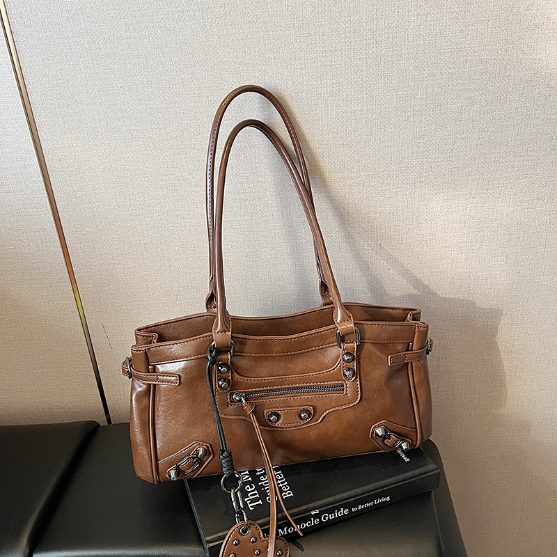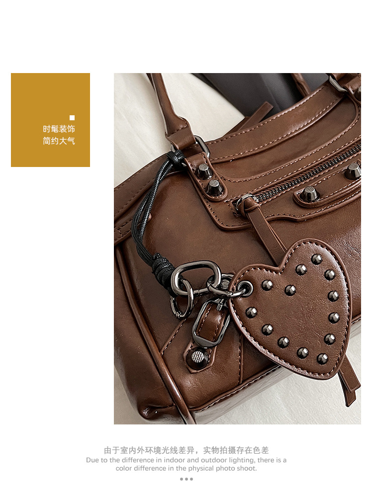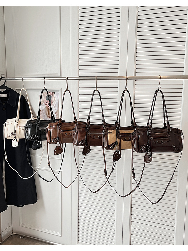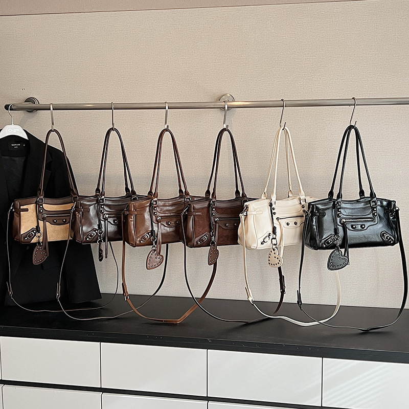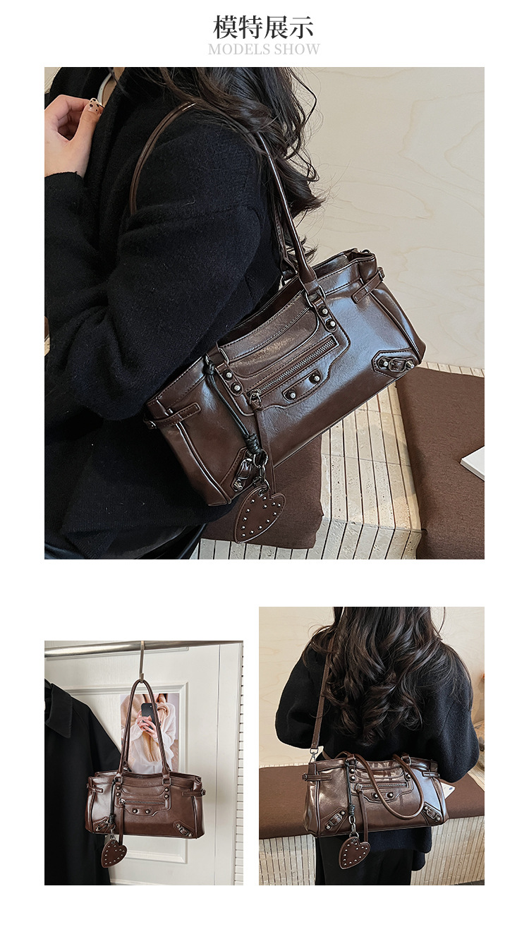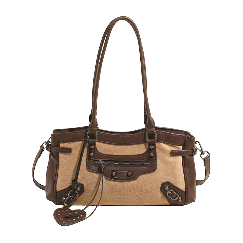 单肩包女士包包 轻奢质感拼接铆钉镶嵌单肩腋下包 潮酷辣妹机车包