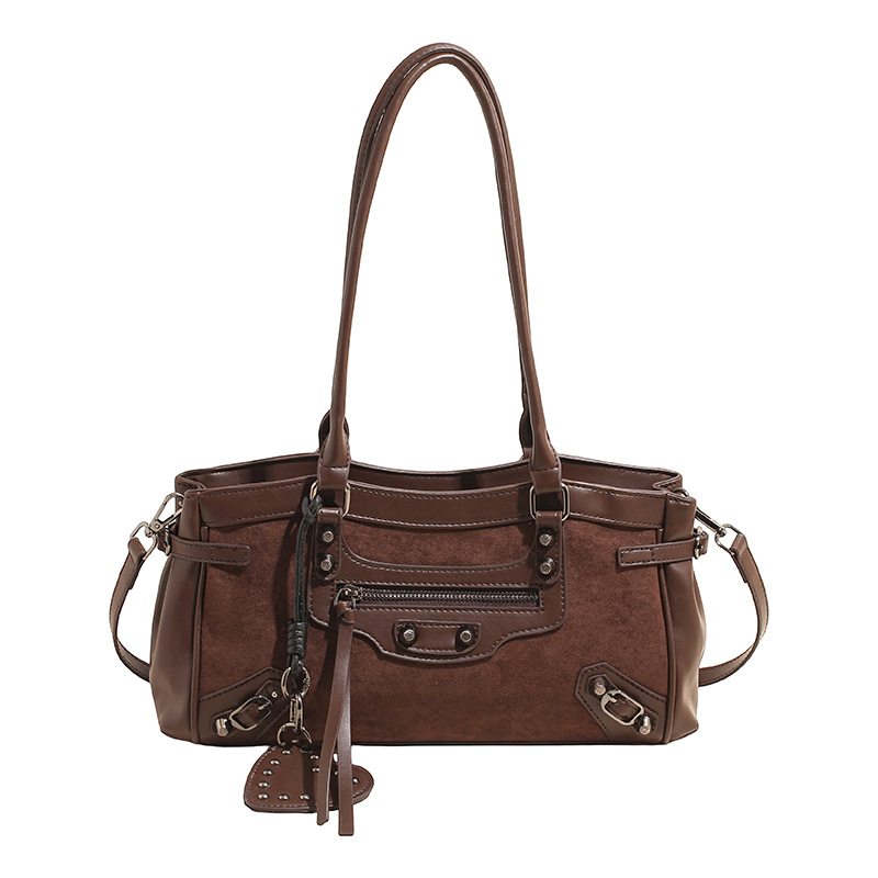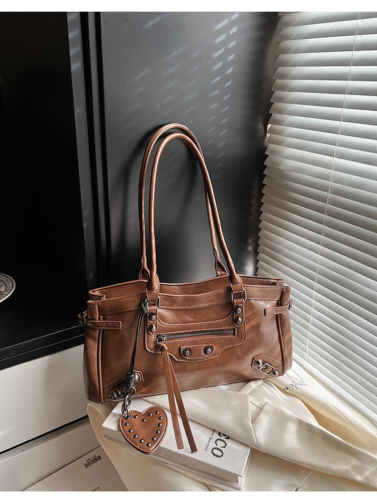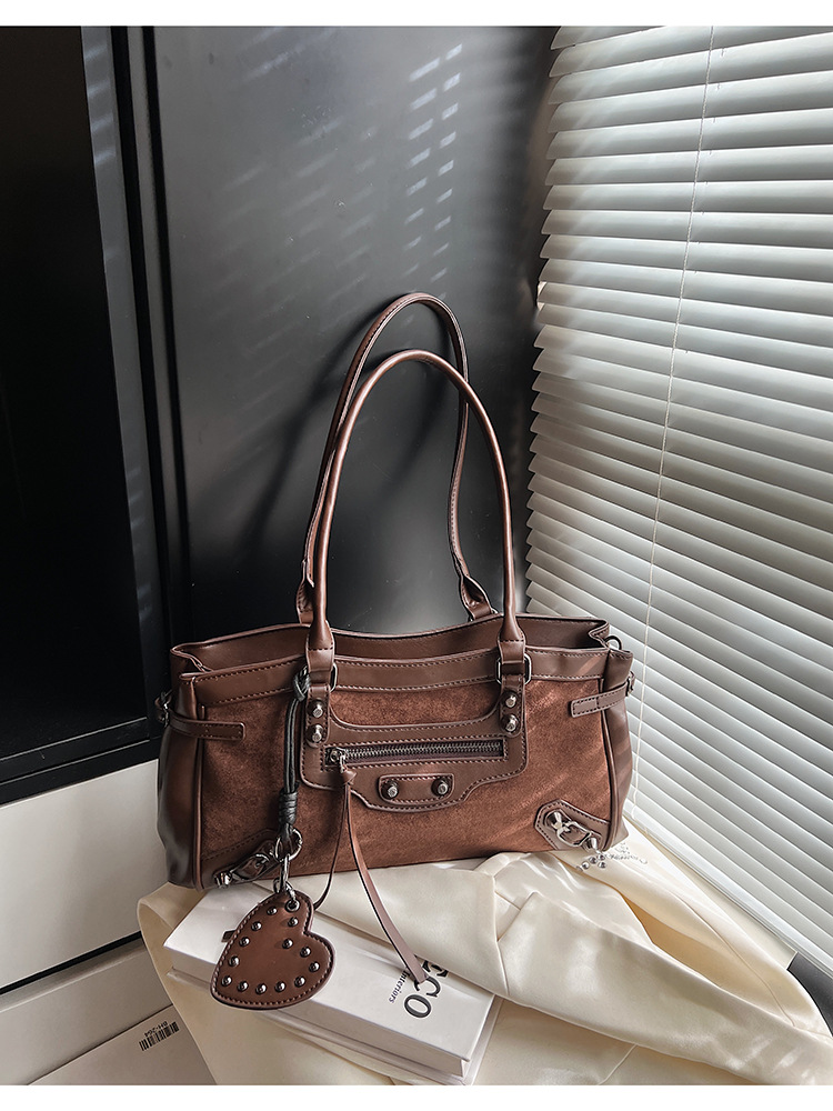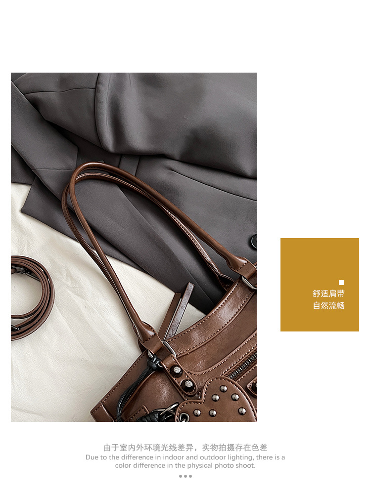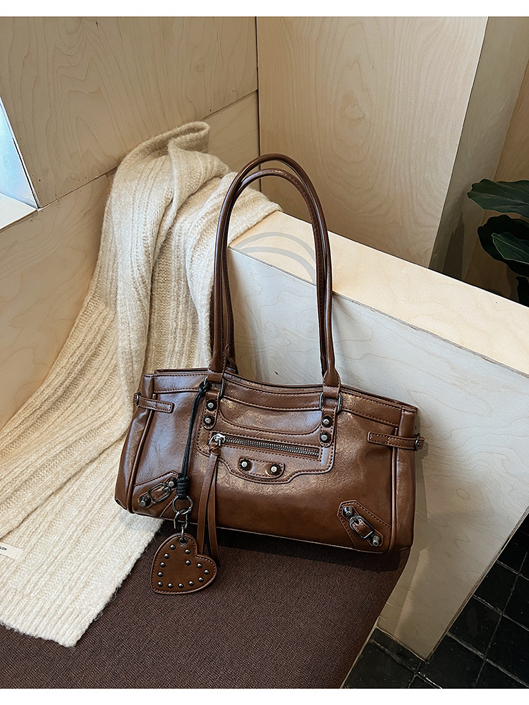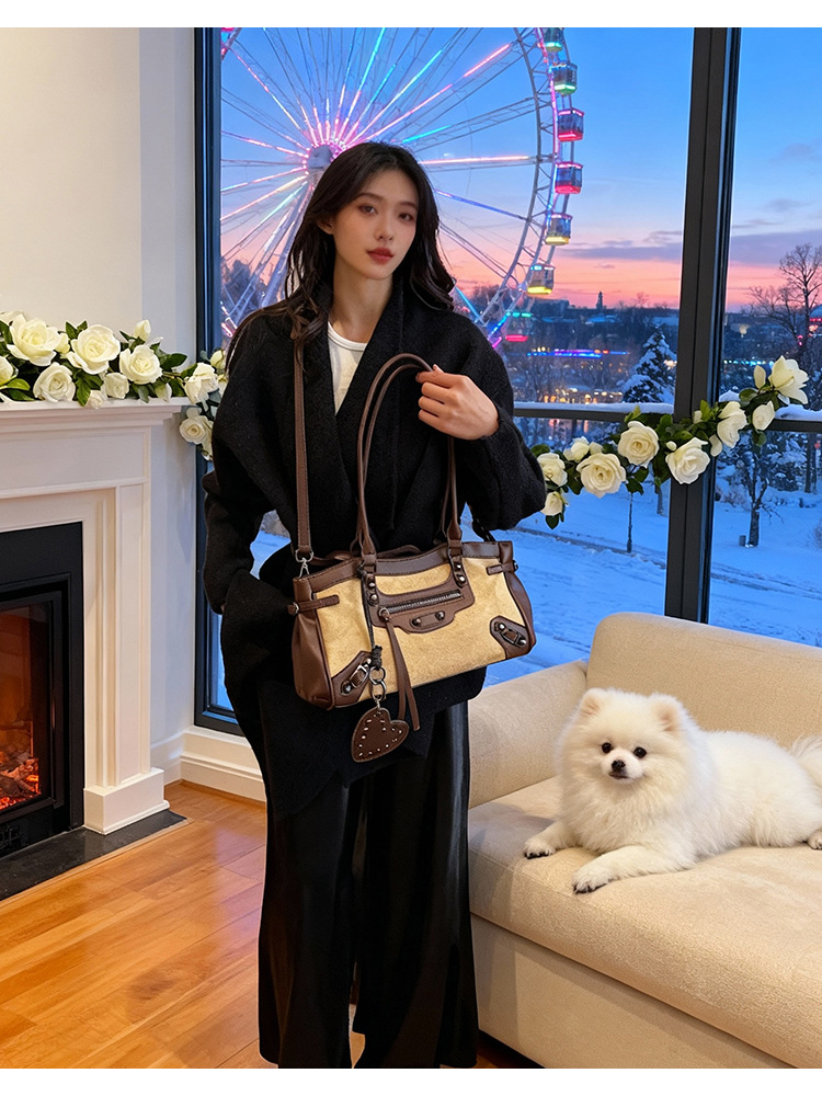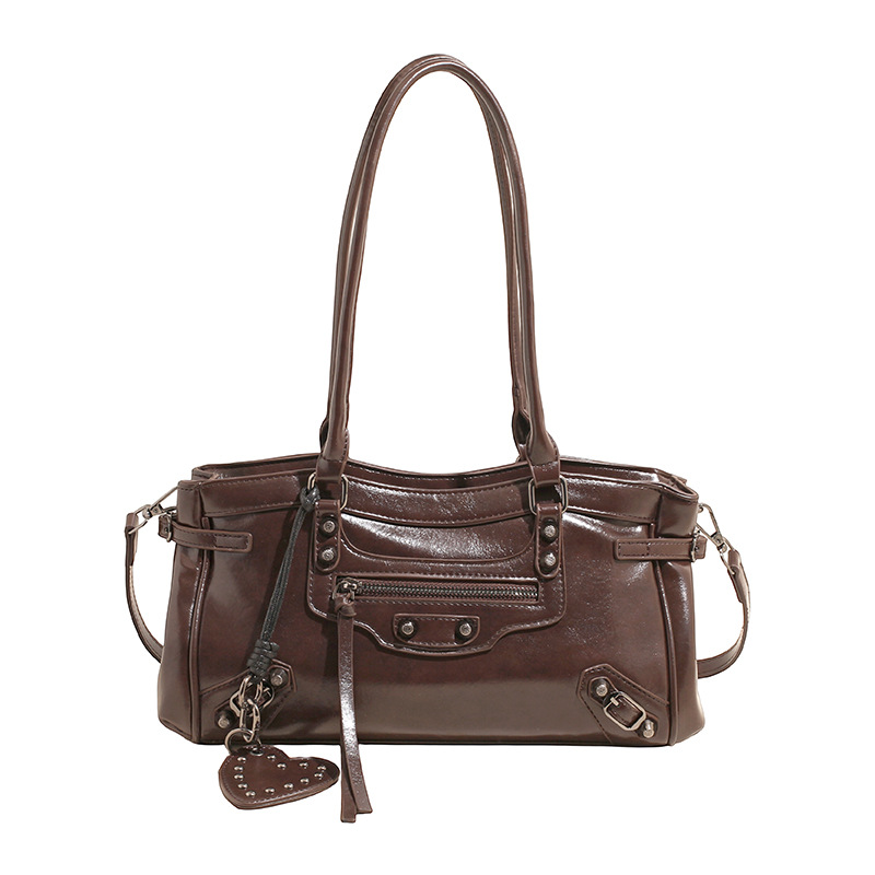 单肩包女士包包 轻奢质感拼接铆钉镶嵌单肩腋下包 潮酷辣妹机车包