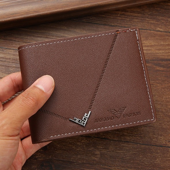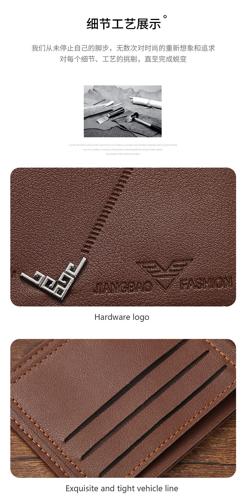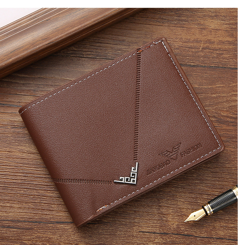 新款男士钱包男短款钱夹男青年简约时尚多卡位荔枝纹横款拼接皮夹