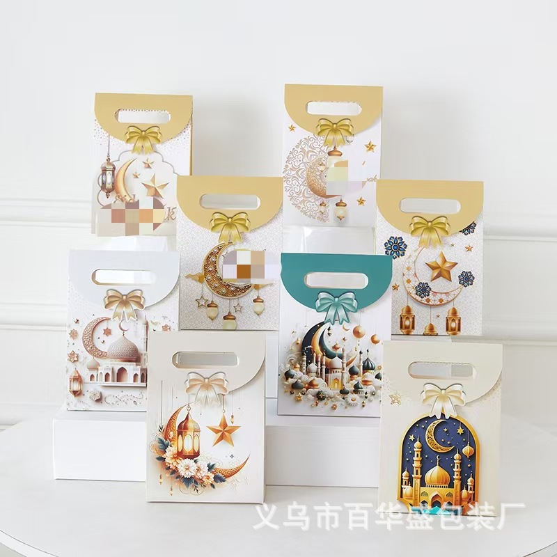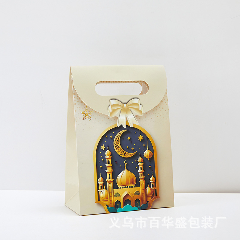 跨境月亮节翻盖礼品包装袋节日礼品手提卡纸袋生日礼品伴手礼袋