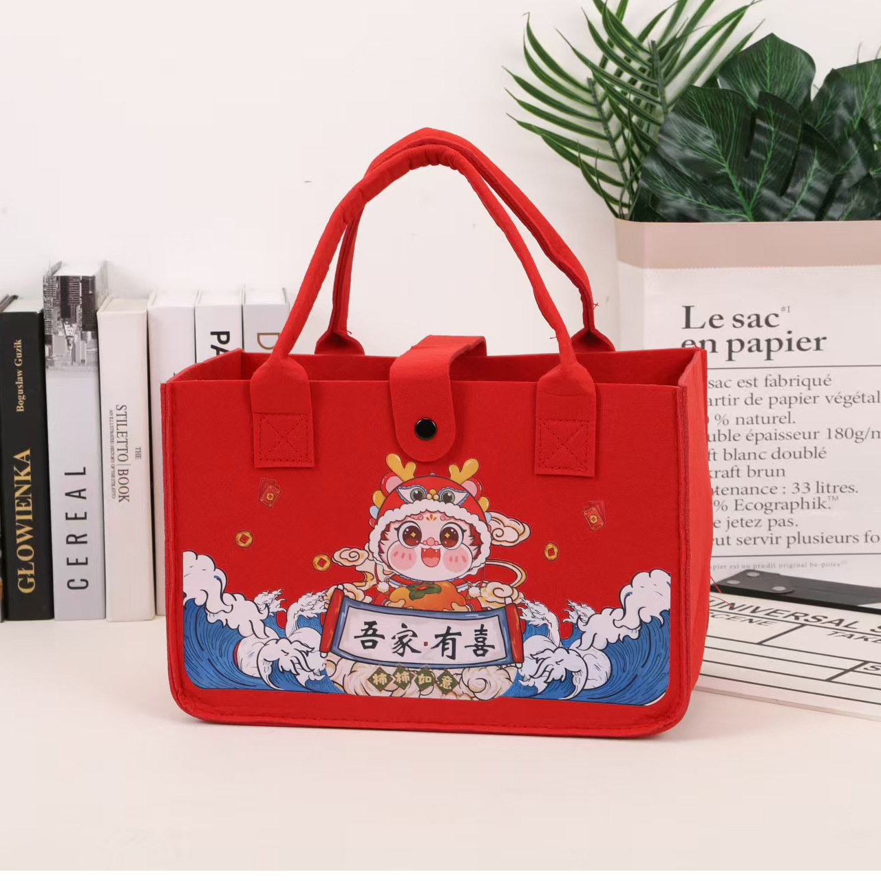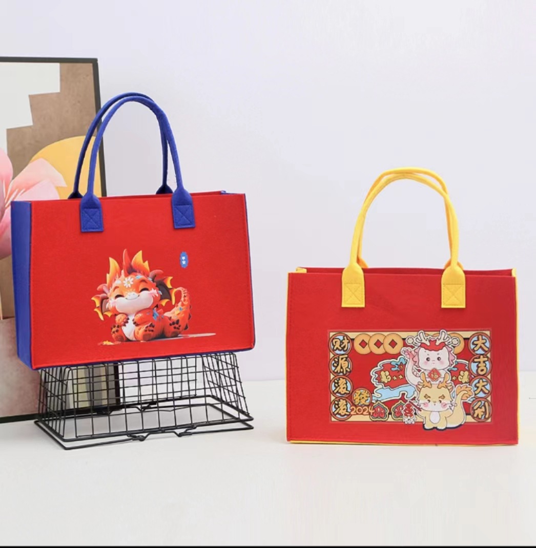 现货毛毡包儿童生日伴手礼婚庆满月手提袋大容量毛毡托特包礼品袋