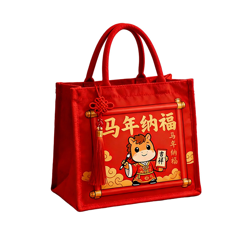 新年春节立体帆布托特包定制伴手礼品袋大容量手提可印logo帆布袋