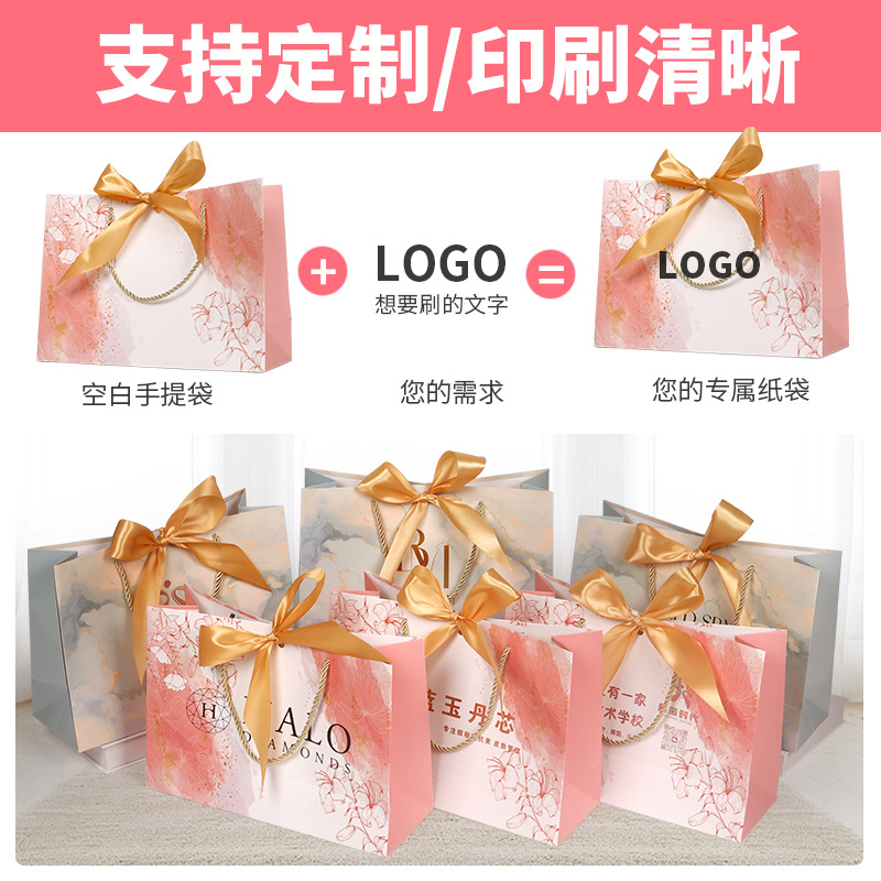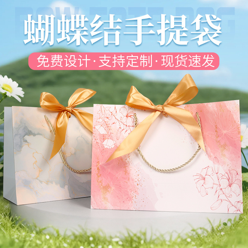 手提袋时尚蝴蝶结纸袋印刷服装袋礼品袋购物袋丝带包装袋化妆品袋