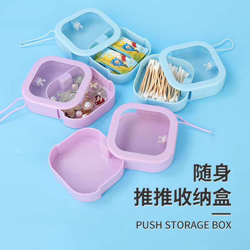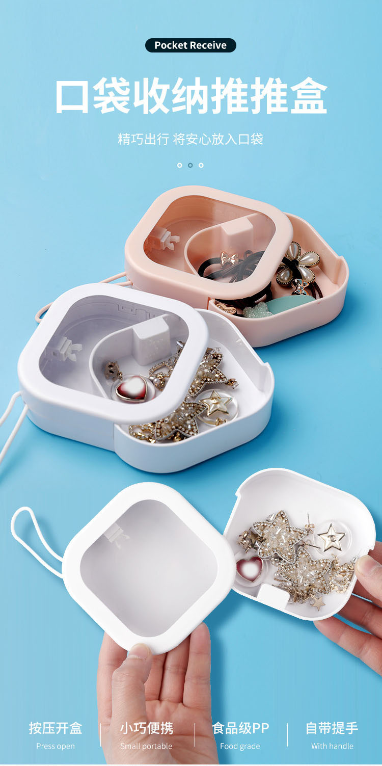 趣味饰品收纳盒按压式推推盒学生发夹储物盒子包包饰品收纳整理盒