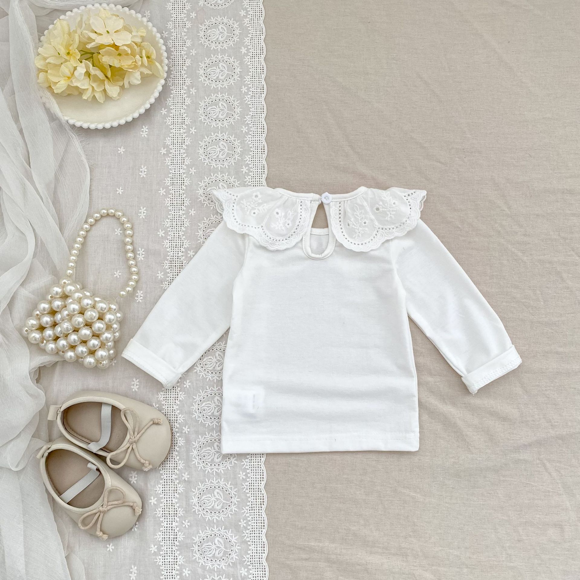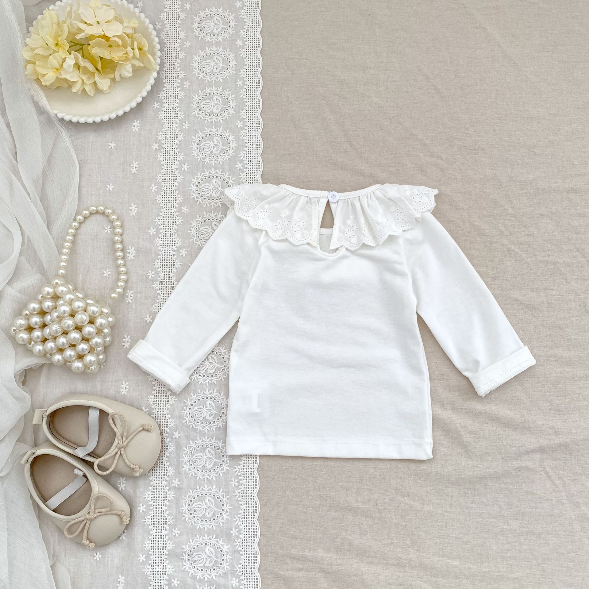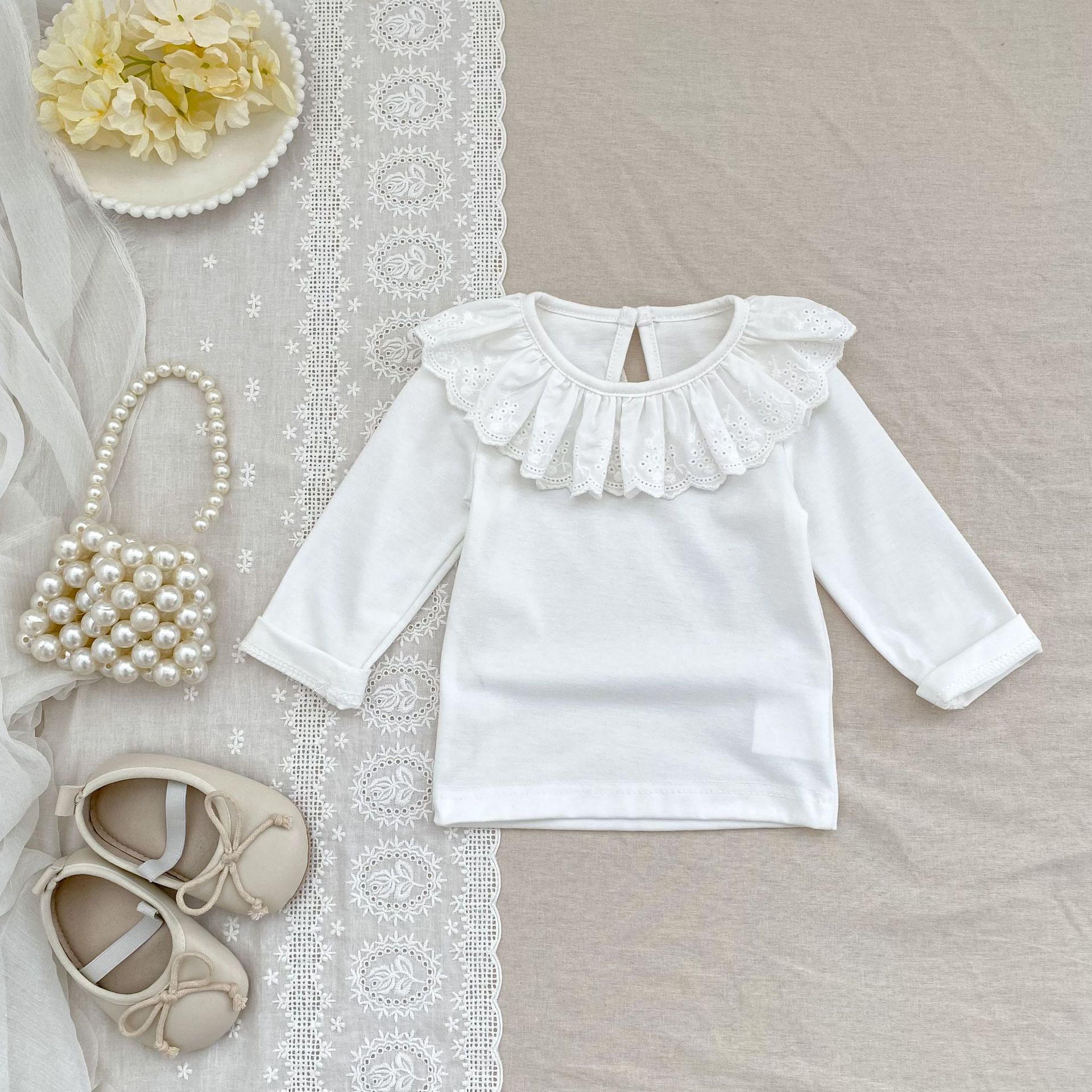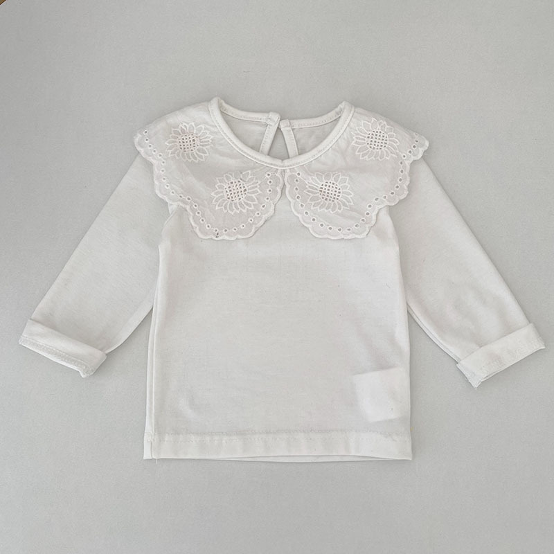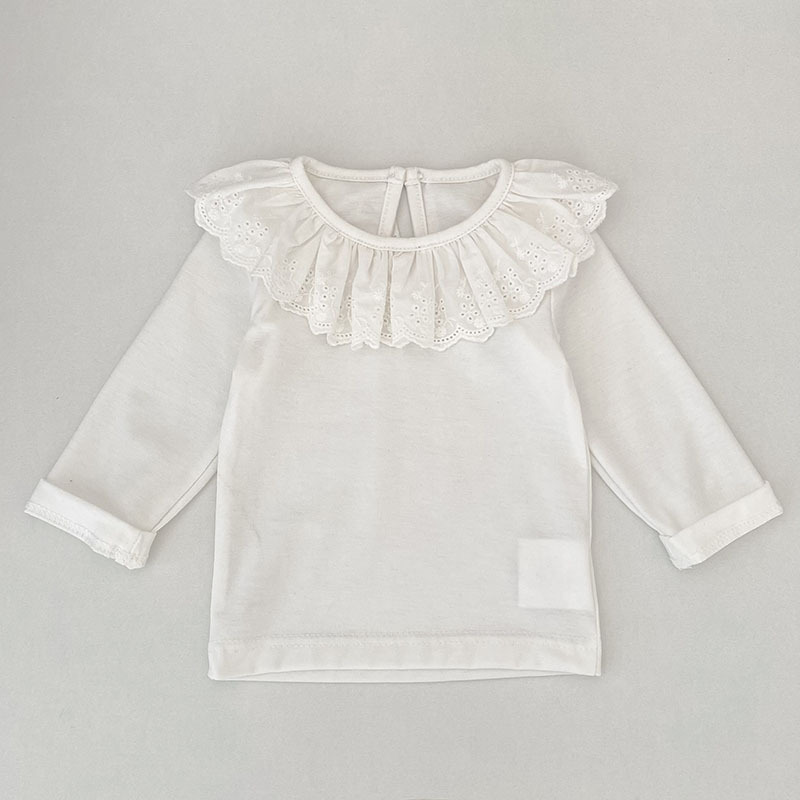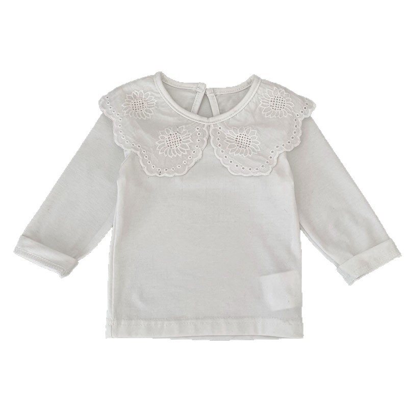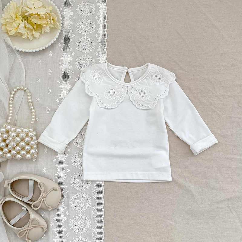 婴儿娃娃领洋气T恤韩版女宝宝春秋装纯色花边领打底衫儿童装上衣
