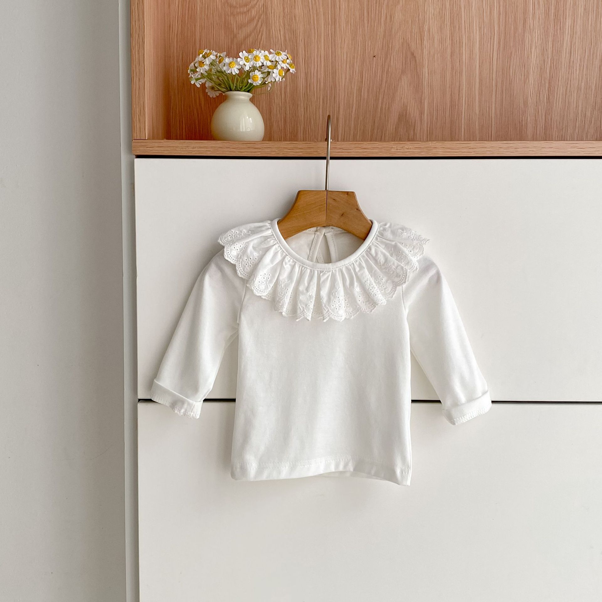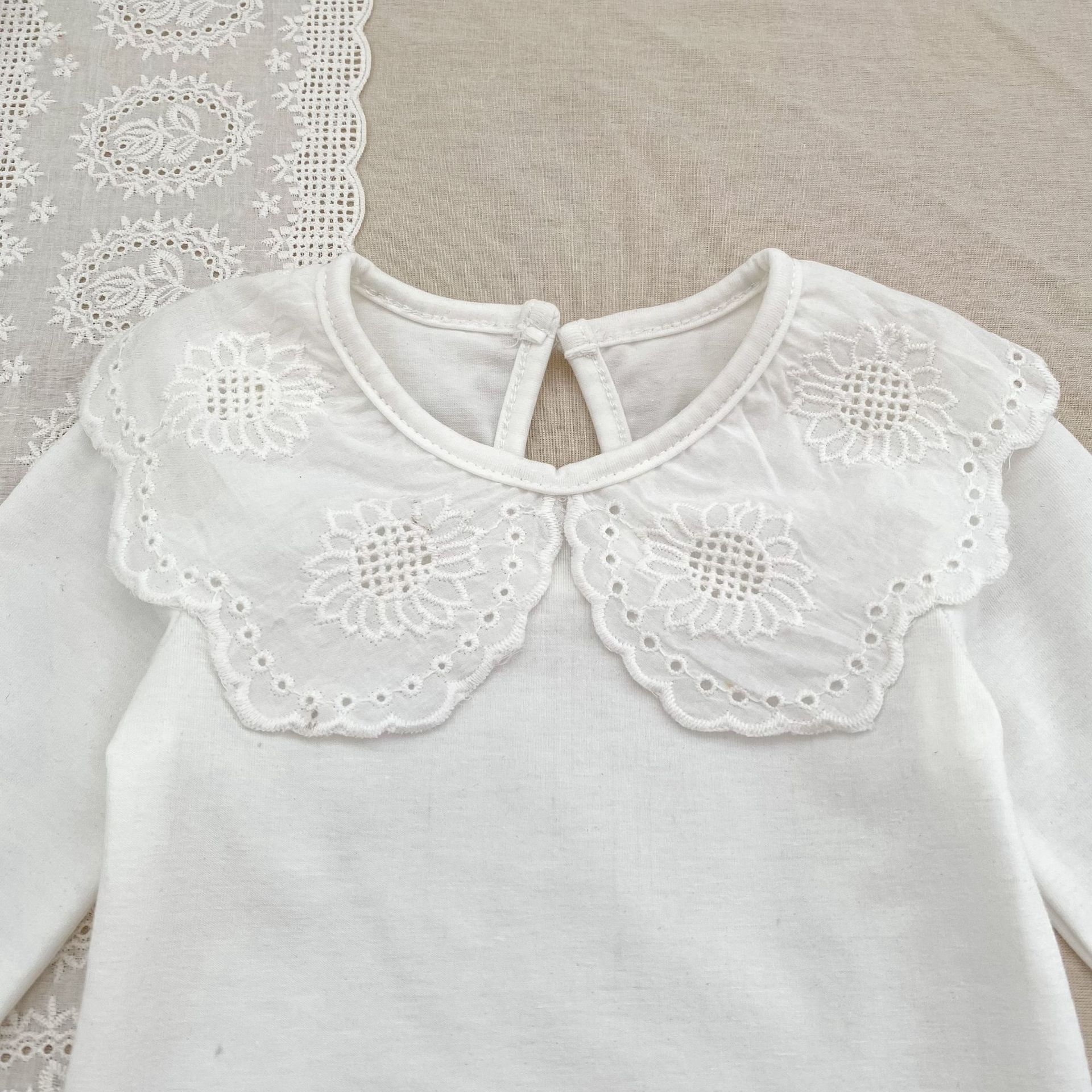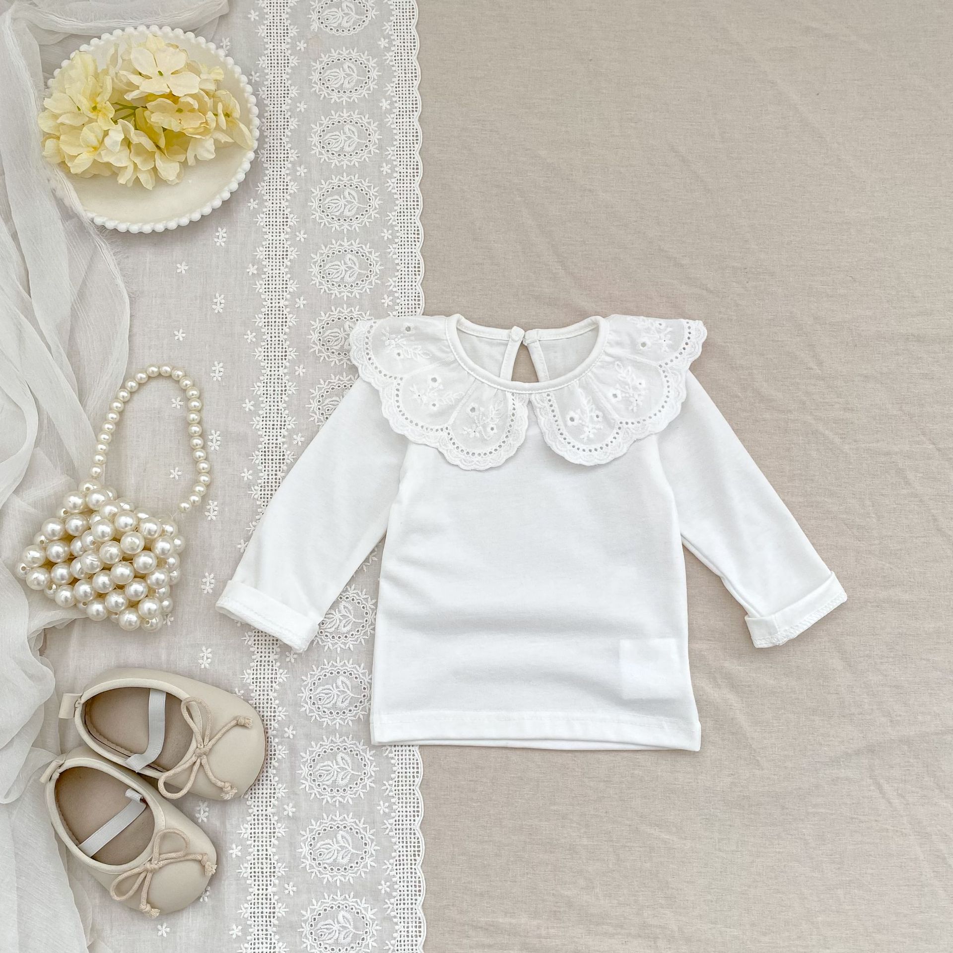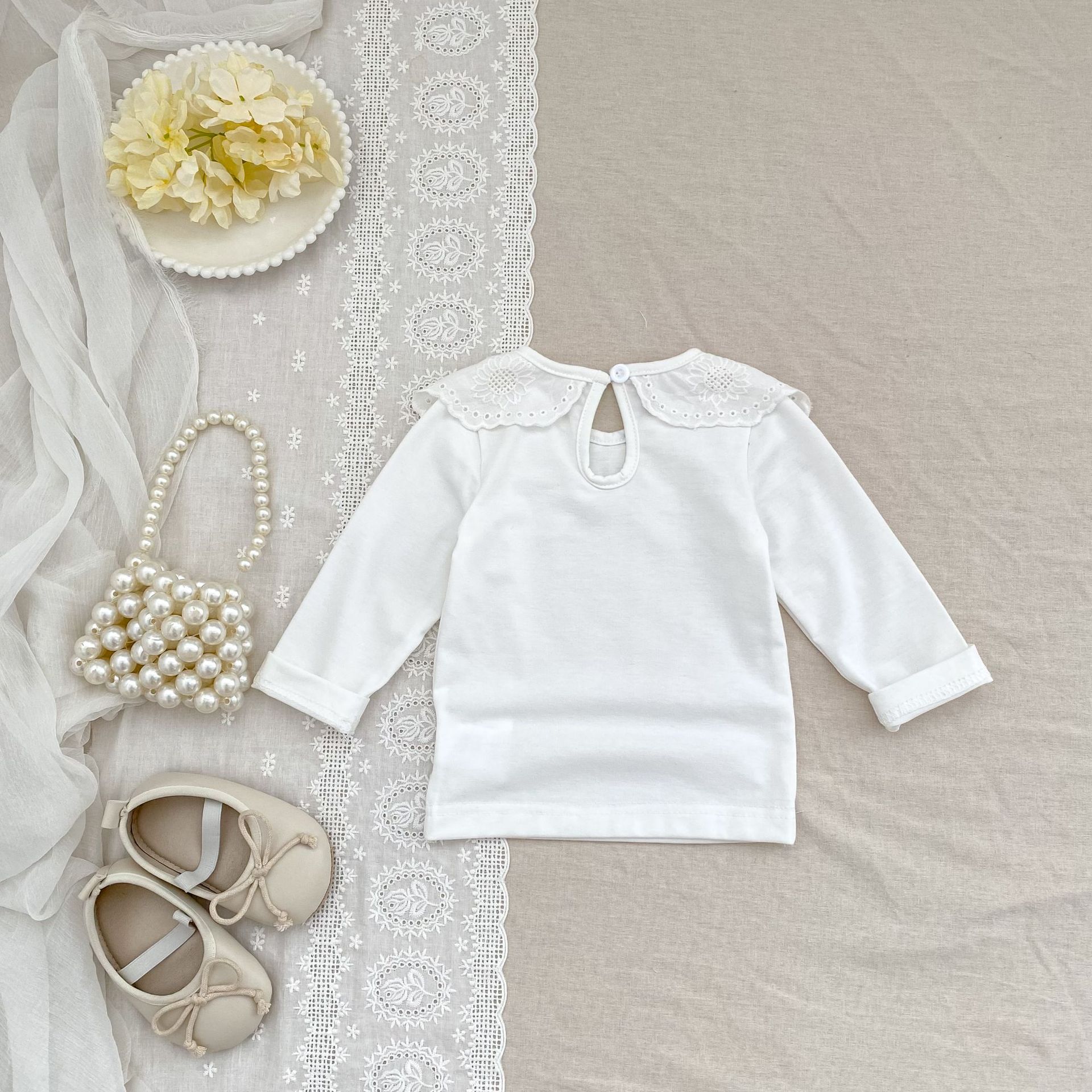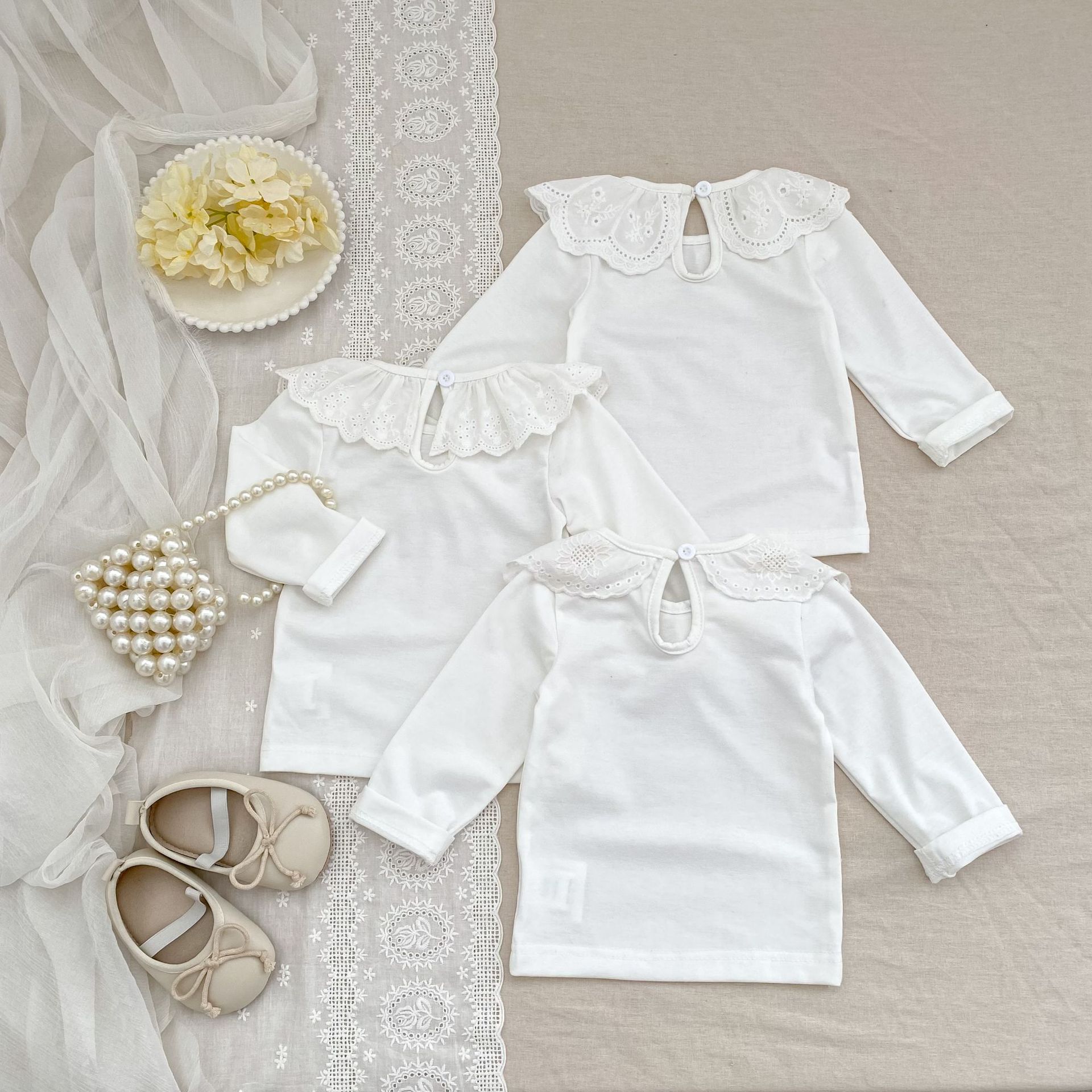 婴儿娃娃领洋气T恤韩版女宝宝春秋装纯色花边领打底衫儿童装上衣