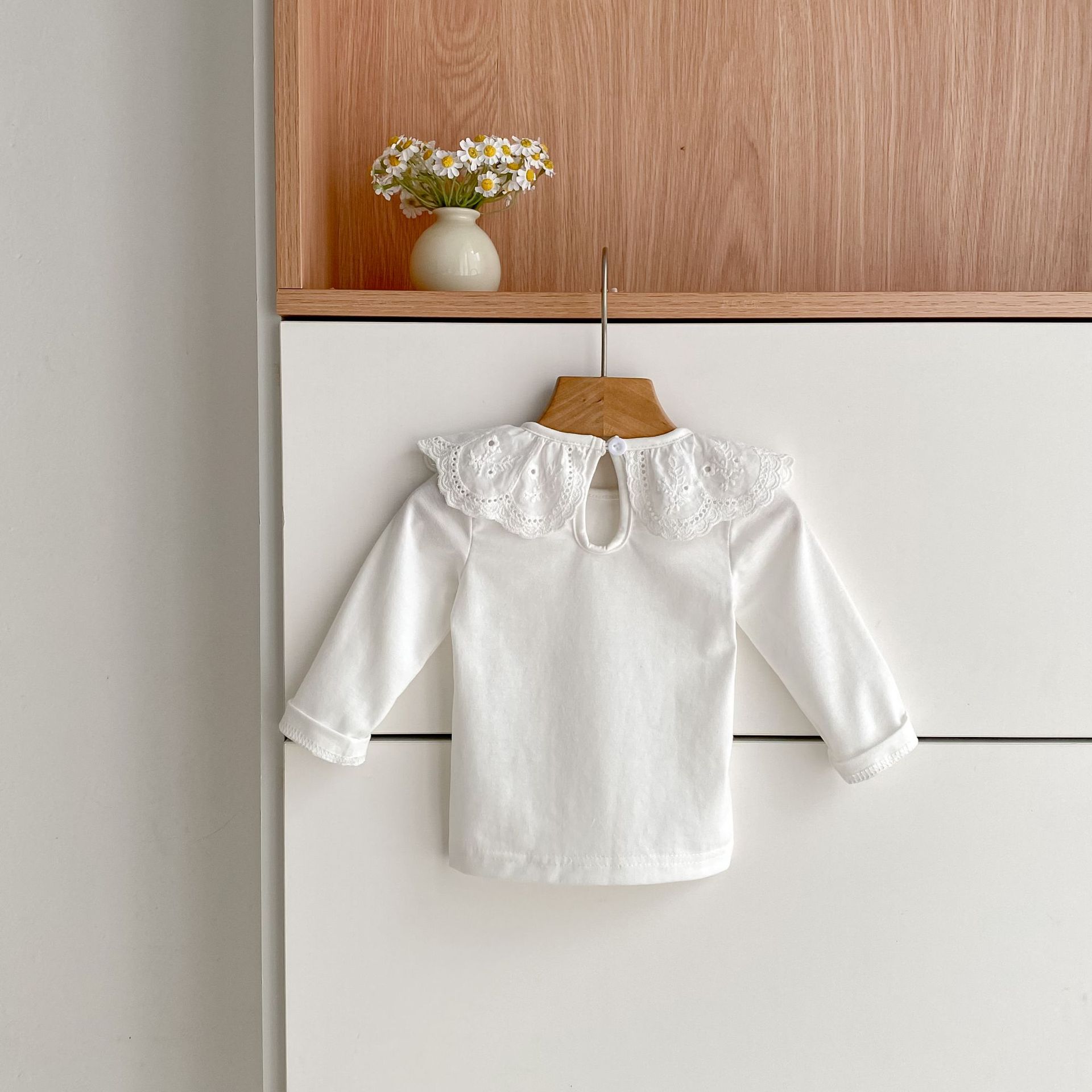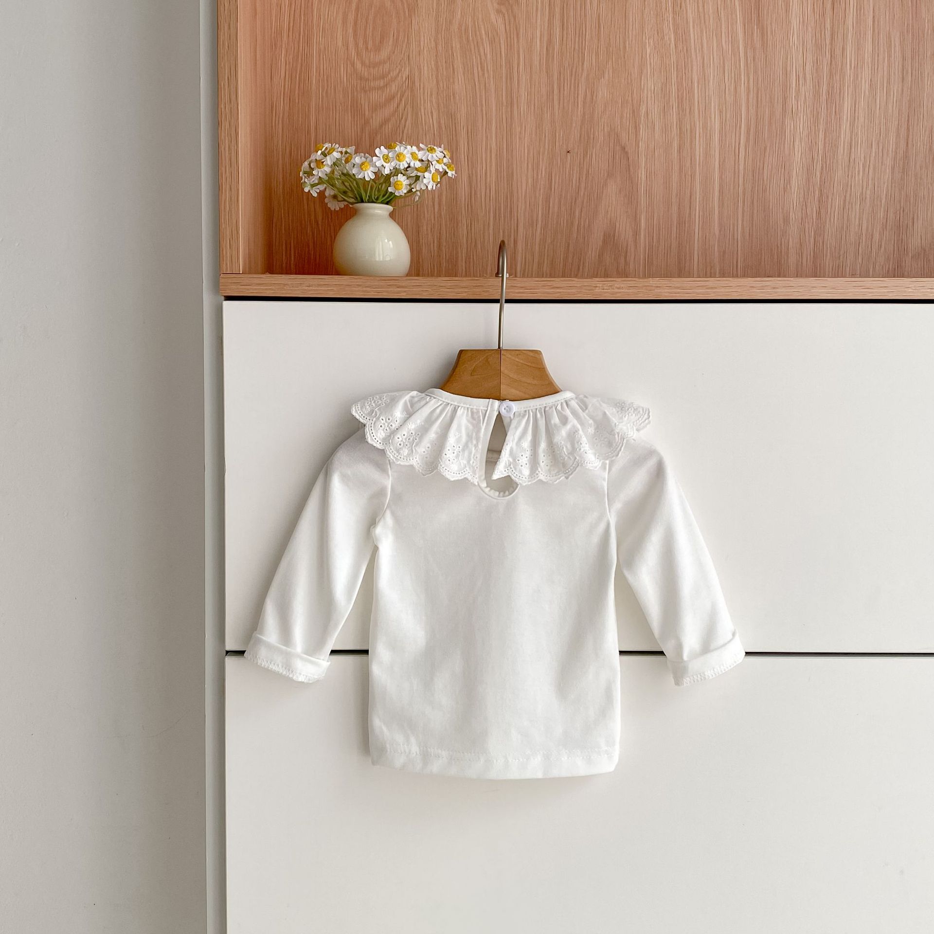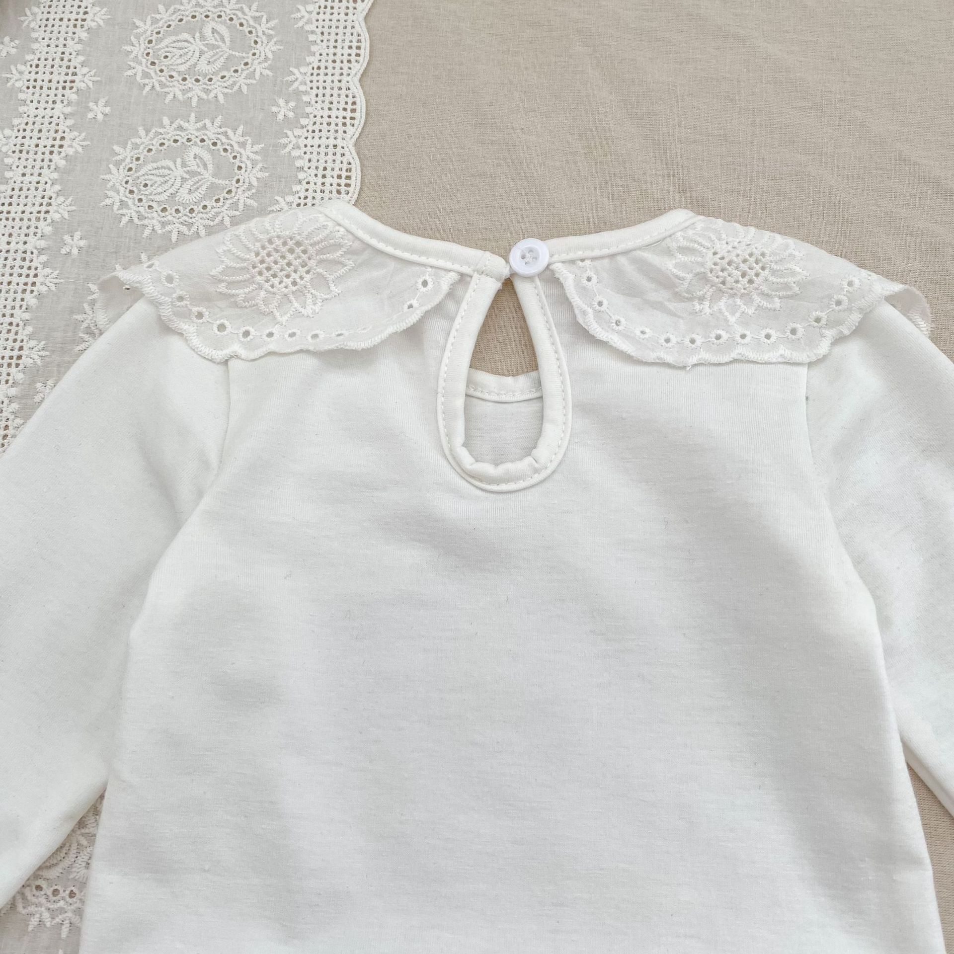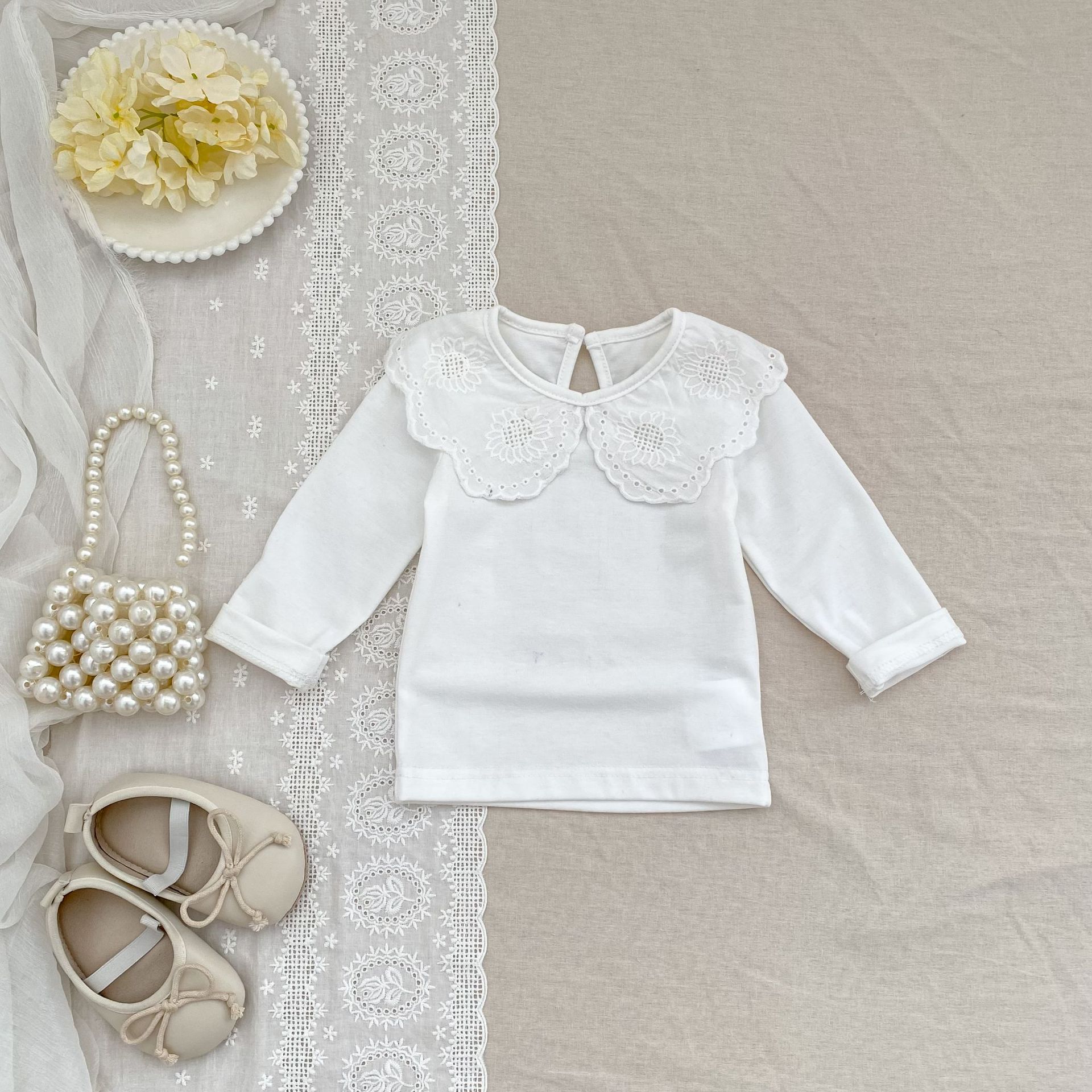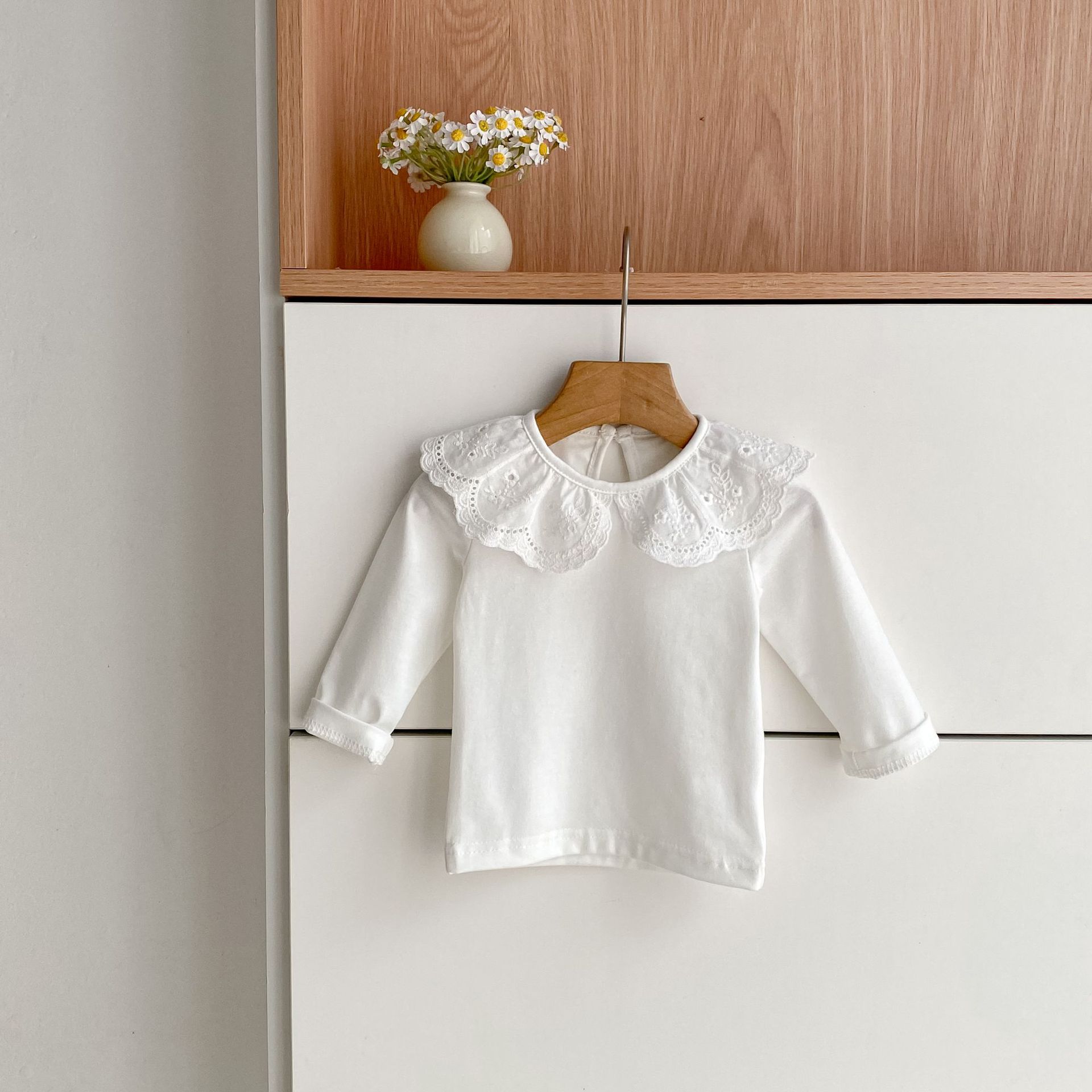 婴儿娃娃领洋气T恤韩版女宝宝春秋装纯色花边领打底衫儿童装上衣
