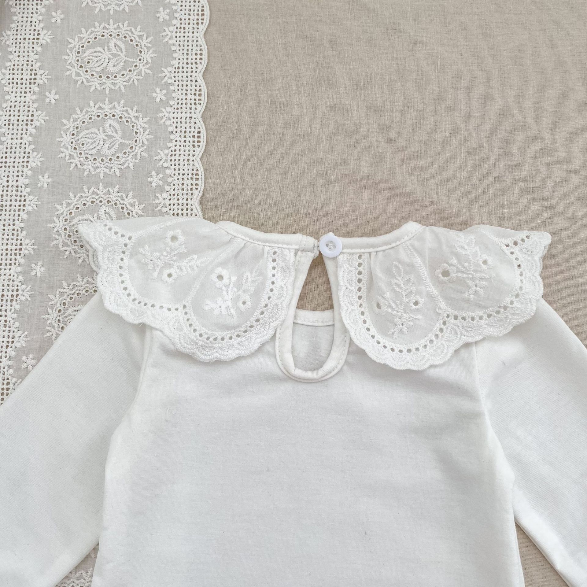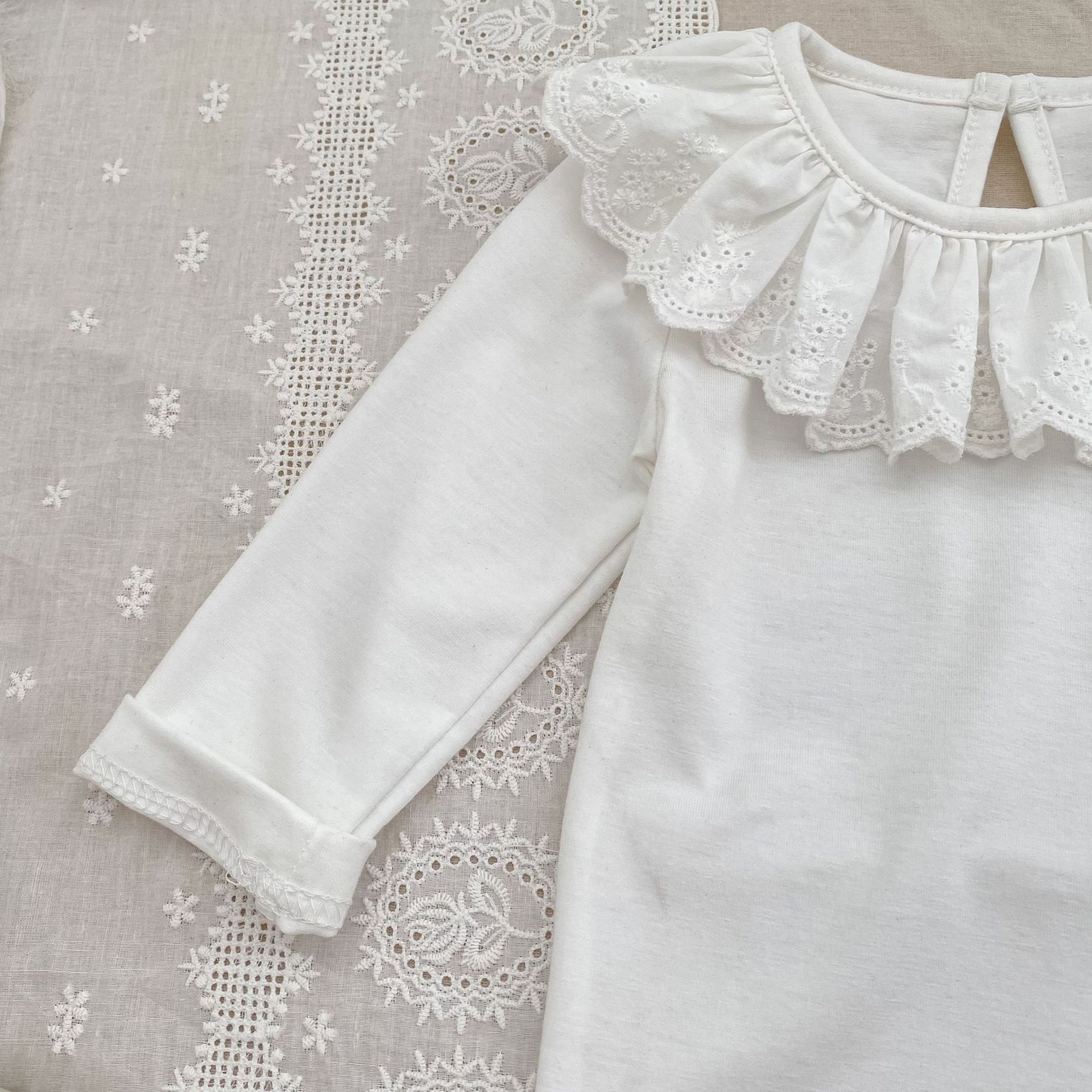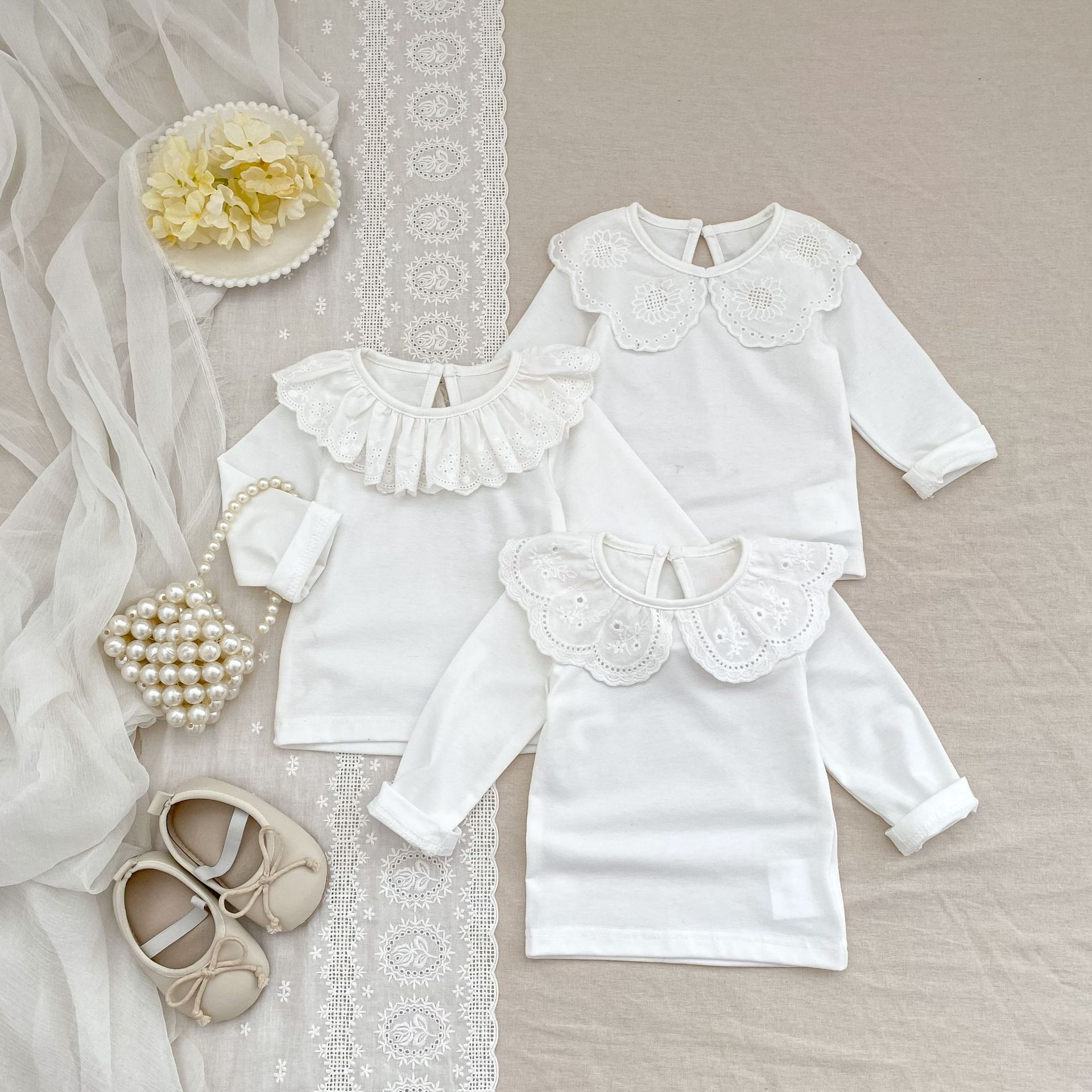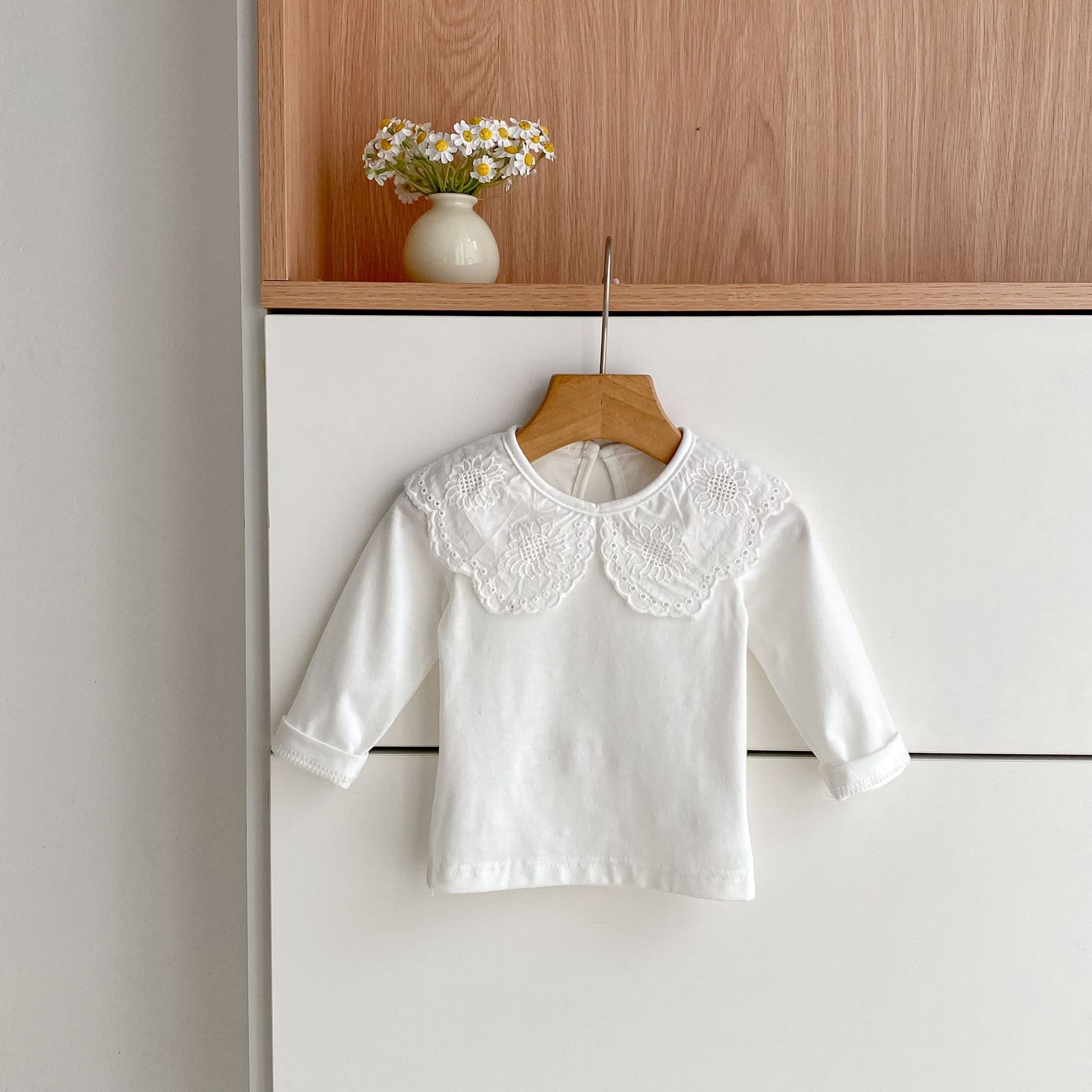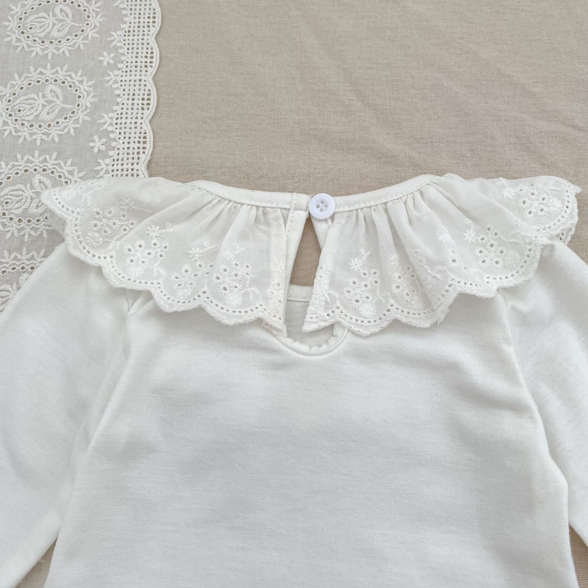 婴儿娃娃领洋气T恤韩版女宝宝春秋装纯色花边领打底衫儿童装上衣