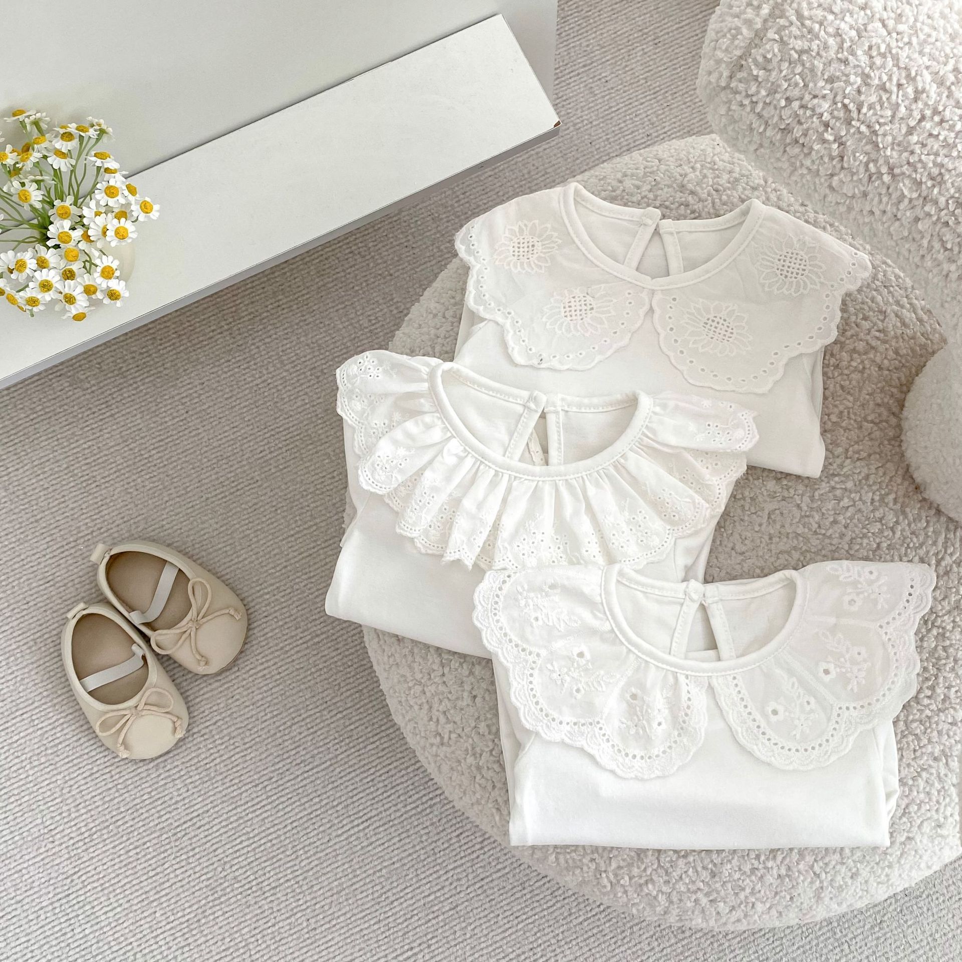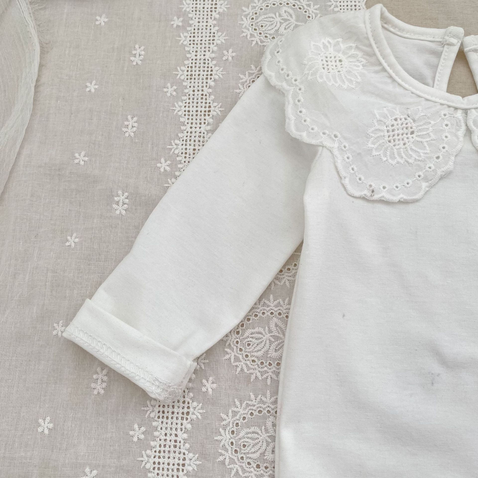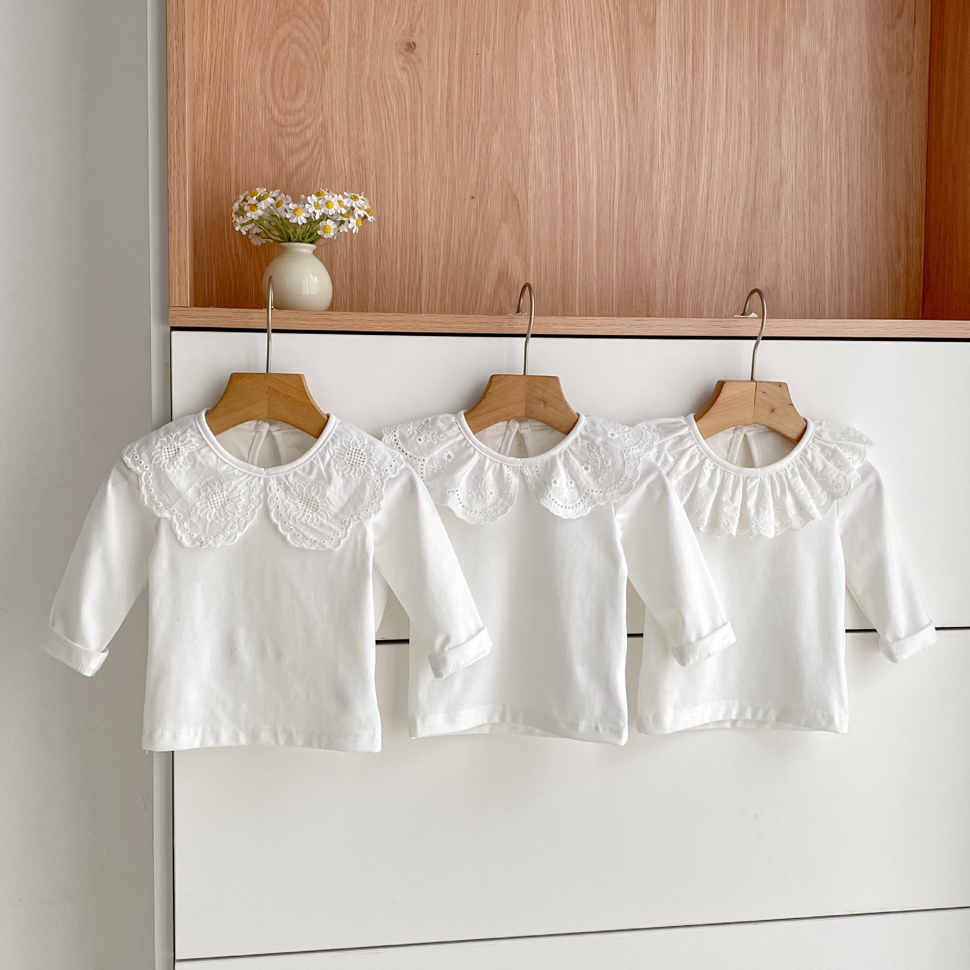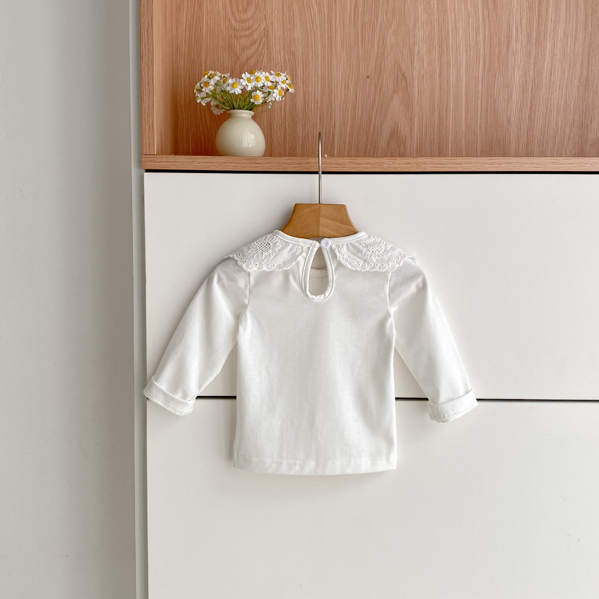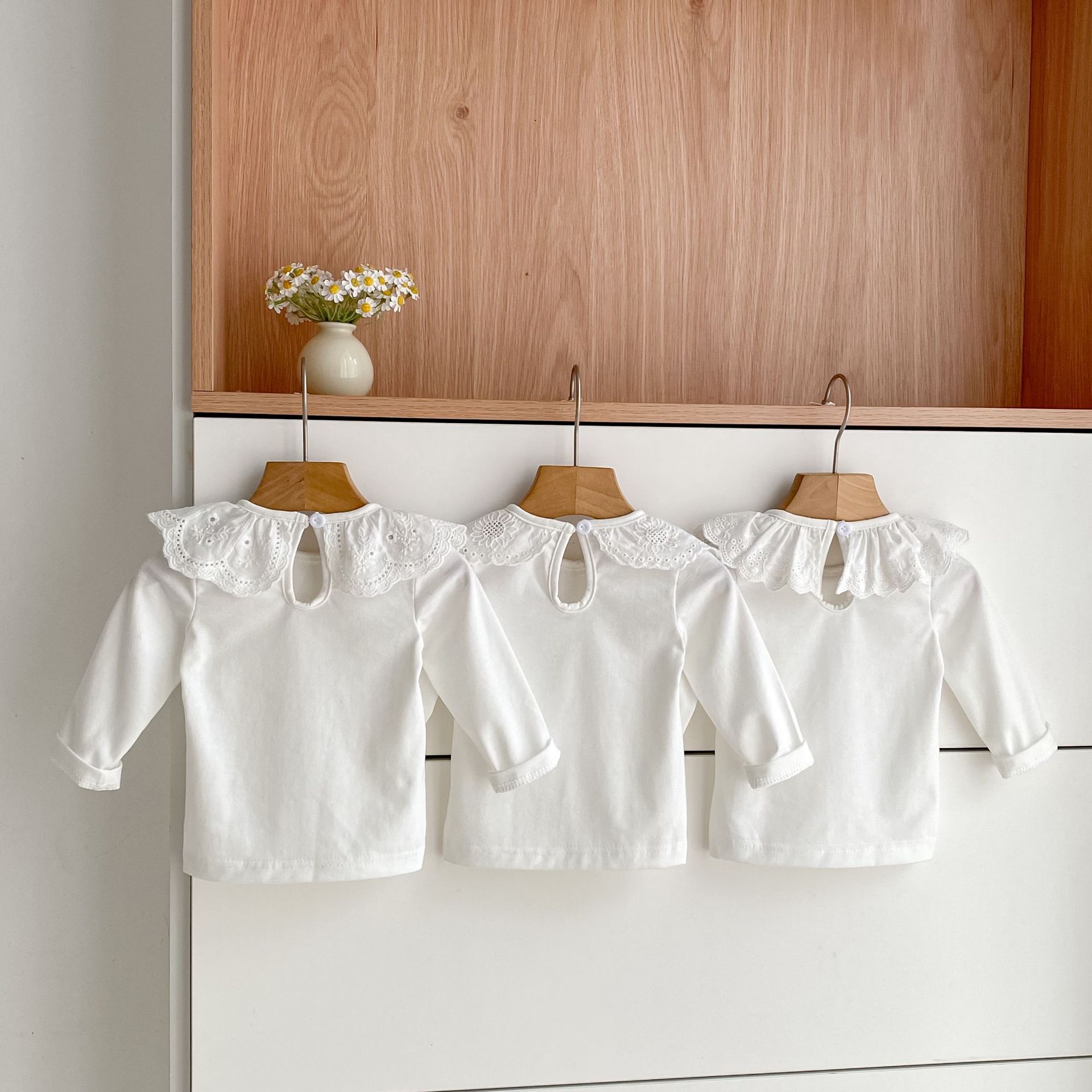婴儿娃娃领洋气T恤韩版女宝宝春秋装纯色花边领打底衫儿童装上衣