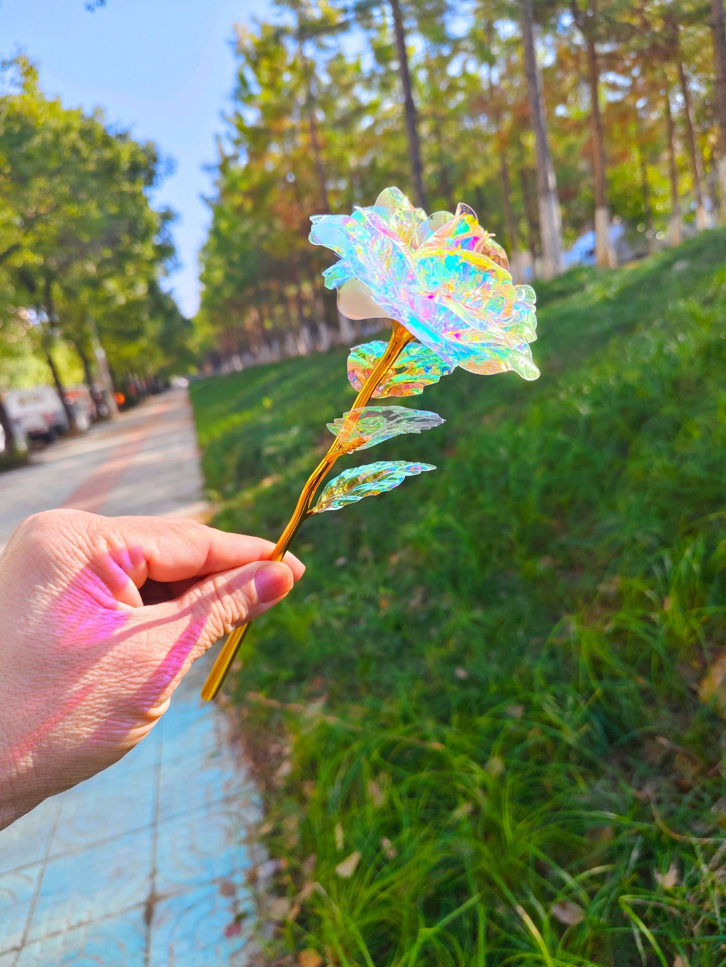 新款七彩炫光玫瑰花束仿真永生花装饰摆件拍照道具生日礼物送女友