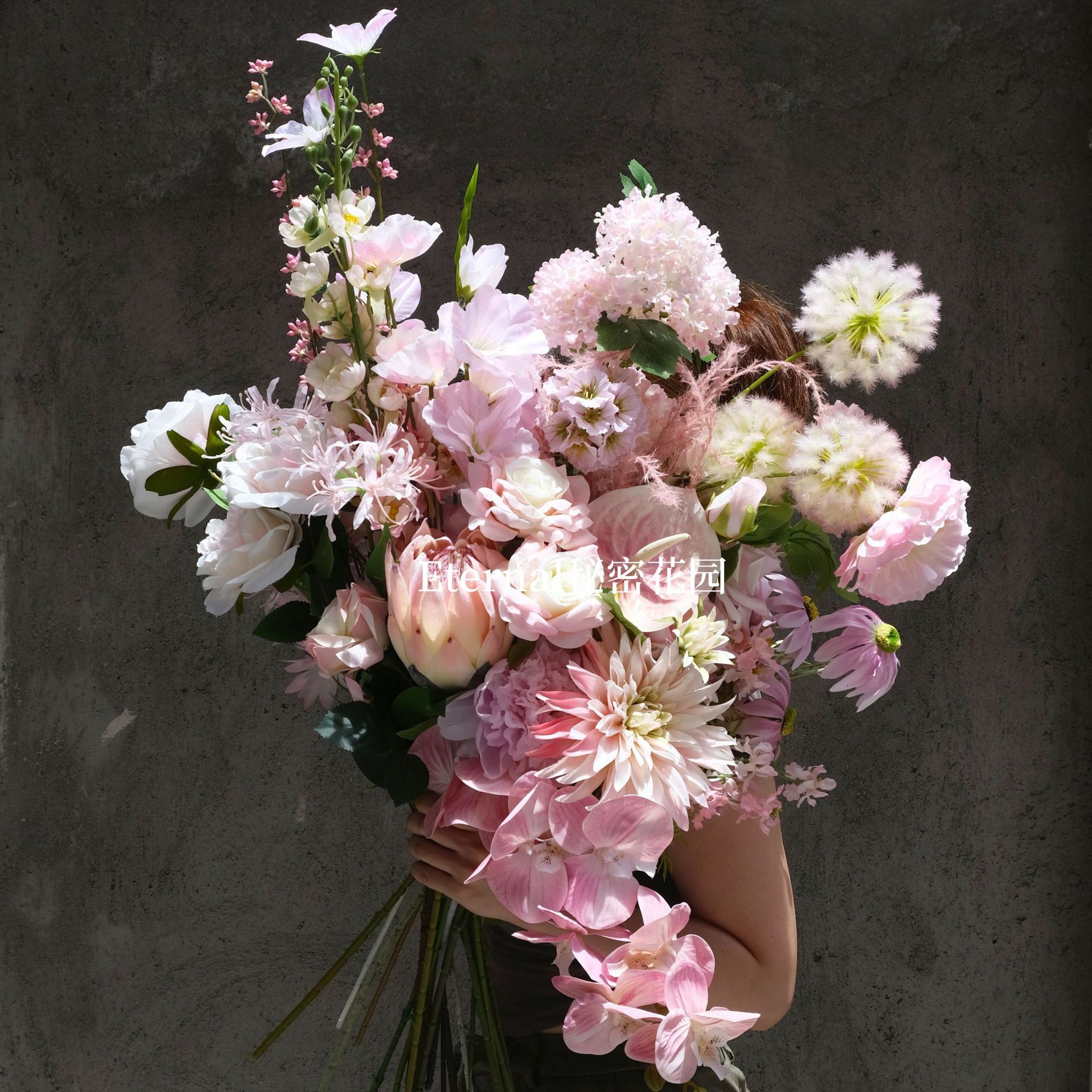 粉红色仿真花婚庆婚礼堂粉红色系背景路引插花装饰假绢花批发厂家