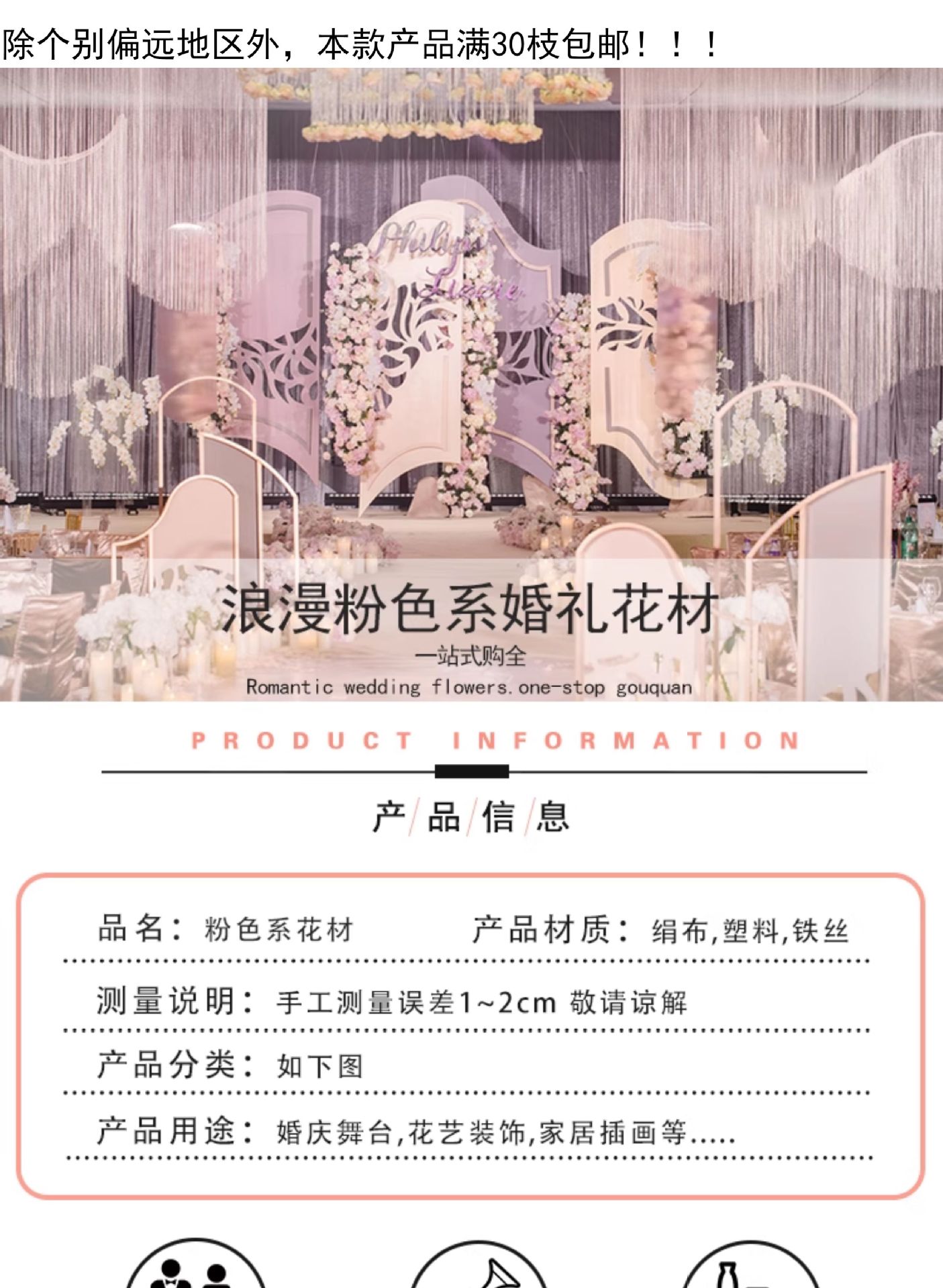 玉粉色仿真花婚庆玫瑰假花婚礼堂路引橱窗装饰绢花插花花材瀑布花