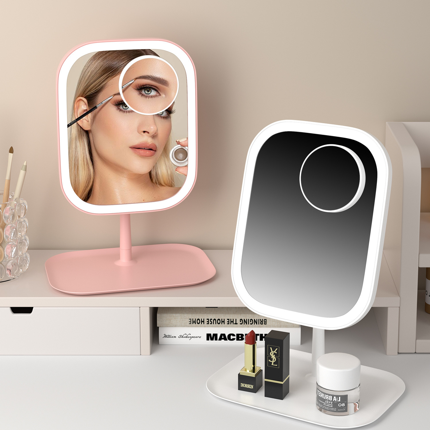 LED带灯化妆镜台式桌面镜子宿舍家用ins风梳妆镜便携随身美妆镜子