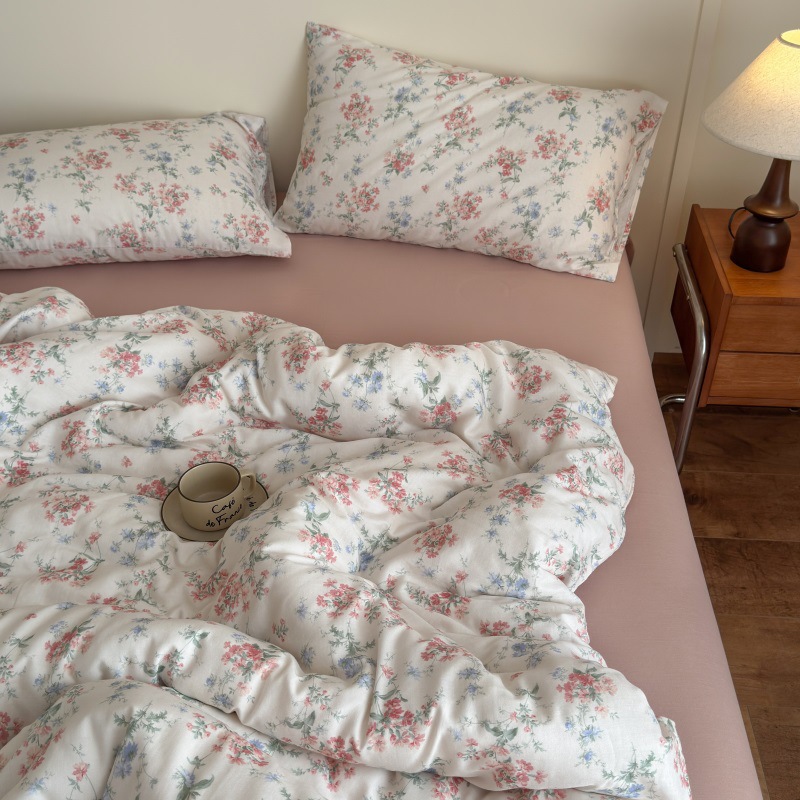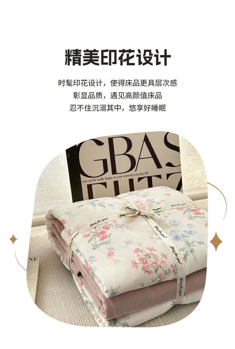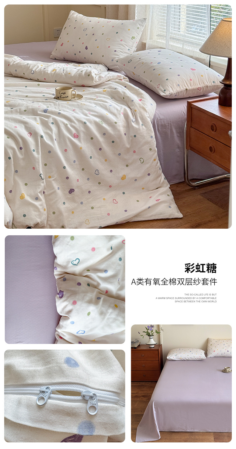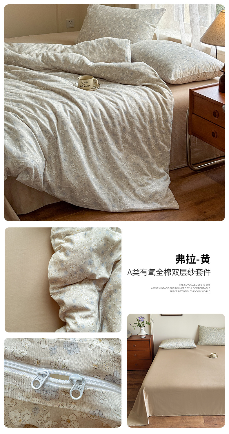 ins小清新a类母婴级全棉双层纱纯棉四件套春夏学生印花被套三件套
