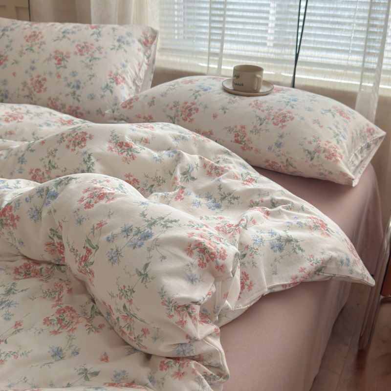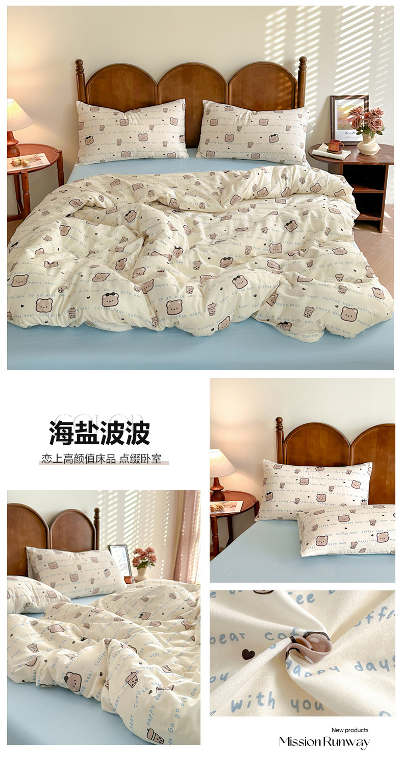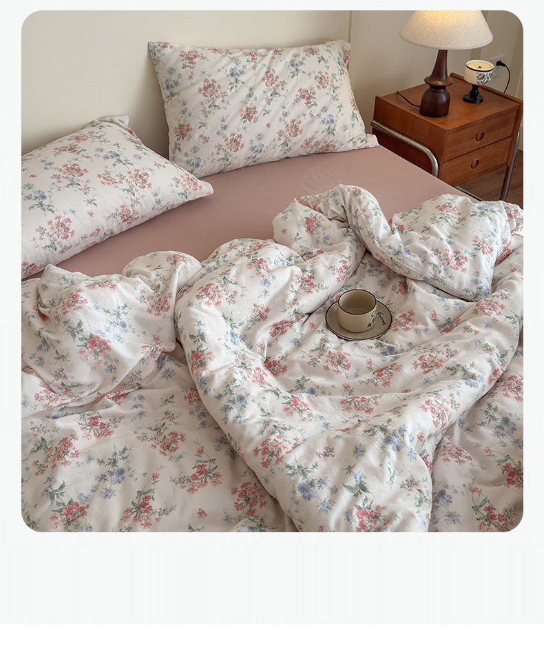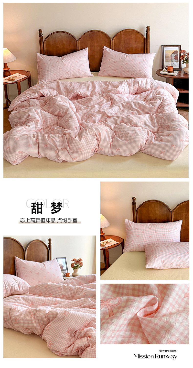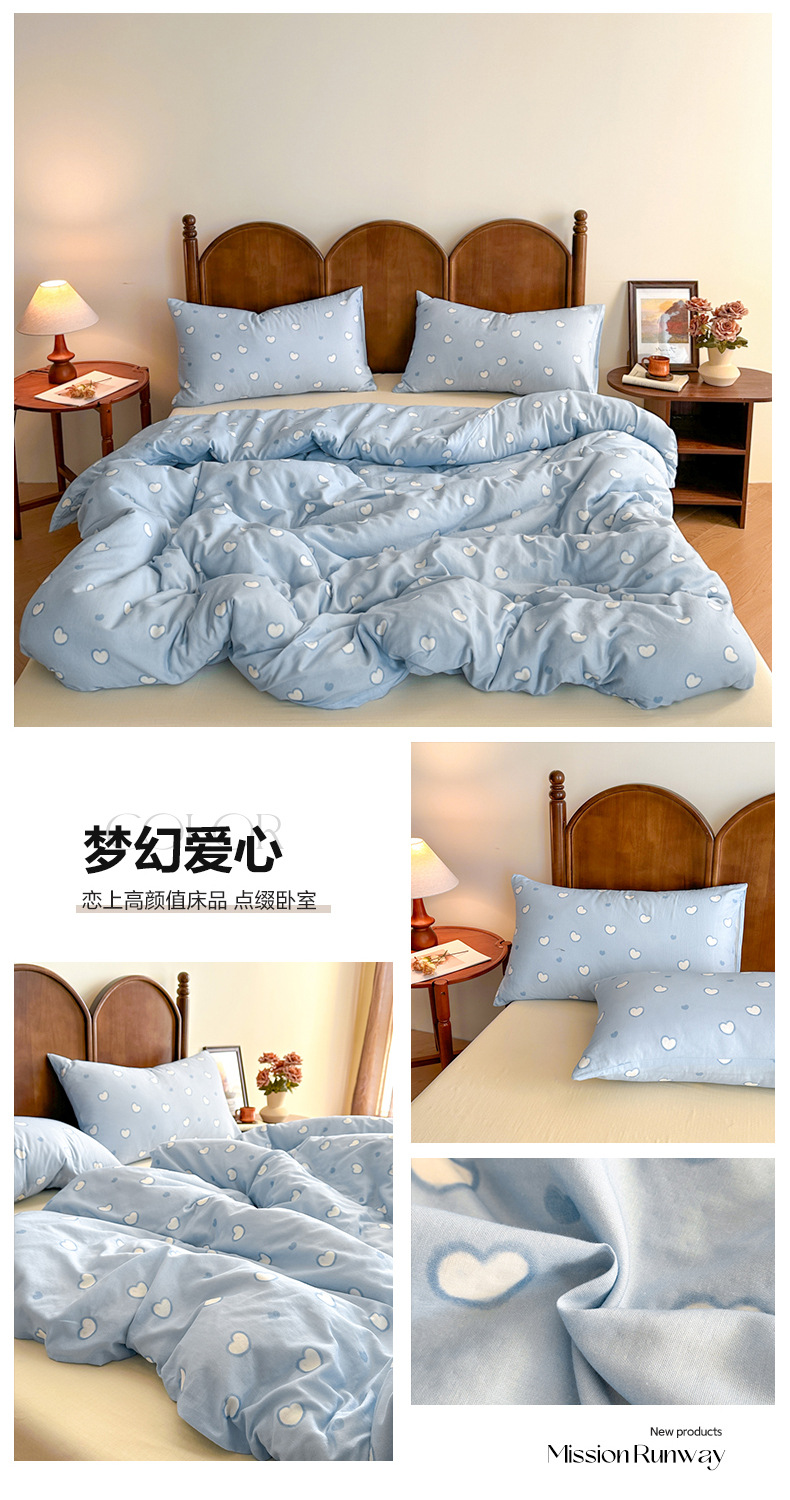 ins小清新a类母婴级全棉双层纱纯棉四件套春夏学生印花被套三件套