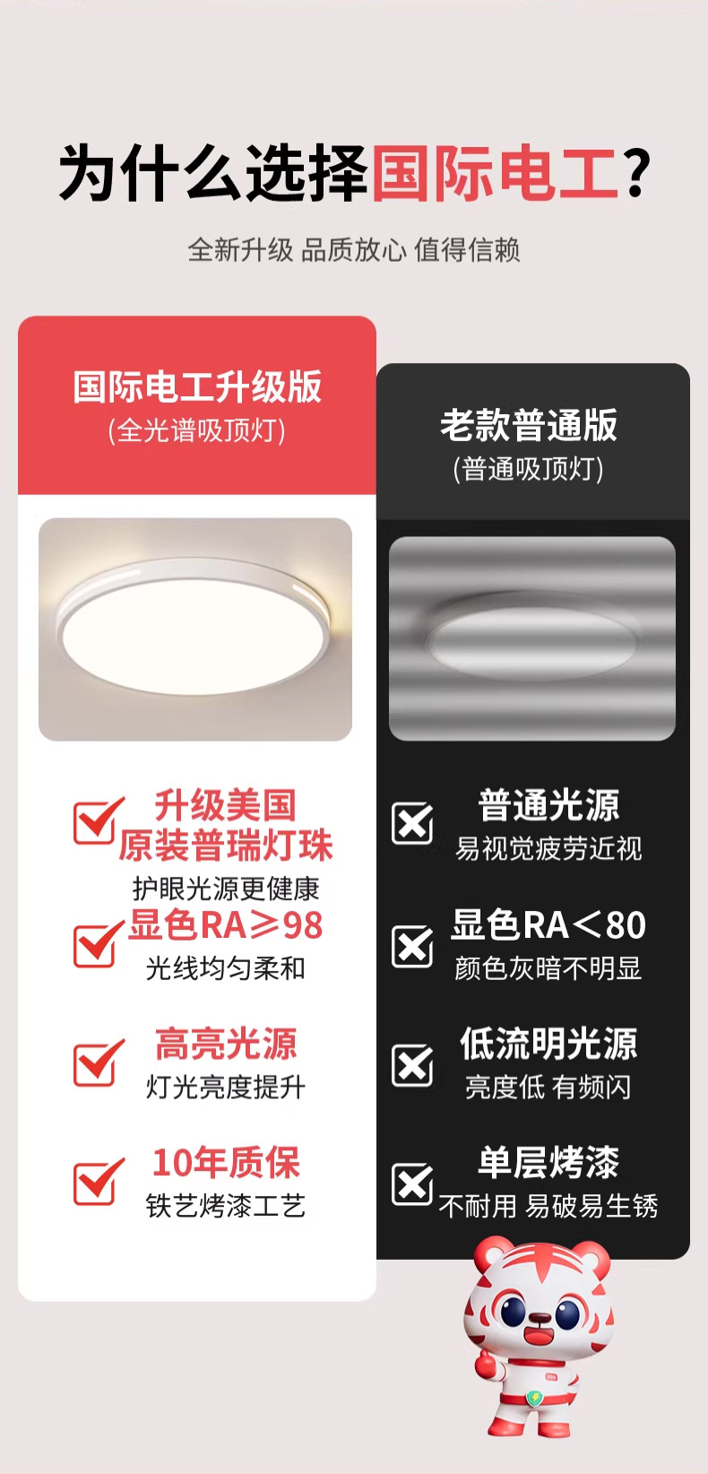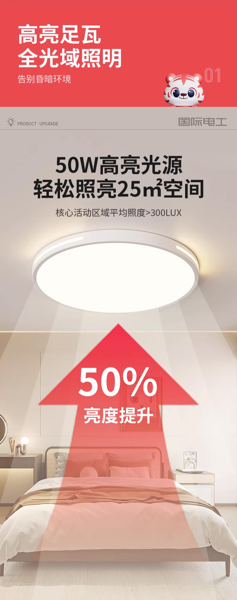 国际电工普瑞全光谱简约圆形led客厅灯吸顶灯大厅主灯卧室灯房间