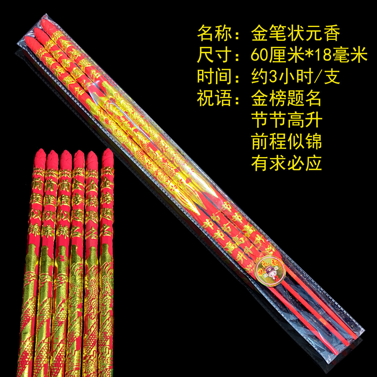 【10包起发】中国红凸龙香凸字香烫金佛香 60-80公分金香颜色鲜艳