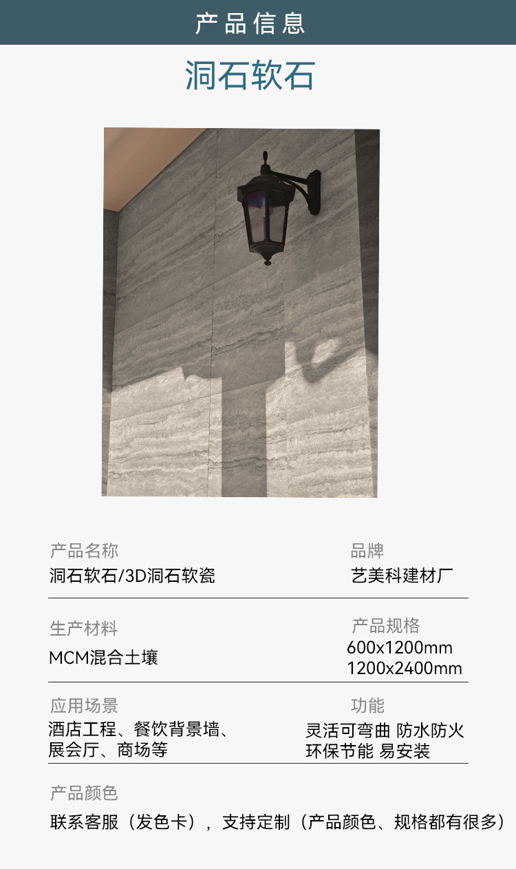 3d打印软石罗马洞石可弯曲柔性超薄软瓷星月石外墙砖背景墙仿瓷砖