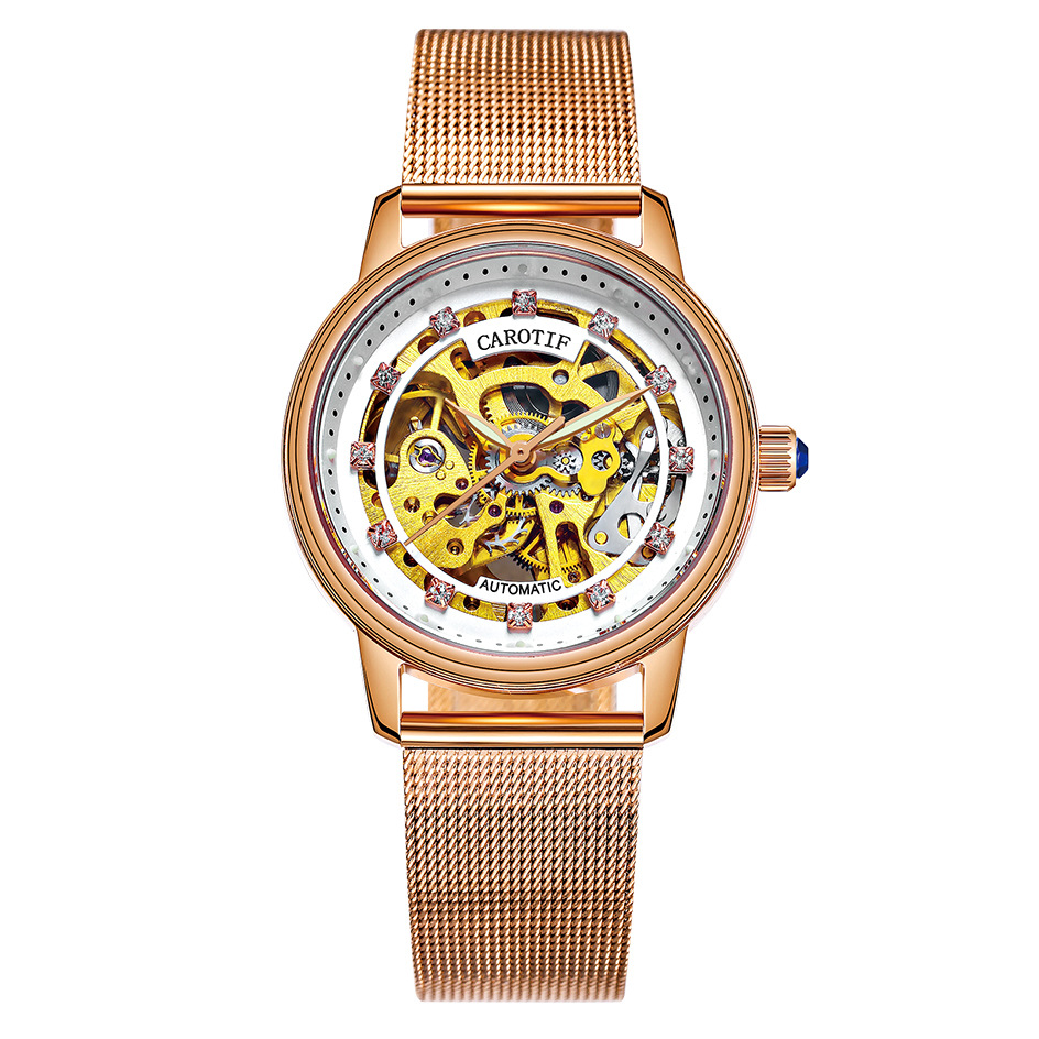 抖音爆款钢带手表时尚潮流机械表女表全自动镂空腕表精钢防水夜光