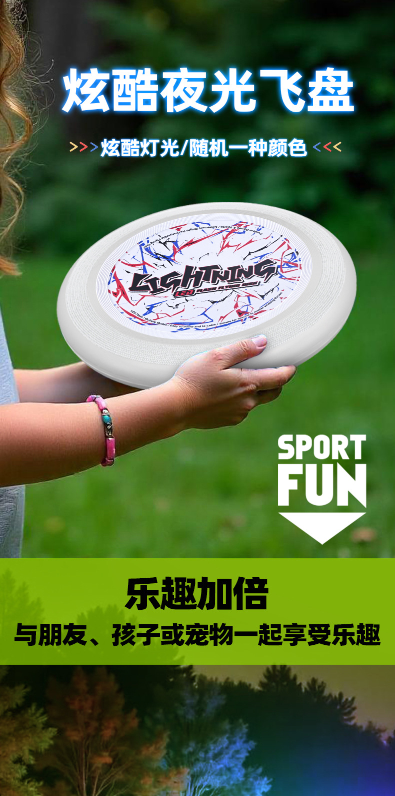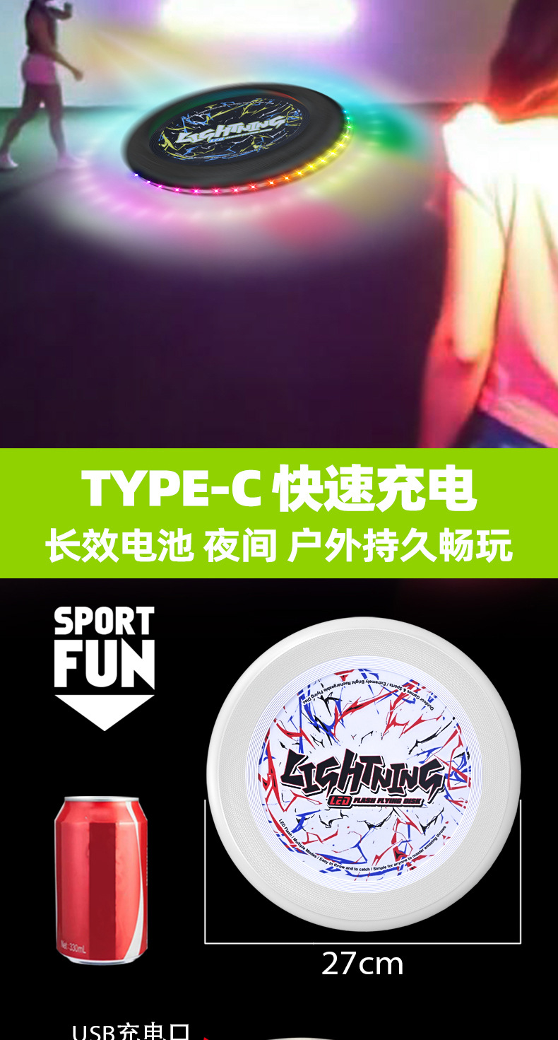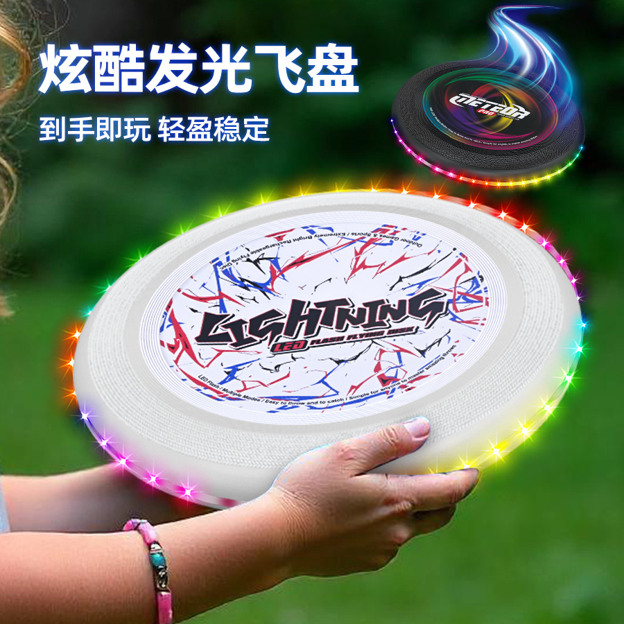 跨境儿童户外发光飞盘回旋手抛玩具宠物灯光飞碟亲子互动运动玩具