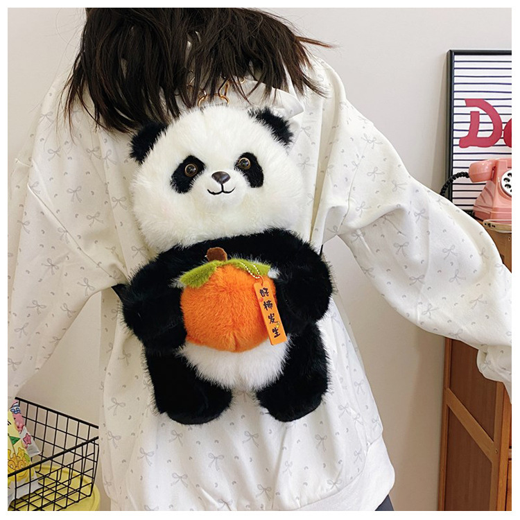 好柿发生熊猫公仔背包玩偶双肩包毛绒包女朋友生日礼物厂家批发