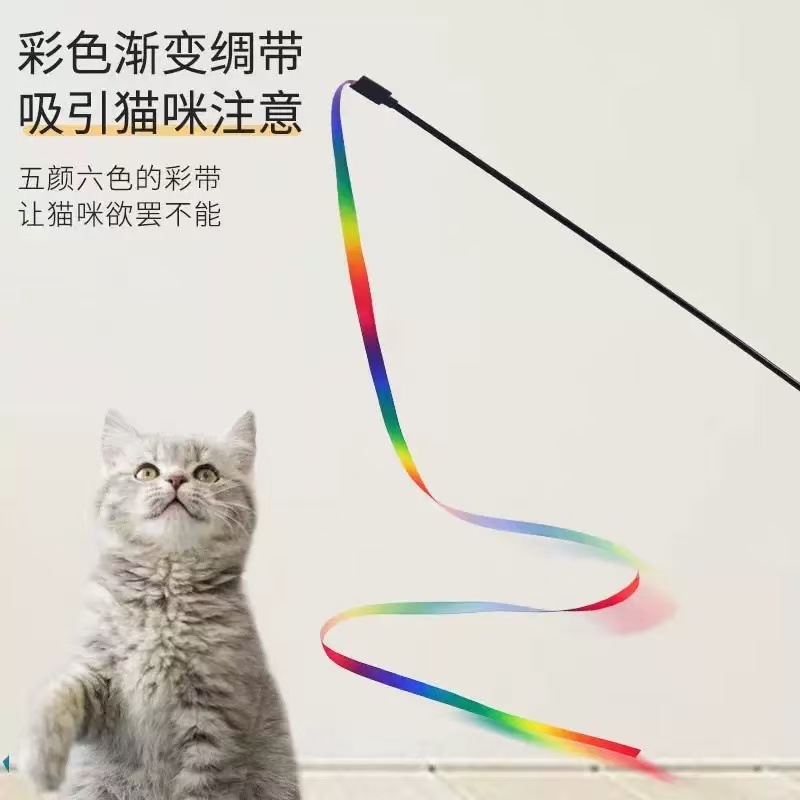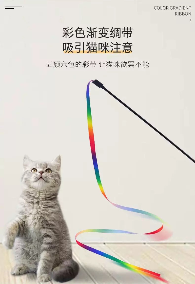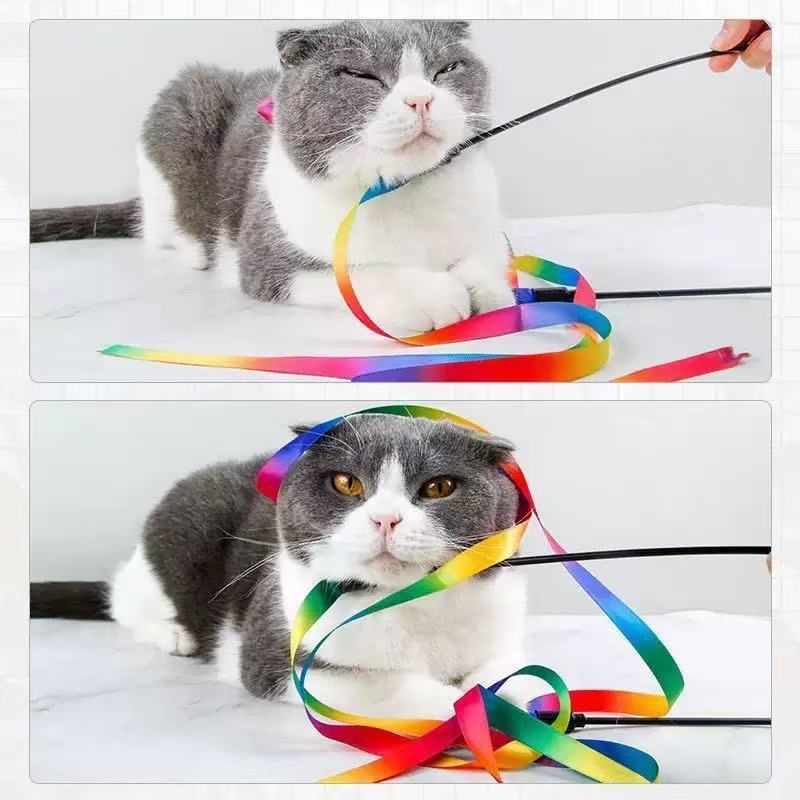 猫咪玩具彩带逗猫棒双面彩虹丝带自嗨解闷逗猫互动神器宠物用品