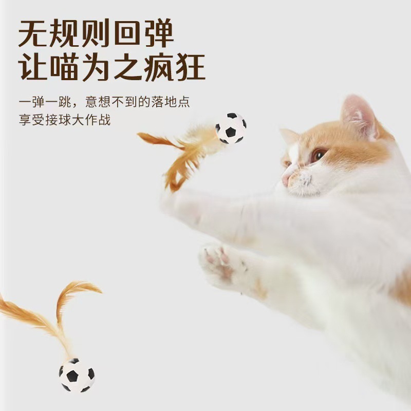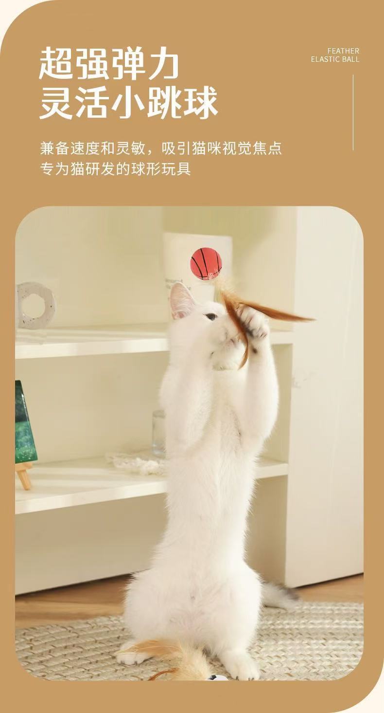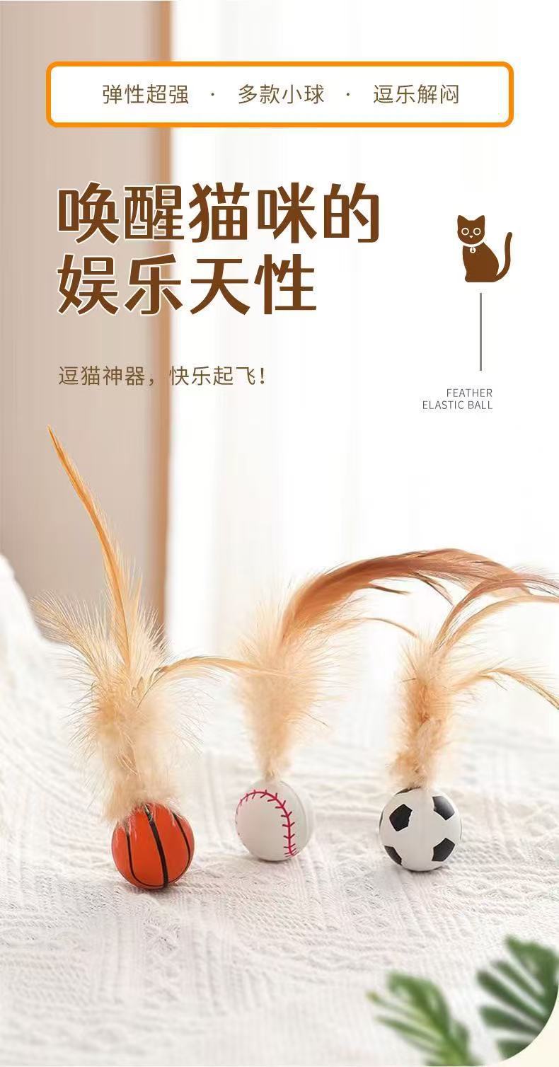 猫咪玩具新品弹力鸡毛球自嗨解闷抛掷互动球羽毛弹力运动球创意