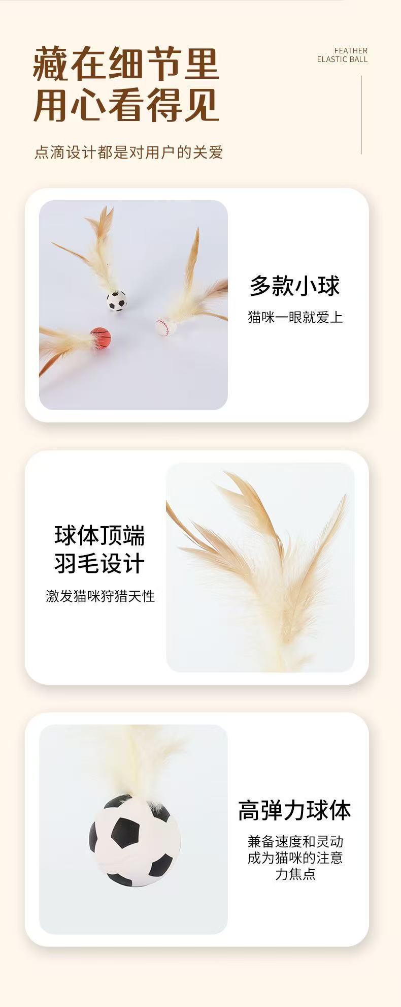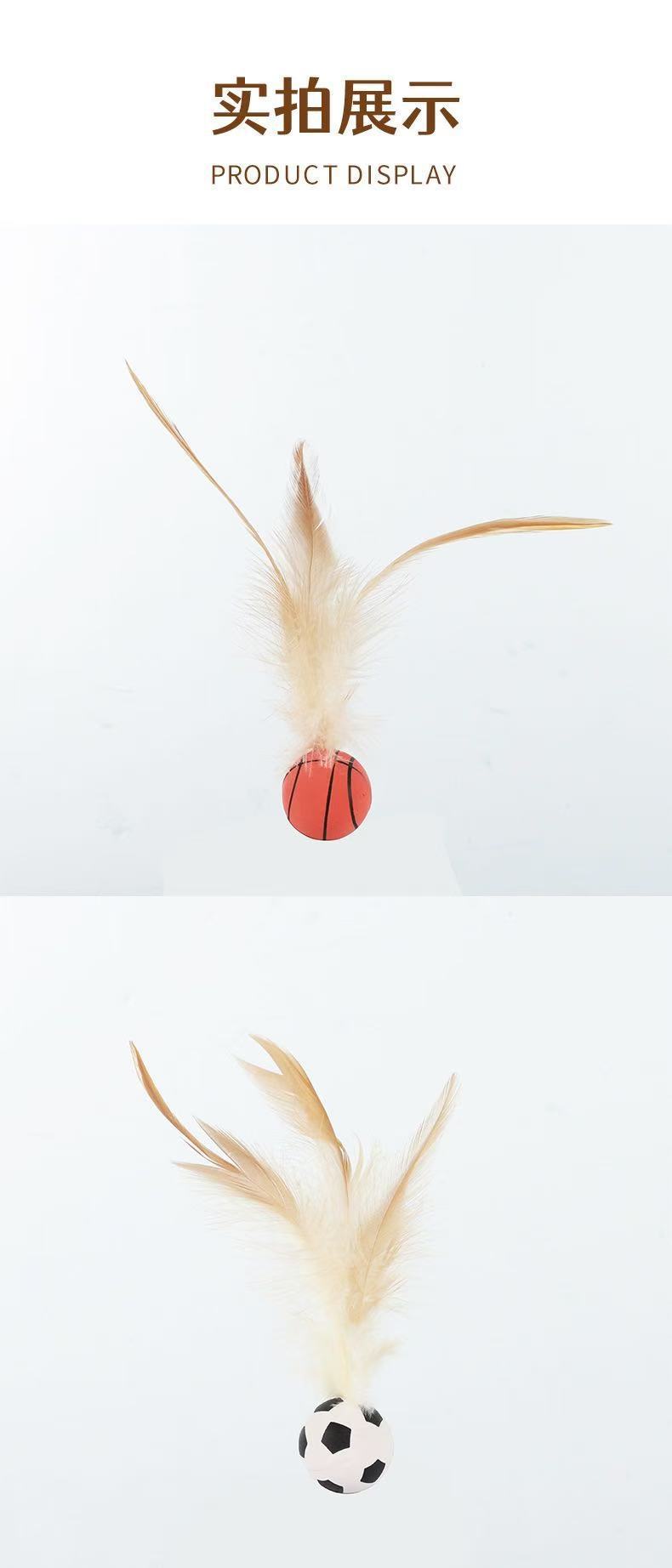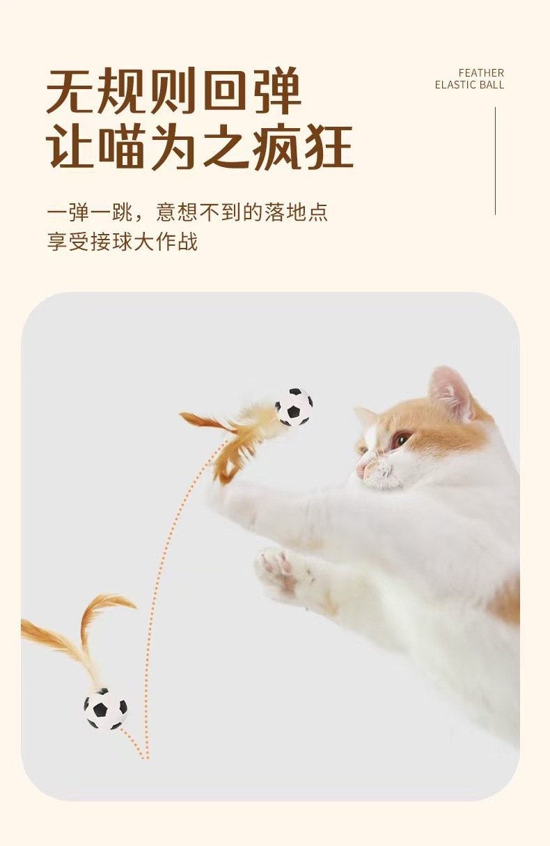 猫咪玩具新品弹力鸡毛球自嗨解闷抛掷互动球羽毛弹力运动球创意