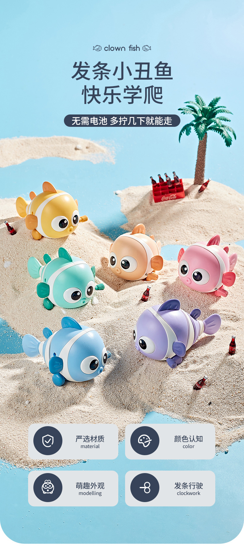 儿童上链发条小丑鱼卡通摇摆鱼婴幼儿男女宝宝爬行小玩具跨境批发