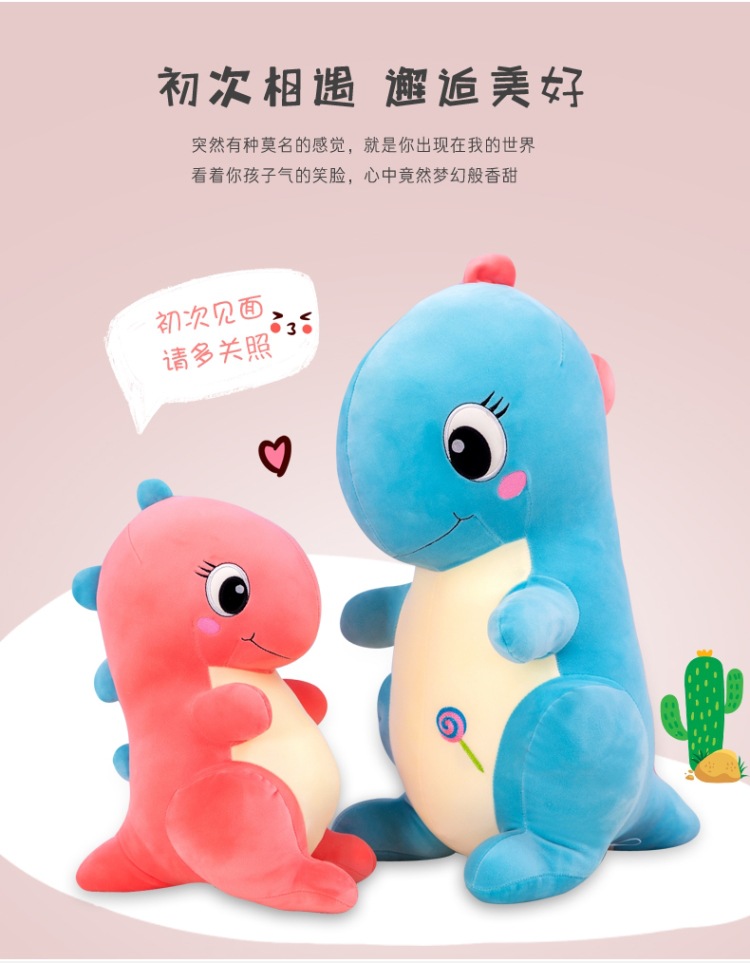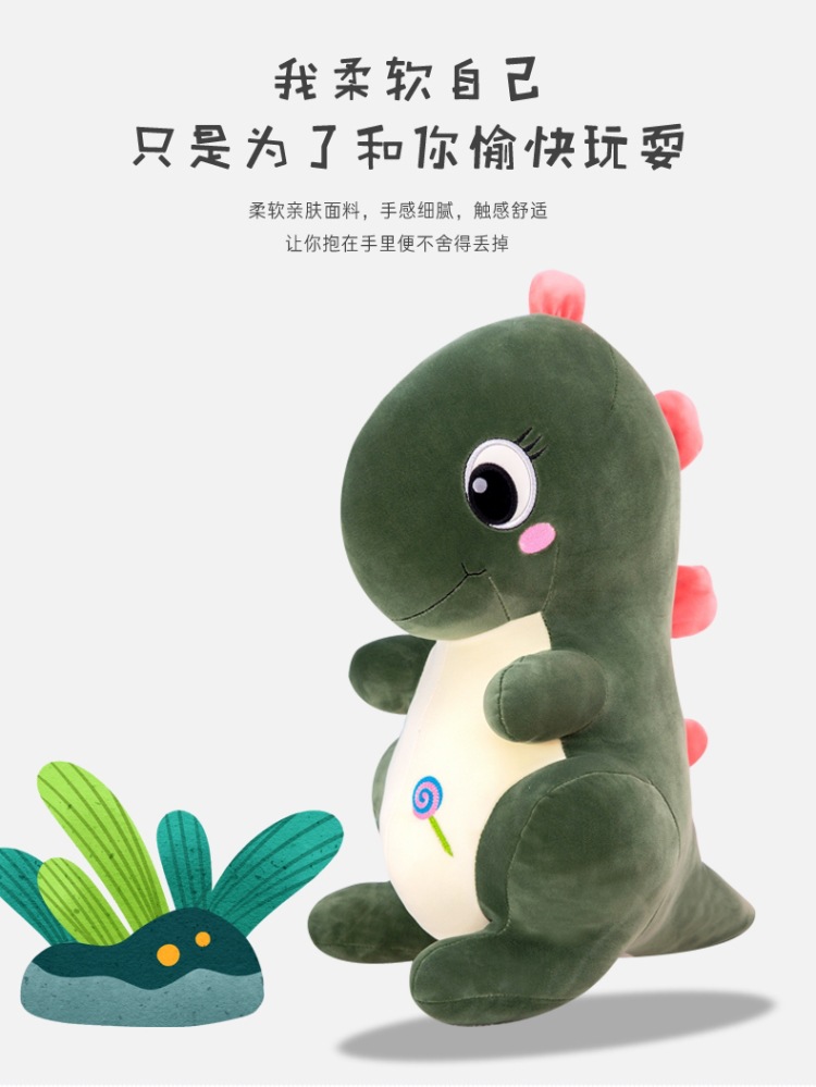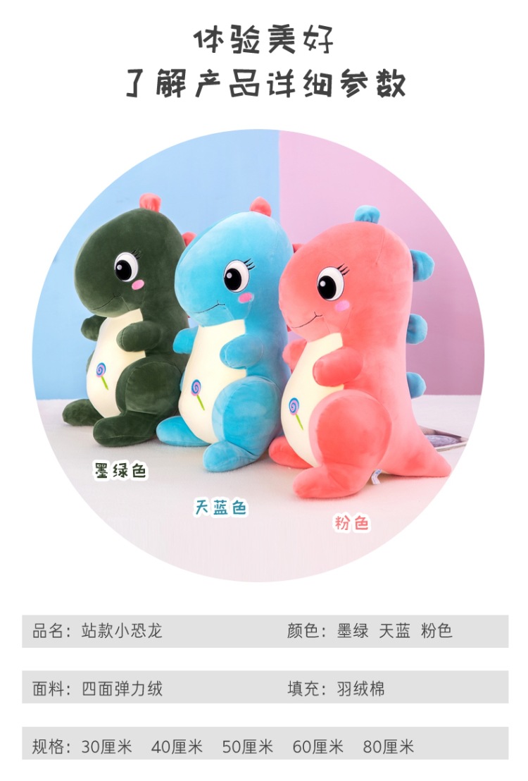 恐龙抱枕萌贝贝龙公仔软体毛绒玩具羽绒棉站款恐龙玩偶儿童礼物批