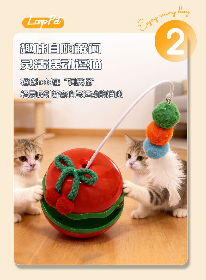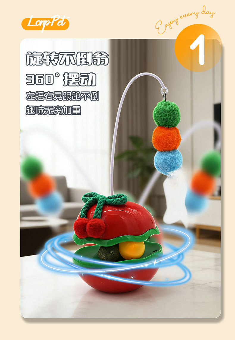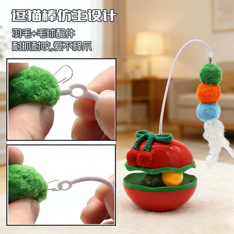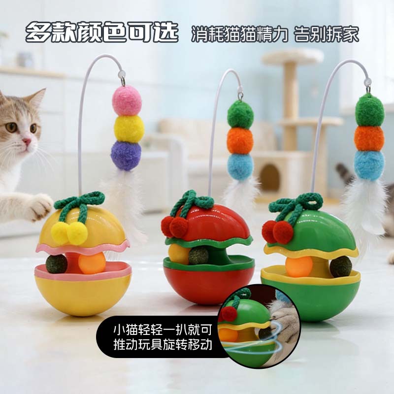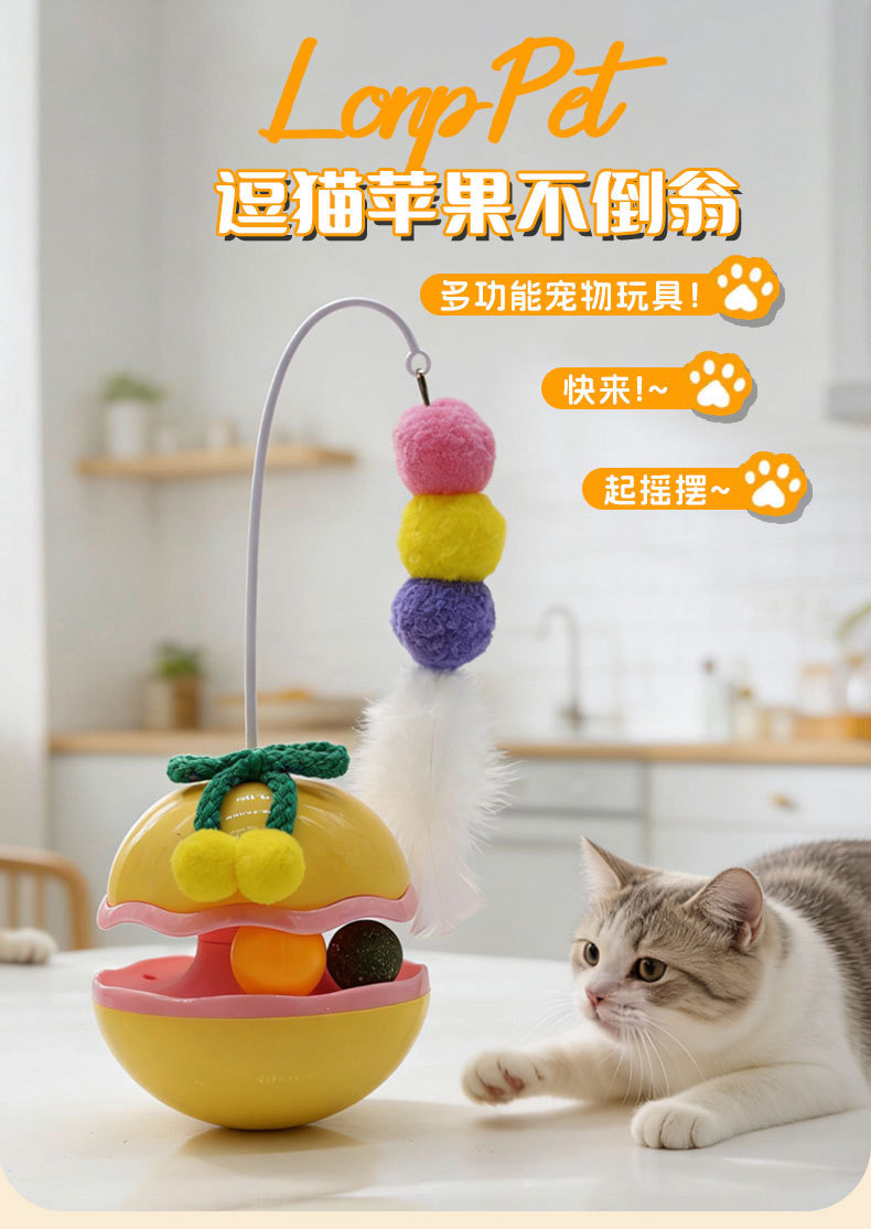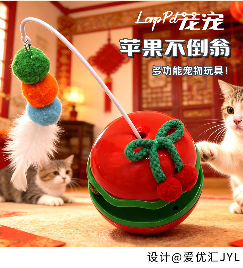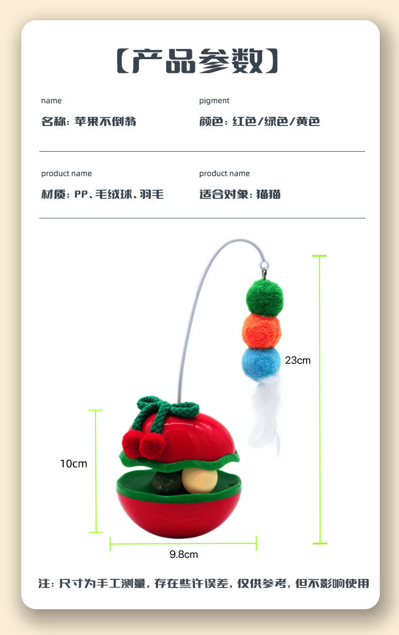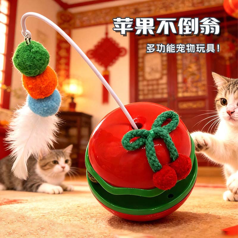 苹果不倒翁猫咪解闷玩具自嗨逗猫棒羽毛铃铛猫薄荷球转盘宠物玩具